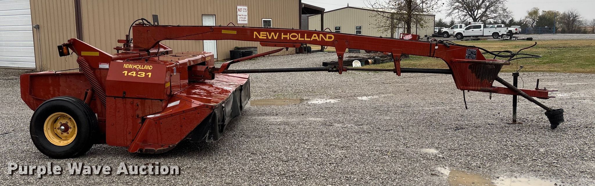 Purple Wave is selling a used Disc or Sickle Mower in Oklahoma. This item is a New Holland 1431 Discbine disc mower with the following: Serial: 645362
