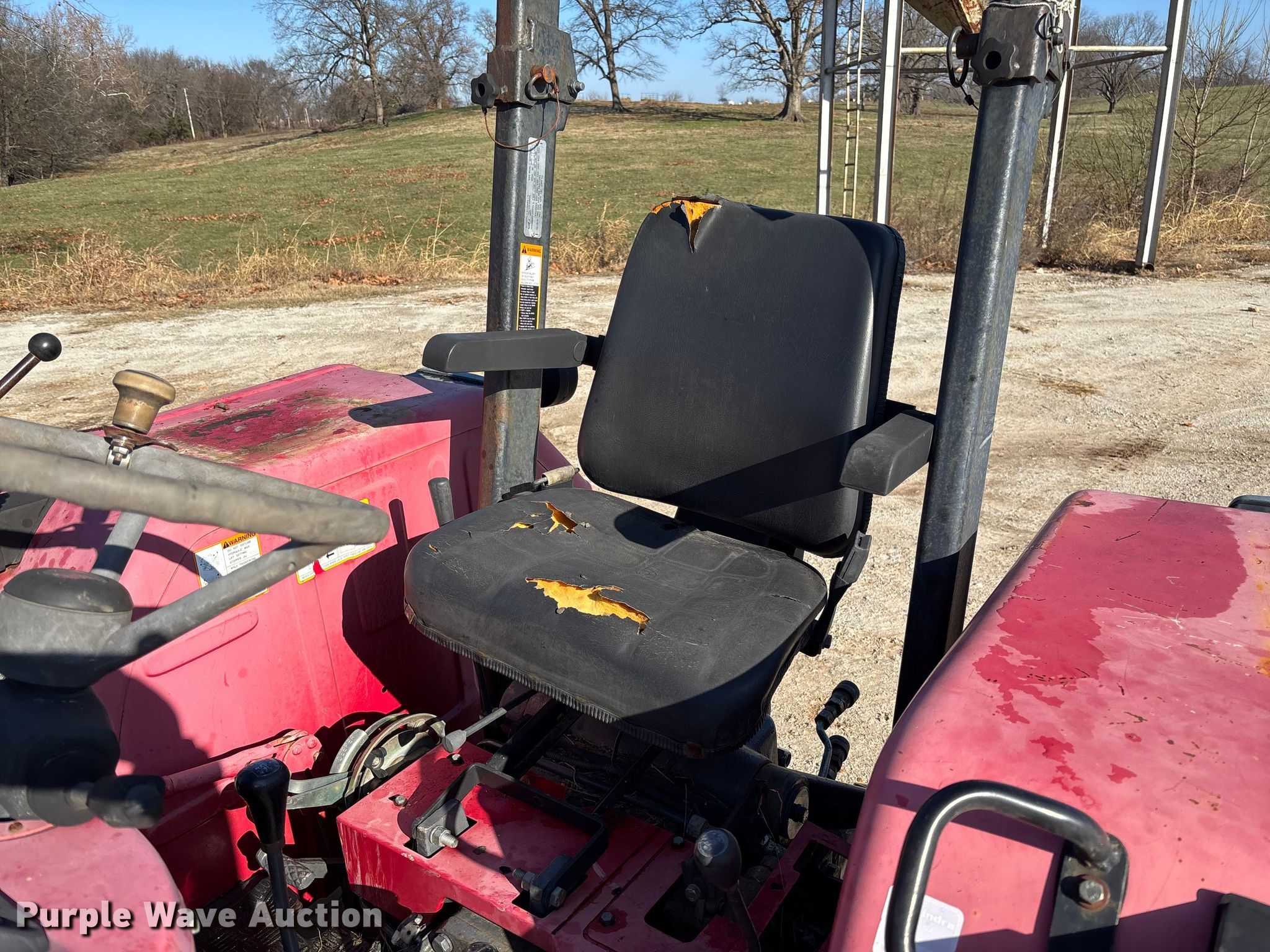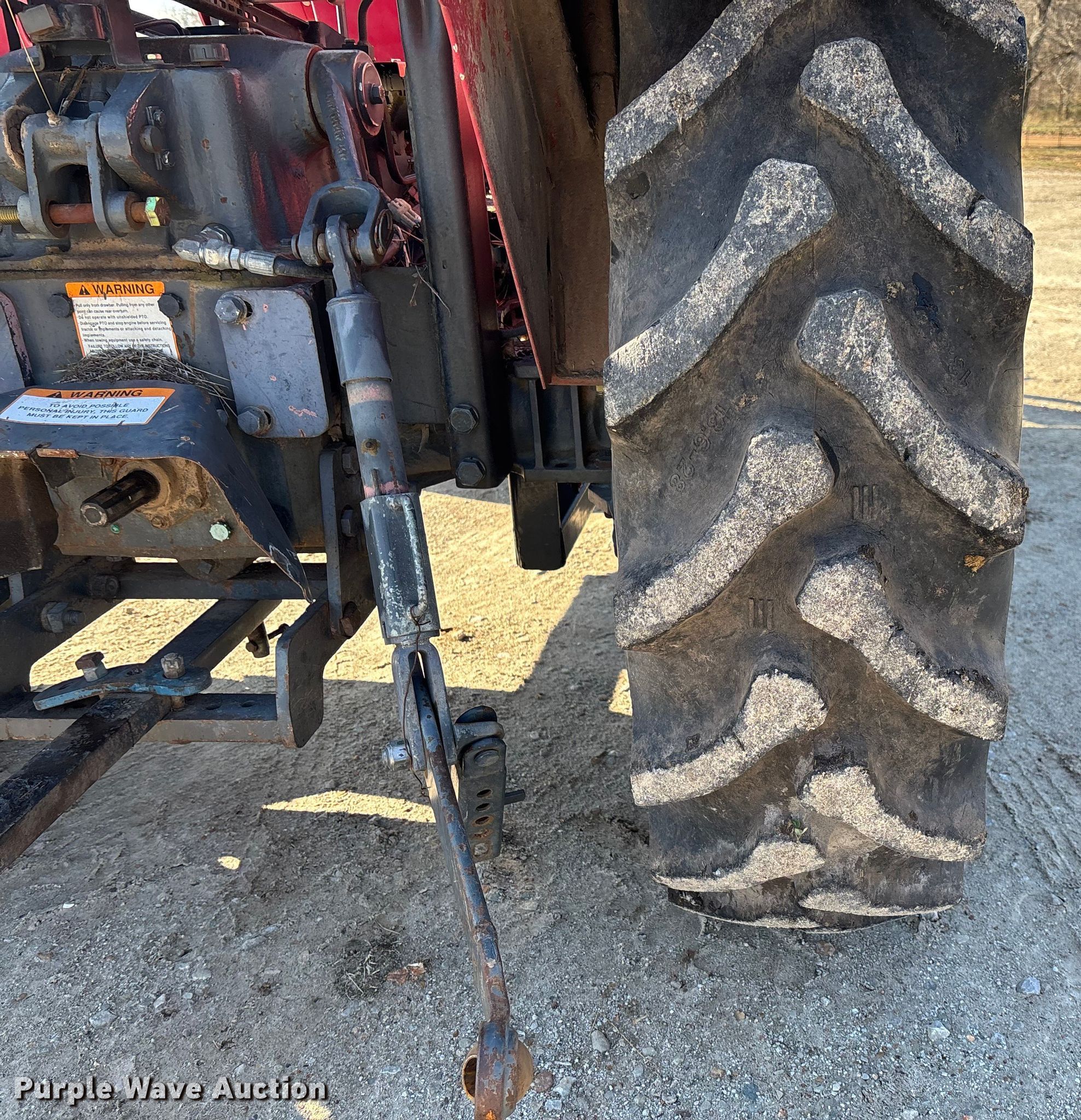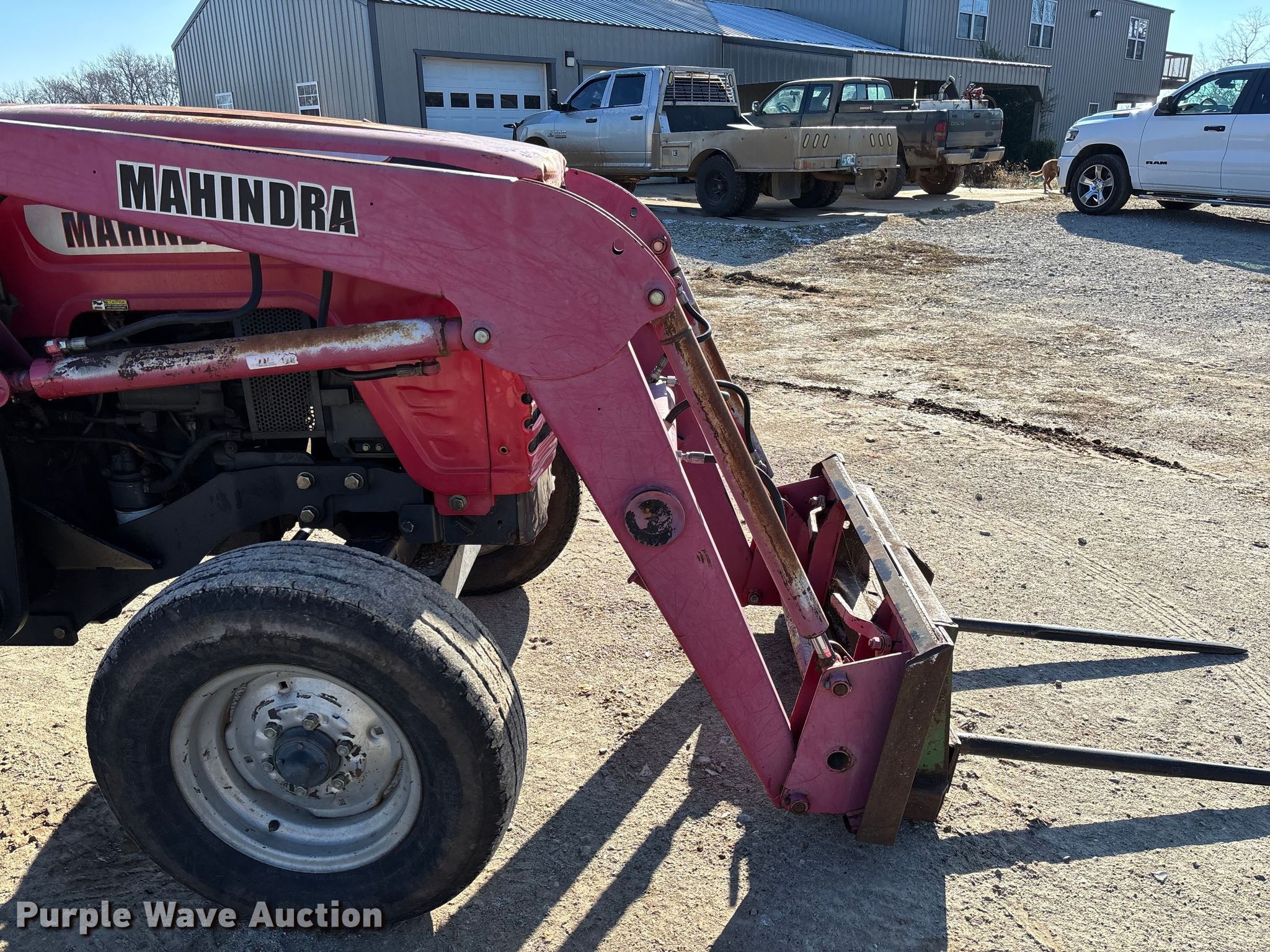 2010 Mahindra 5525 tractor. Hours: Unknown, Serial: S25T1280G9. Engine Mahindra, Displacement: 2.498L, Cylinders: 3, Fuel type: Diesel. Transmission Manual, 8F - 2R, Differential lock. Features PTO: 540, Three point, Hydraulic remote sets Rear: 1, Loader Mahindra, Bale spear, Controls: Joystick, Bucket Width: 72".. Tires Front: 235/80R16, Rear: 13.6-28. Notes Non-operational hour meter, Warning indicator: Water in fuel, Voltage, Lift cylinder issues, leaks, Hydraulic control valve issues, will not raise. Miami, OK 74354