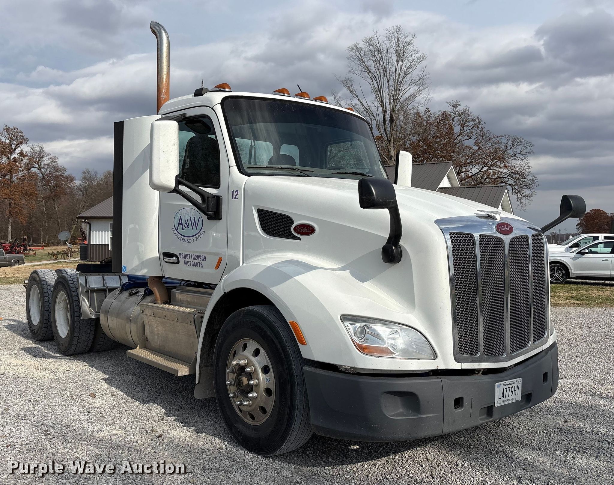 2017 Peterbilt 579 semi truck. Miles: 559,821 on odometer, Hours: 13,424 on meter, VIN: 1XPBD49X9HD431301. Engine Cummins ISX, Displacement: 15.0L, Cylinders: 6, Fuel type: Diesel, HP: 450, Engine brake. Transmission Eaton Fuller, Manual, Speed: 10. Chassis Axles: Tandem, Differential lock: Inter-axle, Suspension: Air, Brakes: Air, GVWR: 52,000 lbs FAWR: 12,000 lbs, RAWR: 40,000 lbs. Interior AC, Heat, Heated mirrors, Power windows, Power locks, Cruise control, Air ride cab. Features Deck plate: Aluminum, Fifth wheel type: Fixed, Fuel tank: Dual. Tires Size: 11R22.5. Notes Emissions system modified. Tennessee title. Title distribution may be delayed up to 14 days from verification of funds. A&W Southern Sod Farms LLC - Open Inspection December 17th through 20th, 2025 8:00 a.m. to 4:00 p.m.. 5651 Fred Perry Road. Springfield, TN 37172