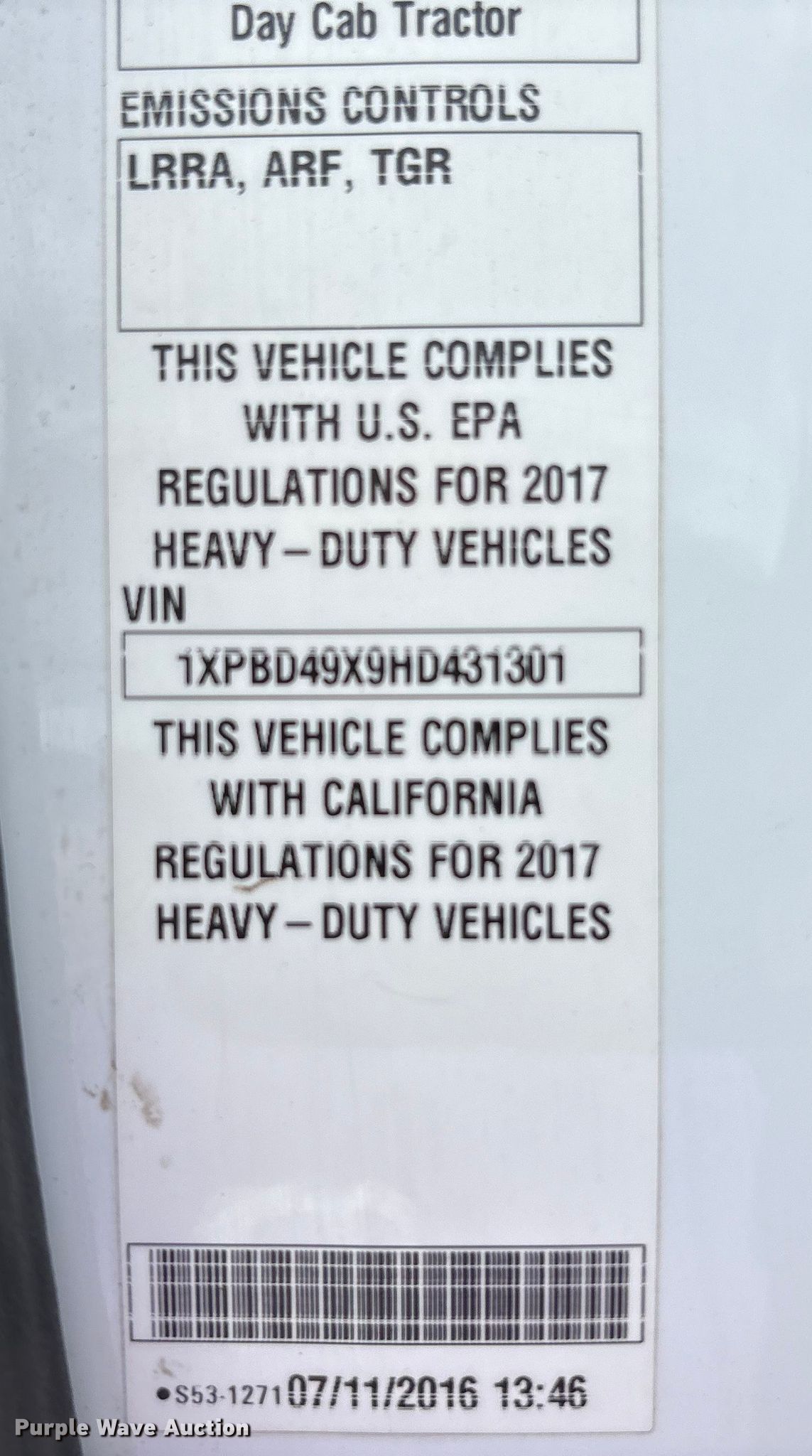 - VIN: 1XPBD49X9HD431301