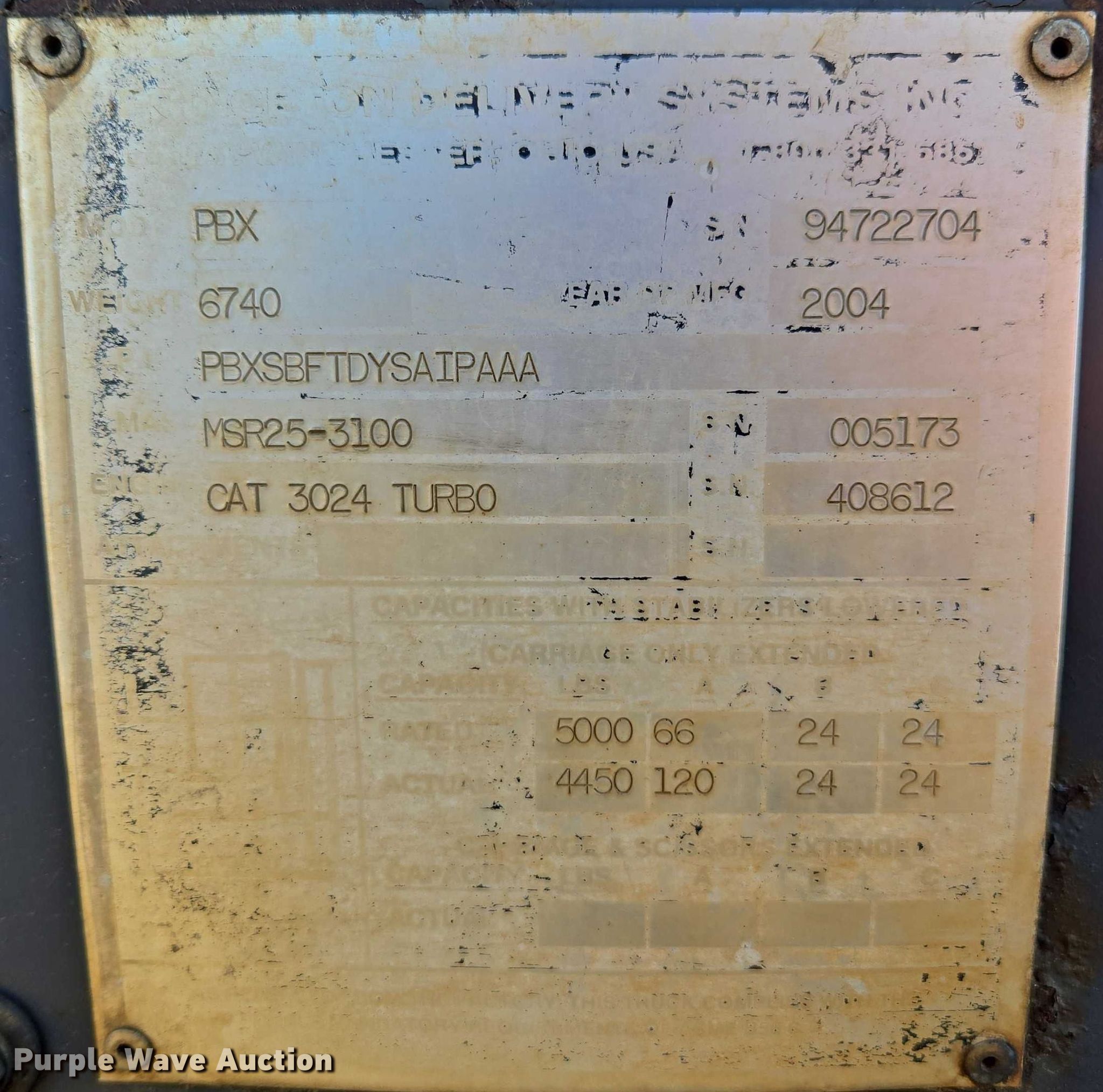 Princeton PBX forklift. Hours: 4,205 on meter. Engine Caterpillar 3024 turbo, Cylinders: 4, Fuel type: Diesel. Transmission Hydrostatic. Operators station OROPS. Features Maximum lift capacity: 5,000 lbs, Maximum lift height: 120", Collapsed mast height: 100", Mast stages: 2, Side shift, Mast tilt, Reach / retract, Fork length: 48". Tires Front: 31x15.50-15. Notes Engine issues , Parts missing, Non-operational unit. A&W Southern Sod Farms LLC - Open Inspection December 17th through 20th, 2025 8:00 a.m. to 4:00 p.m.. 5651 Fred Perry Road. Springfield, TN 37172