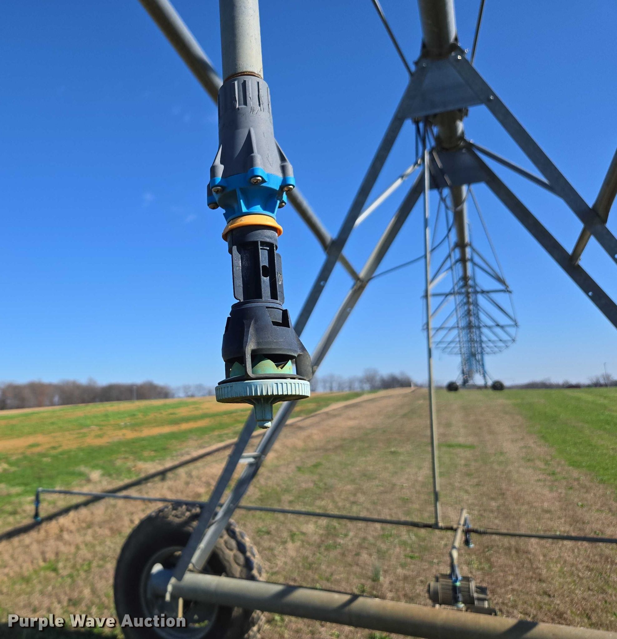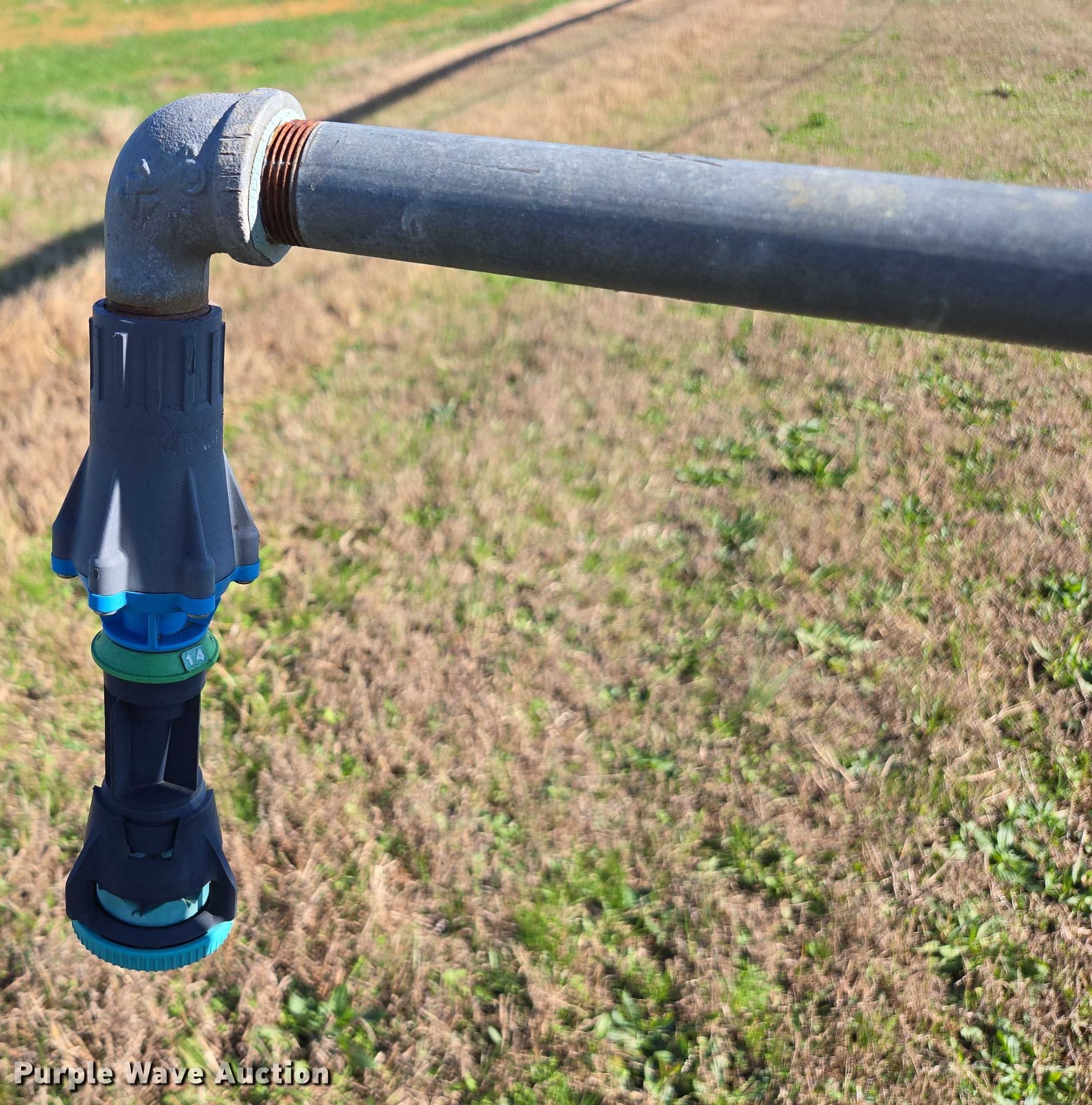 Valley 7000 center pivot. Features. Sections Quantity: 5, Section length: 205', Total length: 990', Pipe diameter: 6", Towers Quantity: 5, Nozzles Nozzle spacing: 7.5', Drop type: Rubber, End gun, Irrigation pump Hours: 2,986 on meter, Engine Yanmar, Displacement: 1.642L, Cylinders: 3, Fuel type: Diesel, Electronics Control box valley.. Tires Size: 14.9-24. A&W Southern Sod Farms LLC - Open Inspection December 17th through 20th, 2025 8:00 a.m. to 4:00 p.m.. 5651 Fred Perry Road. Springfield, TN 37172