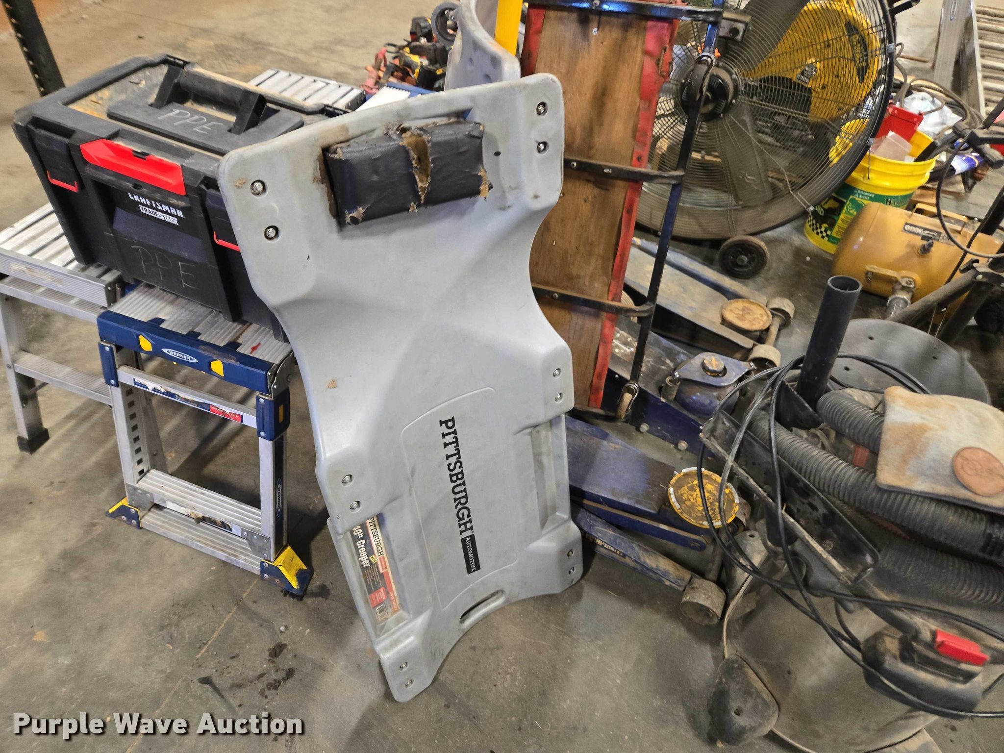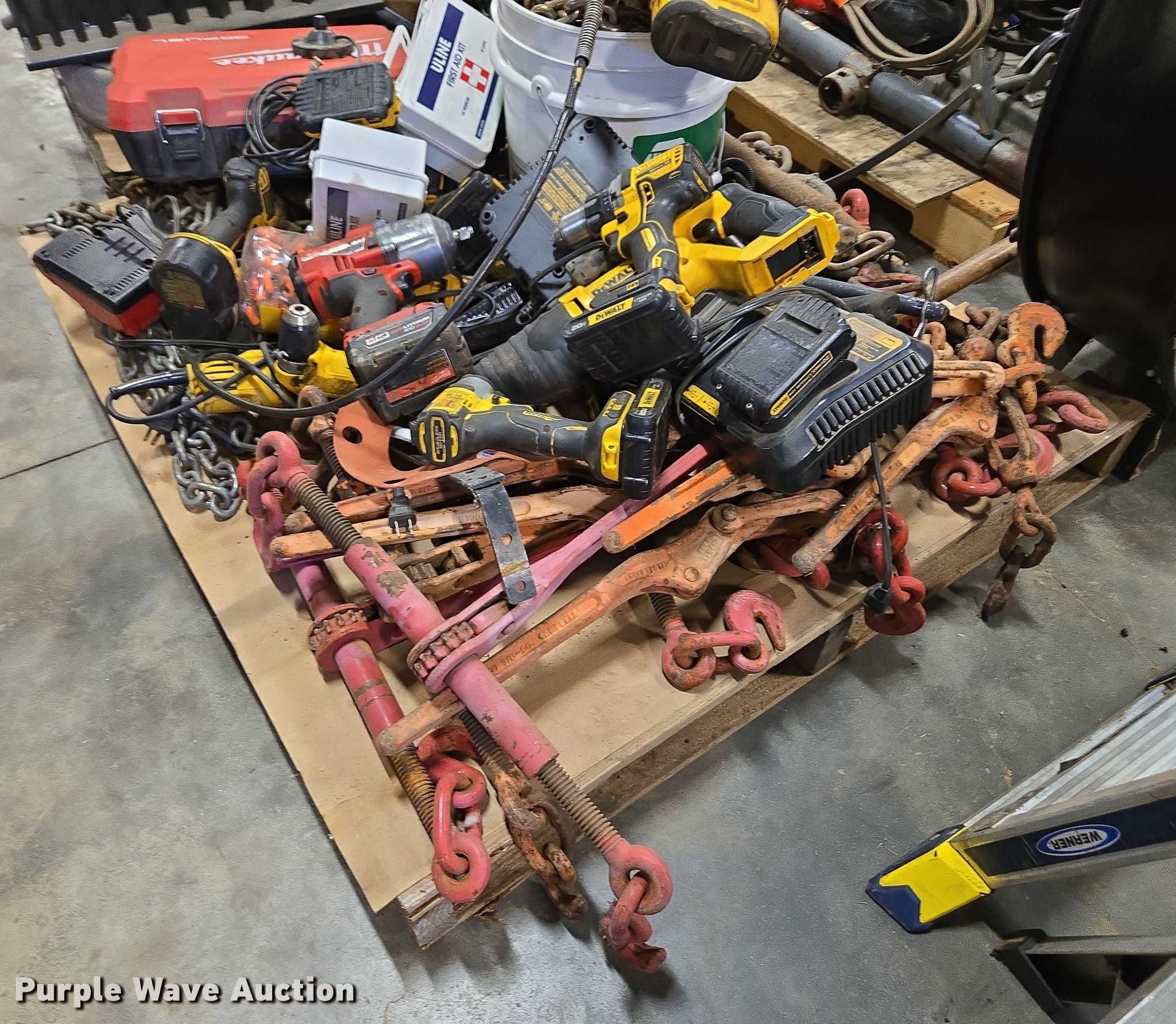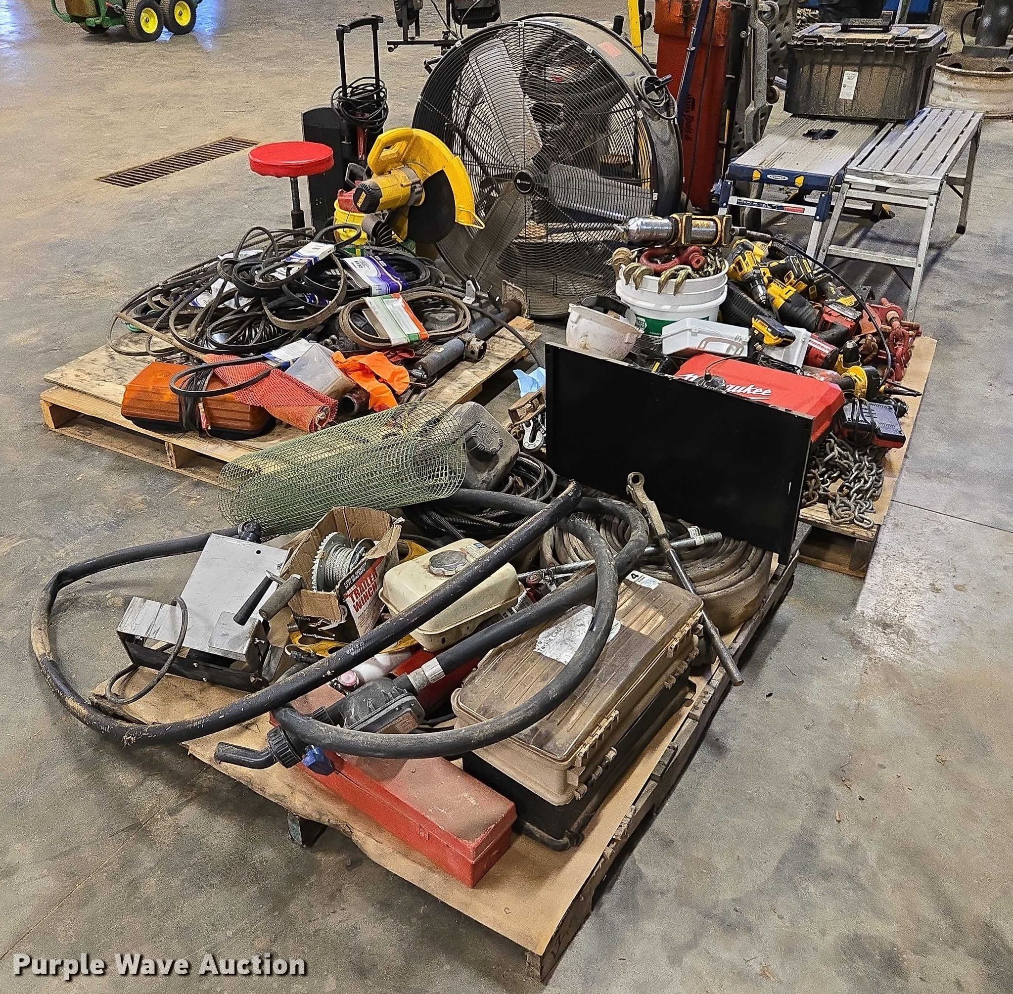 Purple Wave is selling a used Tools in Tennessee. This item is a Shop equipment with the following: Belts, Hoses, Power tools, Jacks, Creepers, Ladders, And more..