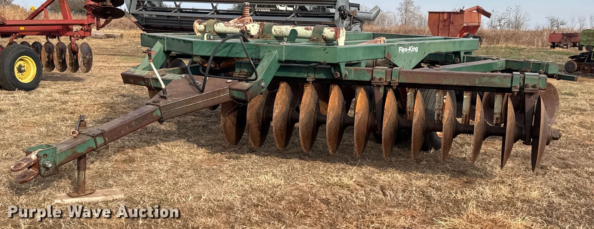 Take a look at this used Flex-King 16H off-set disk being sold on December 30th, 2025 in the Tuesday December 30 Ag Equipment Auction made by Flex-King. Take a look at all of the item information below or take a look at similar auctions for Tillage Equipment.
