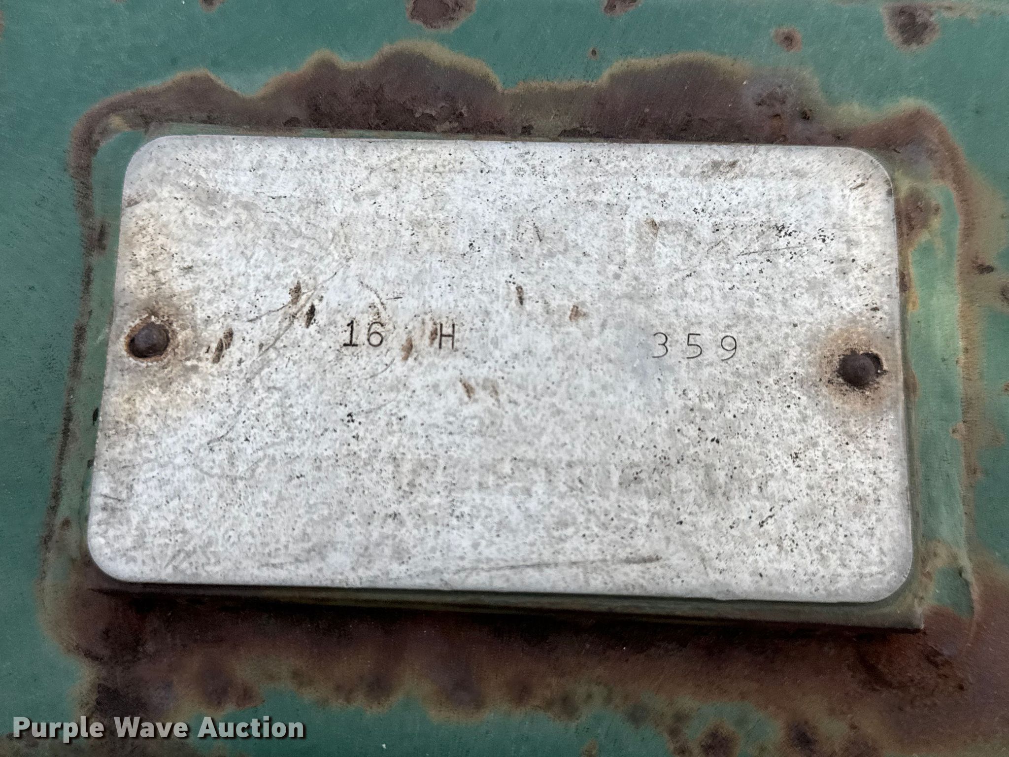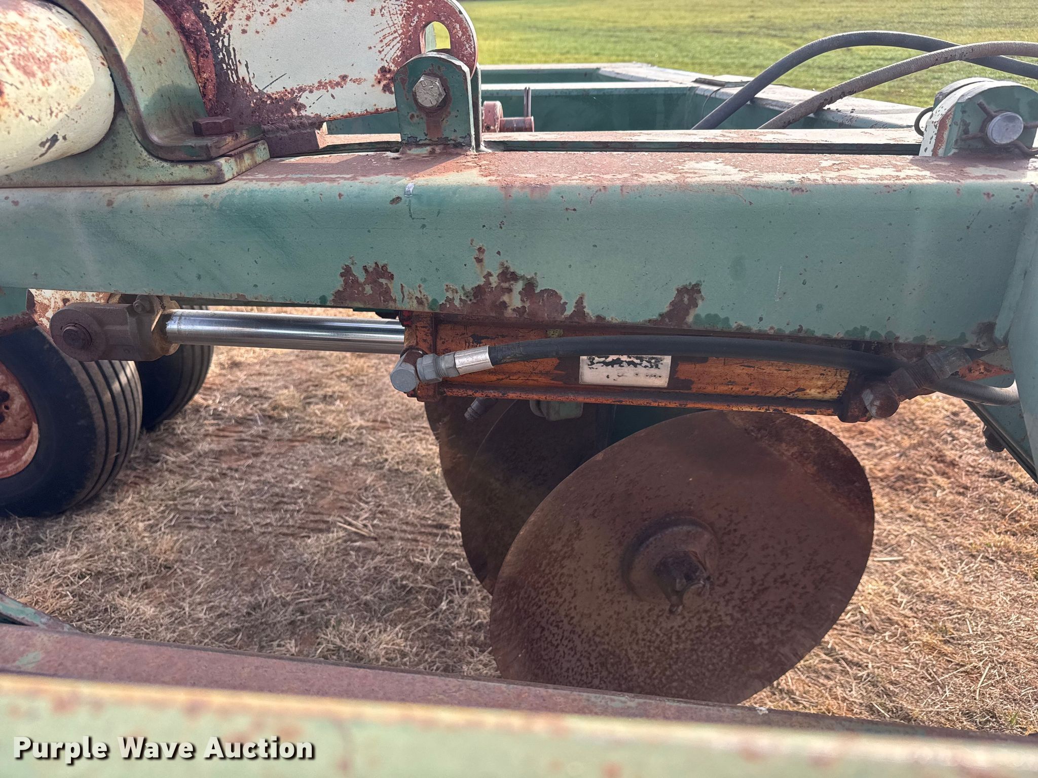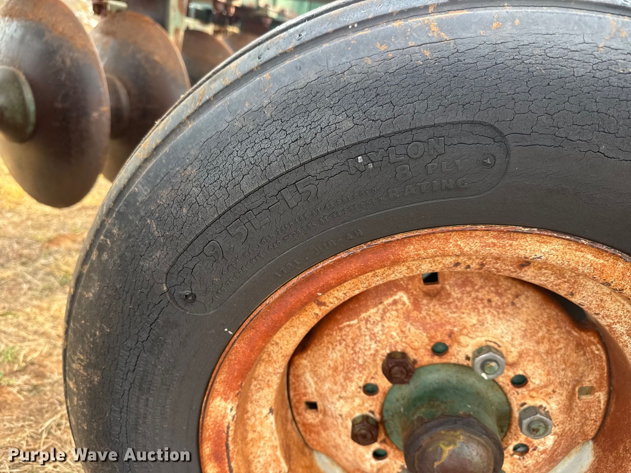 Flex-King 16H off-set disk. Overall width: 19', Serial: 359. Features Front blades Diameter: 24", Spacing: 9", Rear blades Diameter: 21", Spacing: 10", Disk scrapers, Operation Hydraulic lift, Leveler: Manual. Tires Tire size: 9.5L-15. Alva, OK 73717