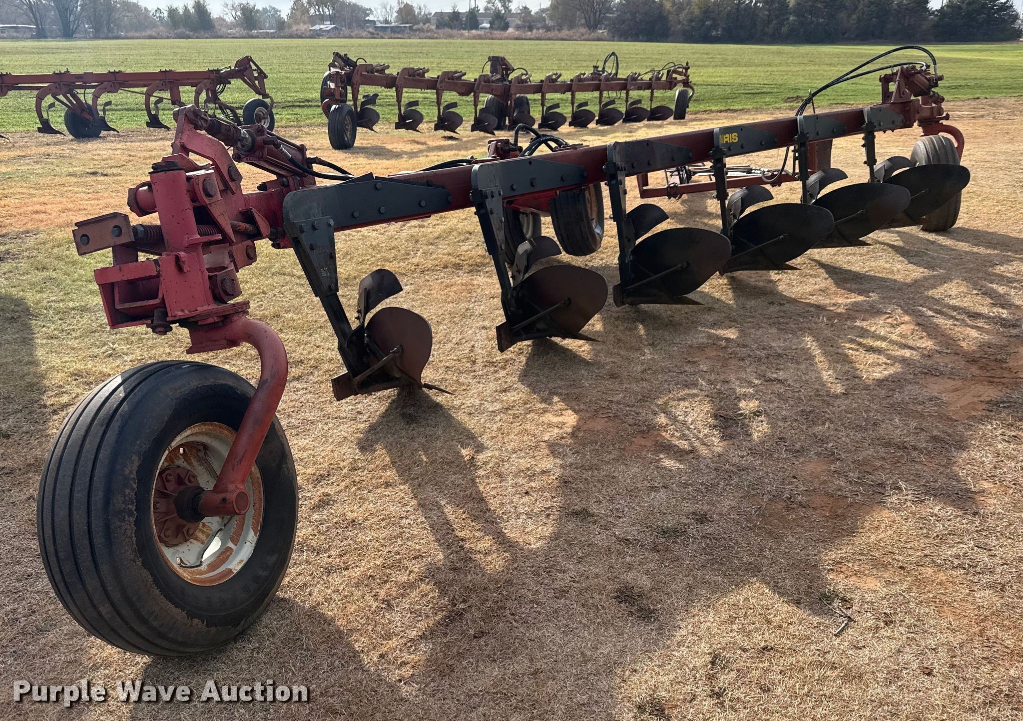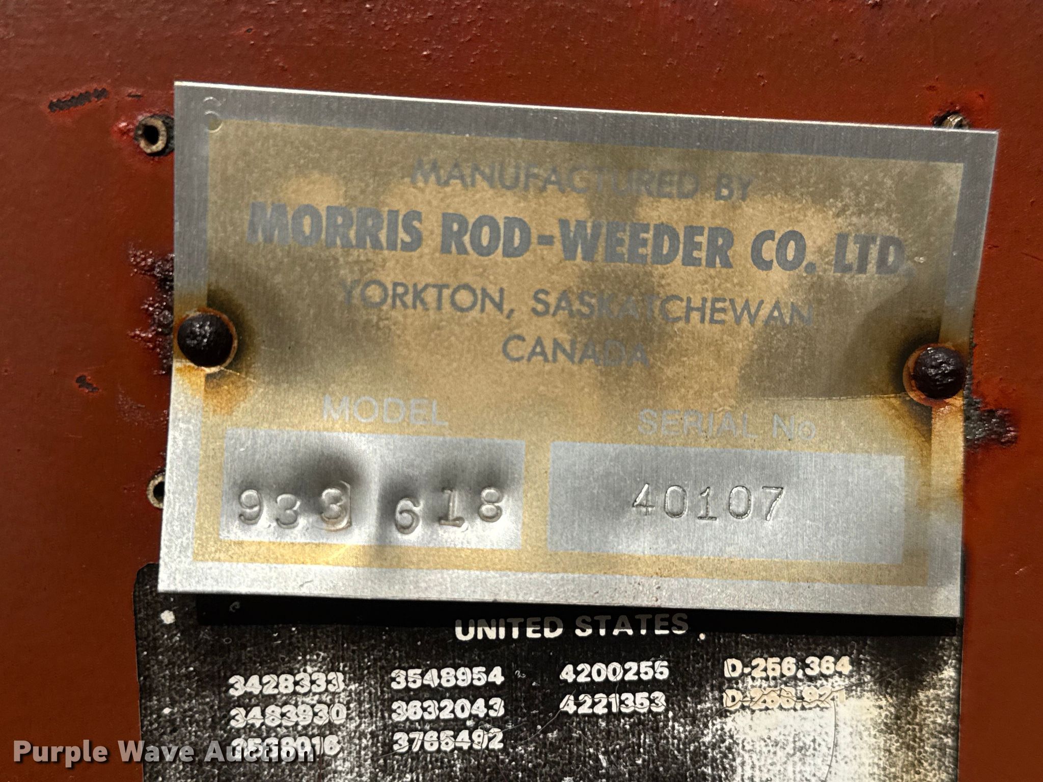 Purple Wave is selling a used Plow in Oklahoma. This item is a Morris Rod-Weeder 933 618 six bottom plow with the following: Overall width: 6', Serial: 40107