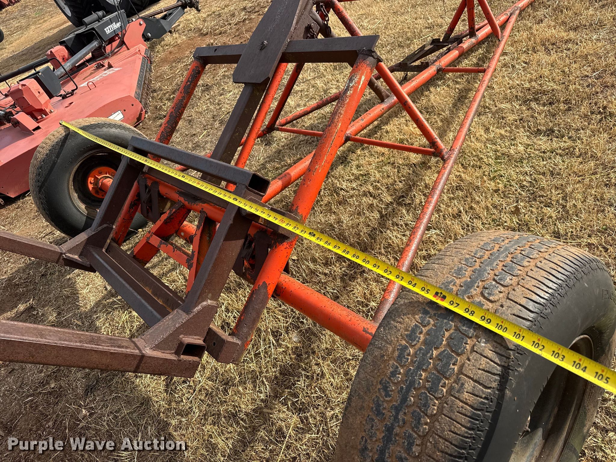 Purple Wave is selling a used Hay Handling in Oklahoma. This item is a Shop built bale mover with the following: Overall, Length: 15', Width: 102", Forks: 60"