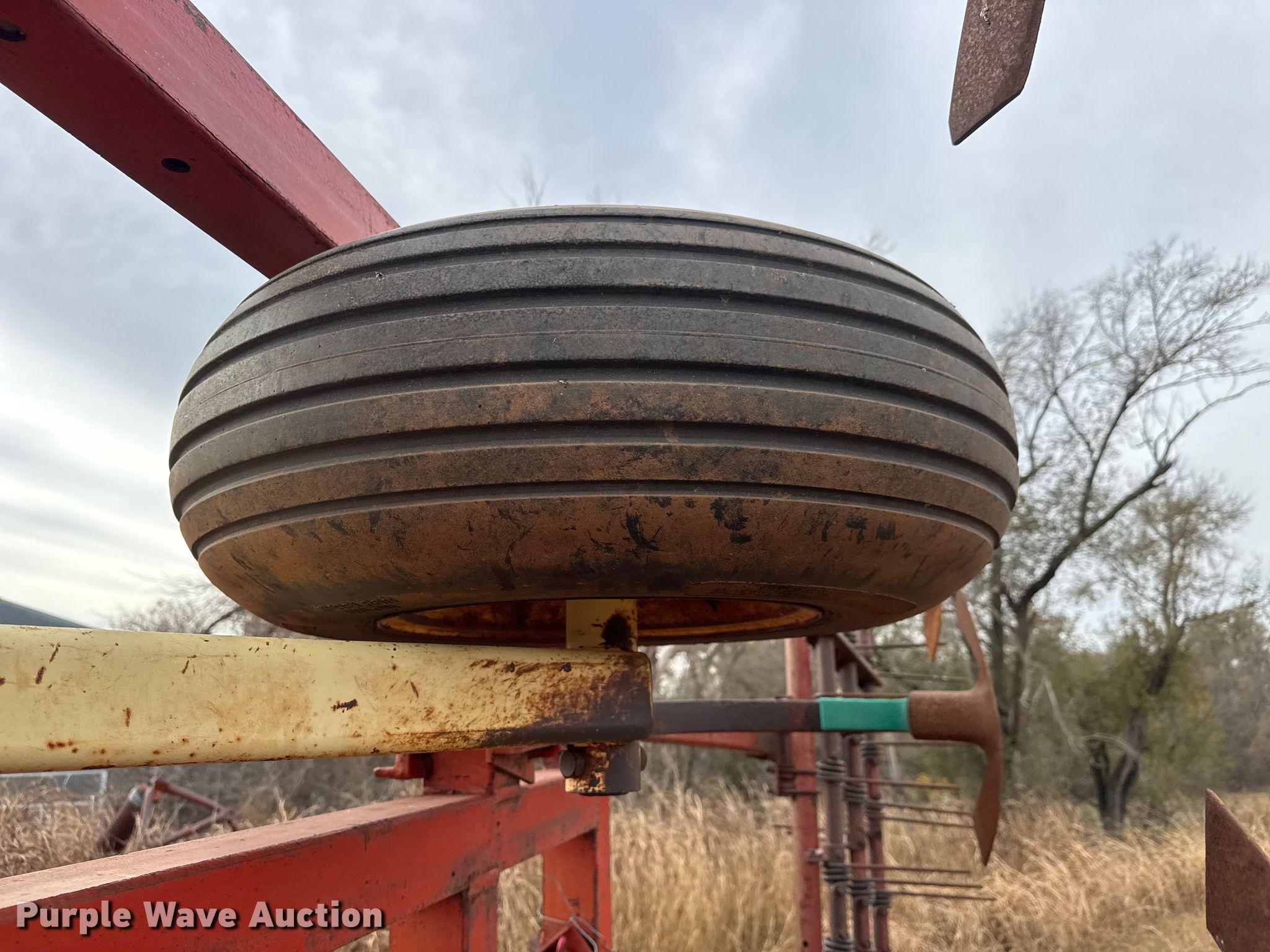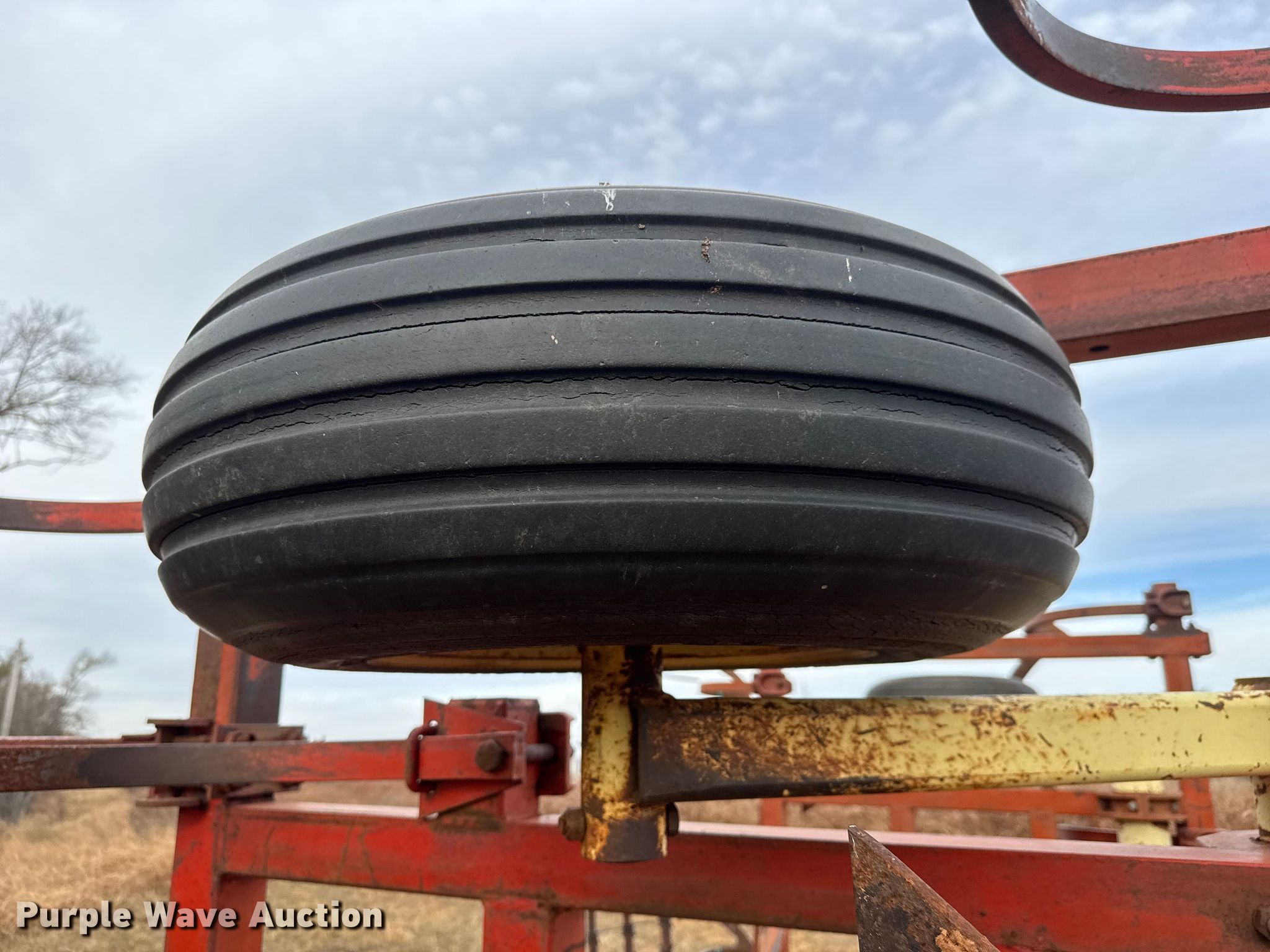 Krause 732A field cultivator. Overall width: 24', Serial: 2884. Features Shanks: 24, Sweep width: 18", Operation Hydraulic lift, Hydraulic fold, Attachments Tine harrow Harrow bars: 3.. Tires Tire size: 9.5L-15. Alva, OK 73717