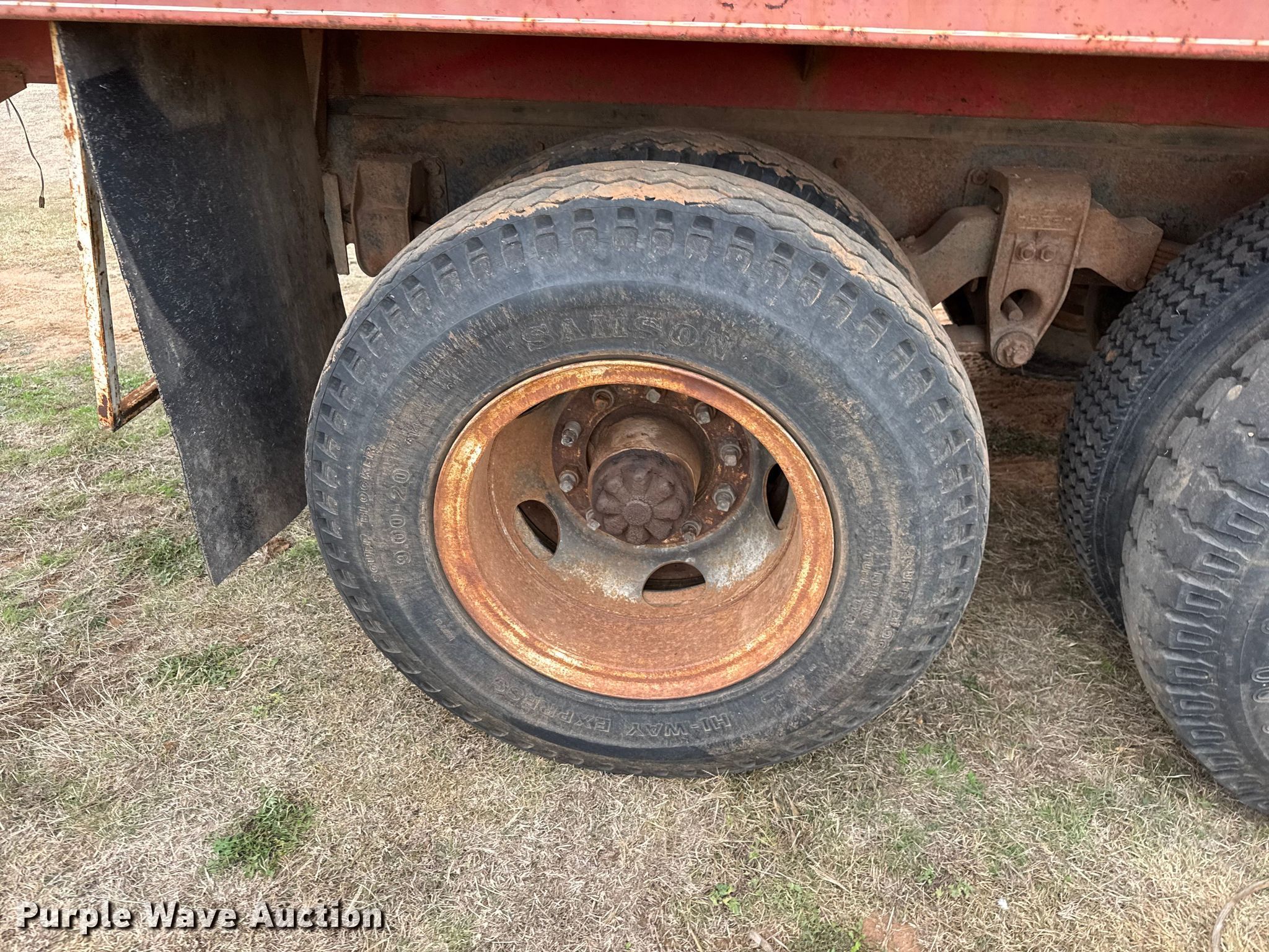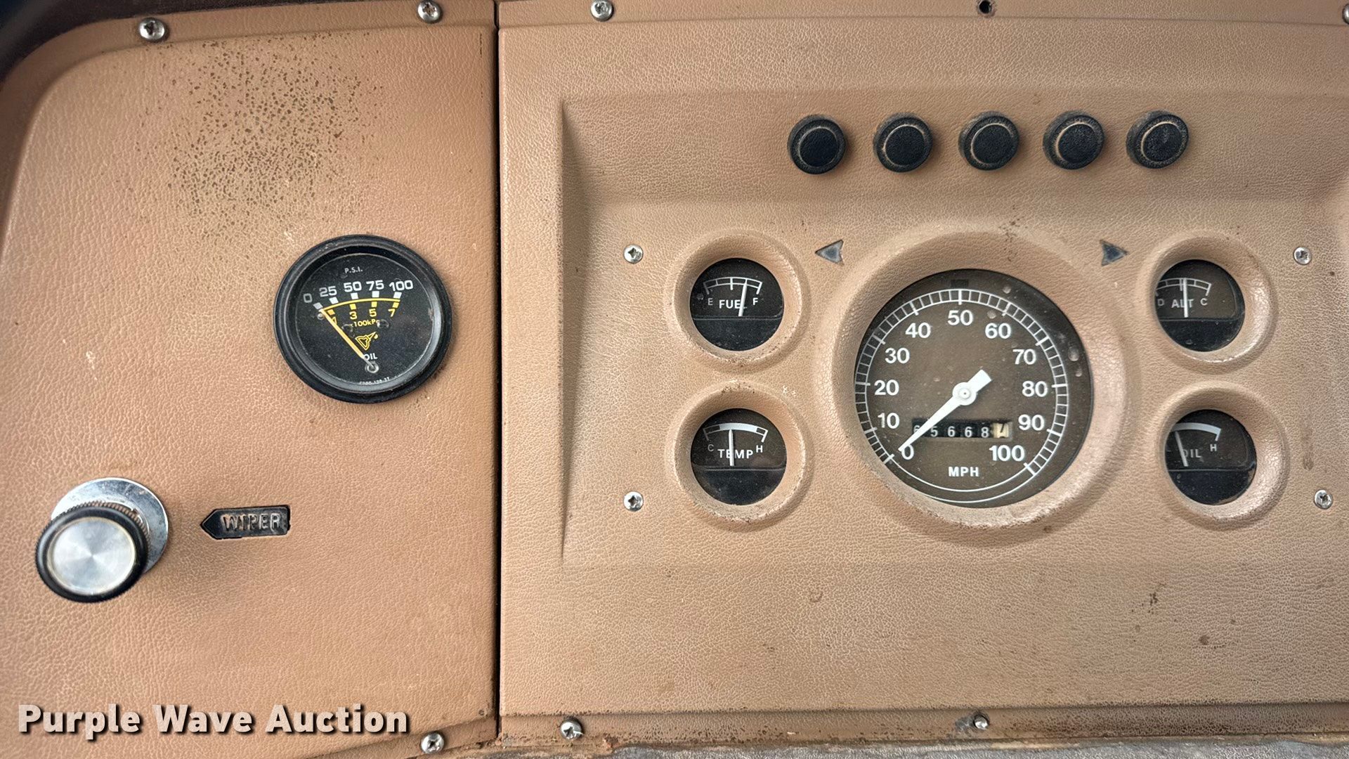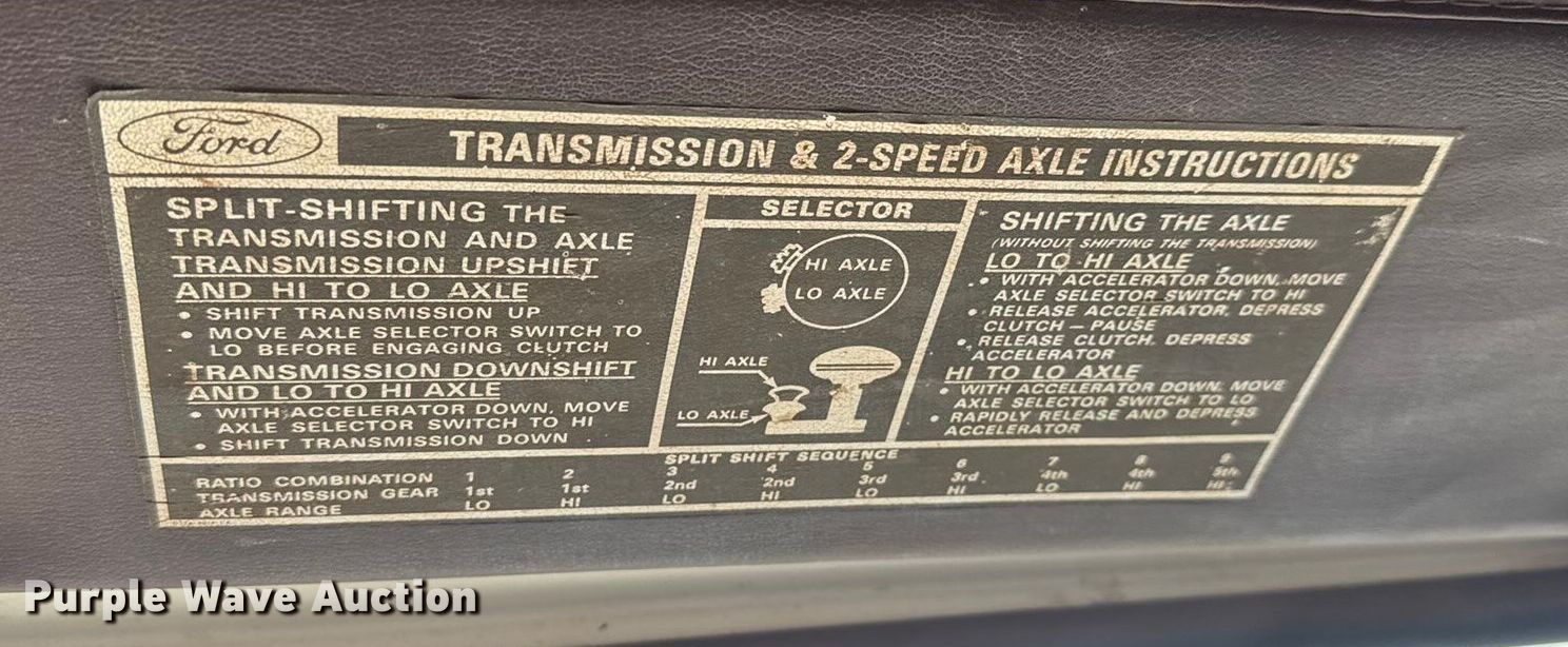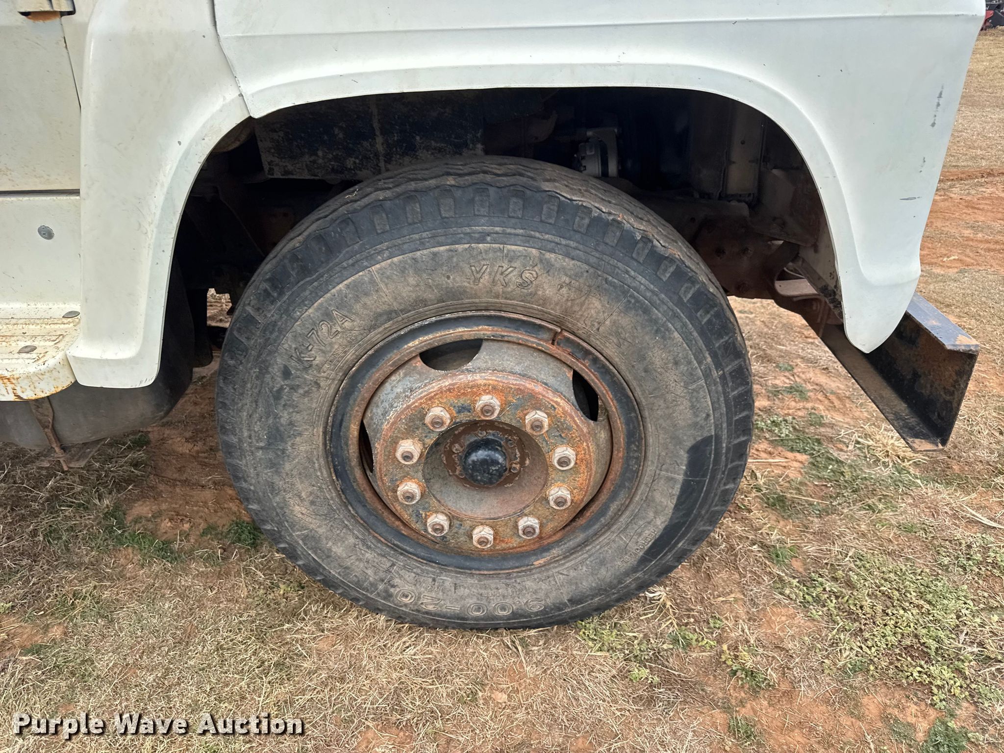 1975 Ford 750 grain truck. Miles: 65,669 on odometer, VIN: N75FVW26264. Engine Cylinders: 8, Fuel type: Gas. Transmission Manual, Speed: 5, plus 2. Chassis Axles: Tandem, Suspension: Spring, Brakes: Hydraulic, PTO, GVWR: 39,160 lbs. Interior Heat. Features Bed Dump bed, Omaha Standard, Length: 22', Width: 95", Side height: 52", Bed type: Steel, Ram: Dual, End gate: Manual. Tires Size: 9.00-20. Notes Windshield chipped or cracked. Oklahoma classic title. Title distribution may be delayed up to 14 days from verification of funds. Alva, OK 73717