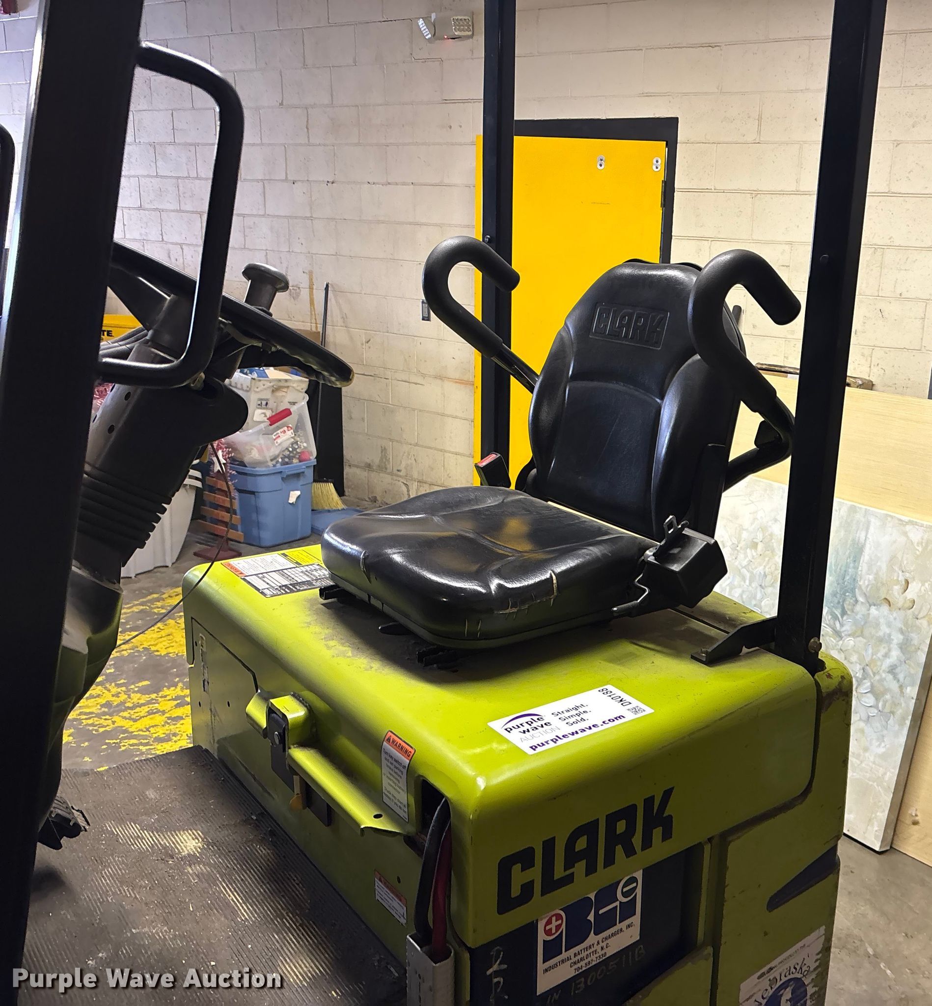 Purple Wave is selling a used Warehouse Forklift in Nebraska. This item is a Clark TMG15S forklift with the following: Hours: 563 on meter, Serial: TMG248–1779–9570KF