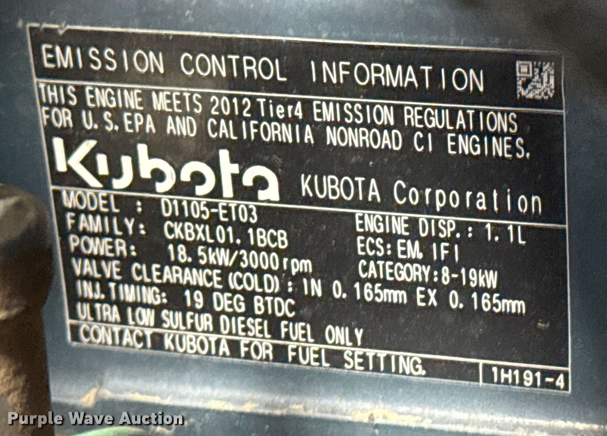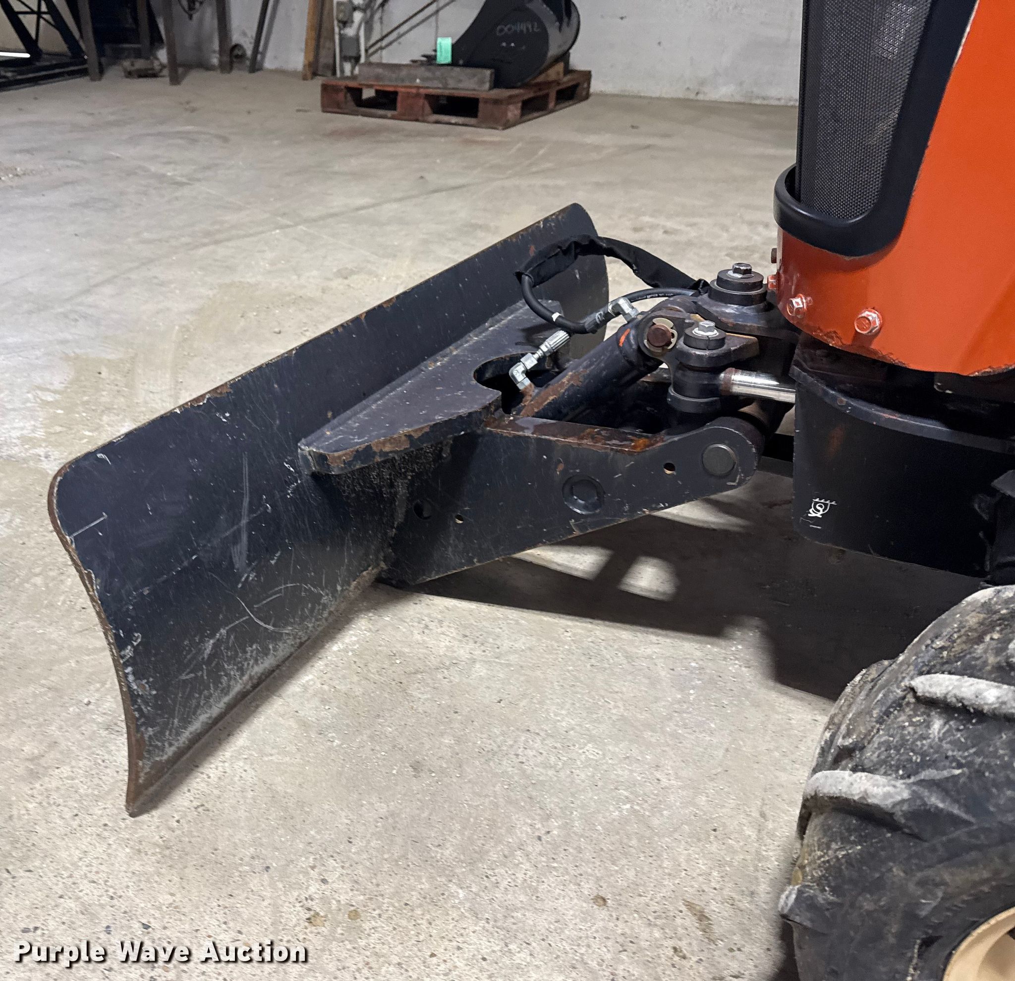 2013 Ditch Witch RT30 trencher. Hours: 640 on meter, Serial: CMWRT30XHD0000023. Engine Kubota D1105-ET03, Displacement: 1.1L, Cylinders: 3, Fuel type: Diesel. Transmission Hydrostatic. Features Model: H210, Trencher Estimated dig depth: 48", Cutting width: 4", Teeth: Dirt, Crumber, Backfill blade Width: 48". Tires Front: 18x9.50-8, Rear: 26X12.00-12NHS. Notes Tire damaged. Ditch Witch of Oklahoma and Arkansas. Tulsa, OK 74116