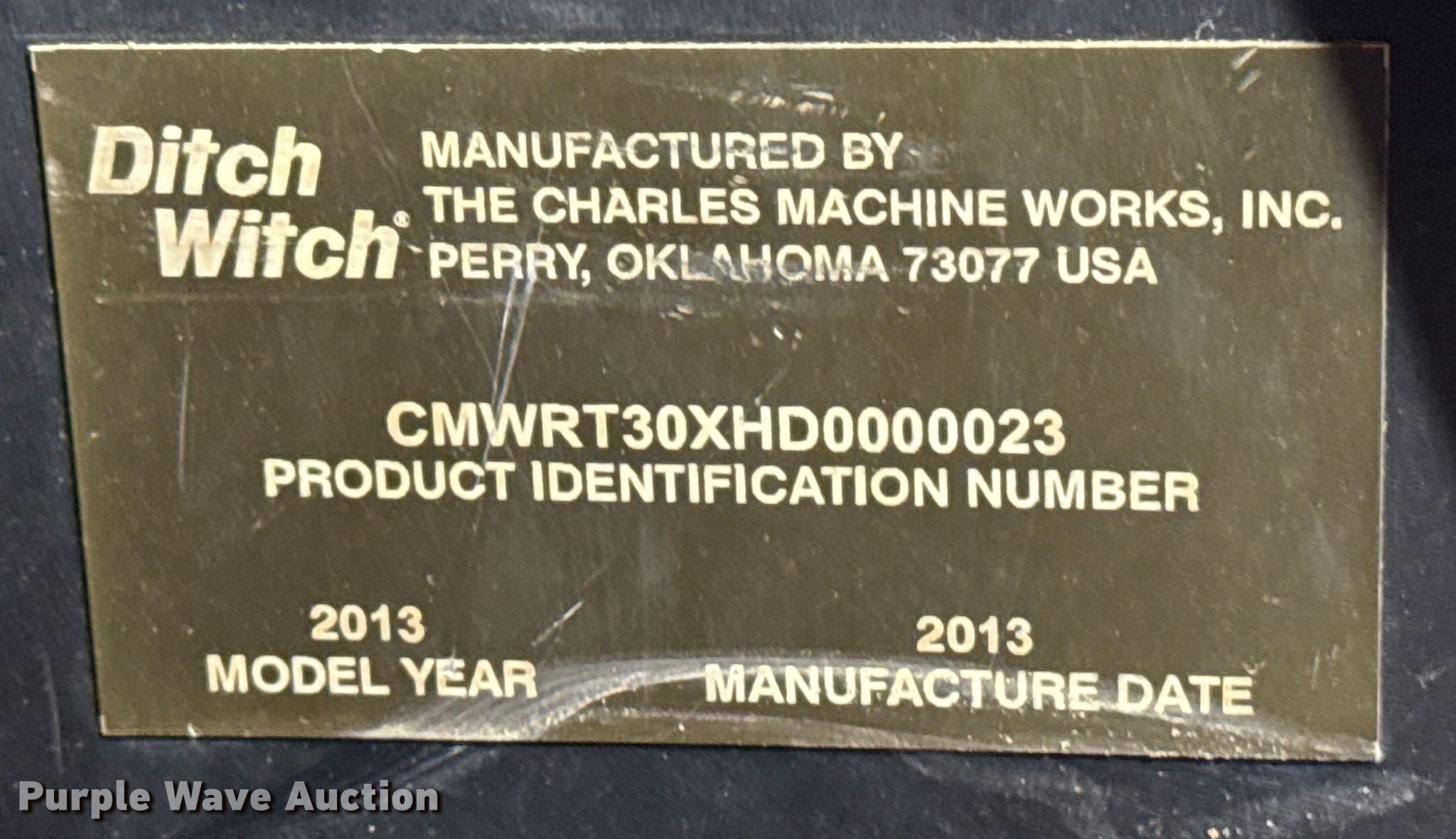 Purple Wave is selling a used Trencher or Rock Saw in Oklahoma. This item is a 2013 Ditch Witch RT30 trencher with the following: Hours: 640 on meter, Serial: CMWRT30XHD0000023