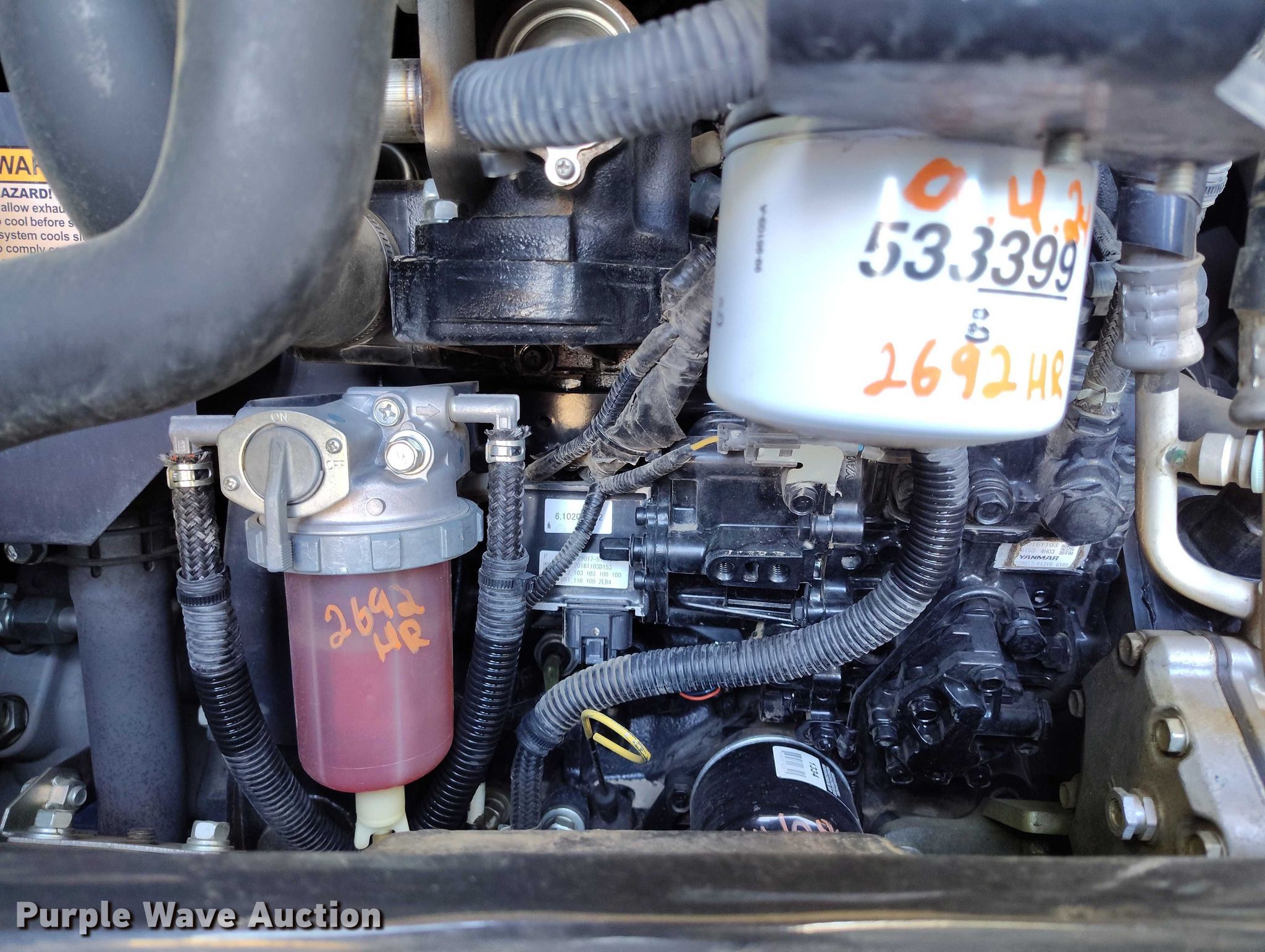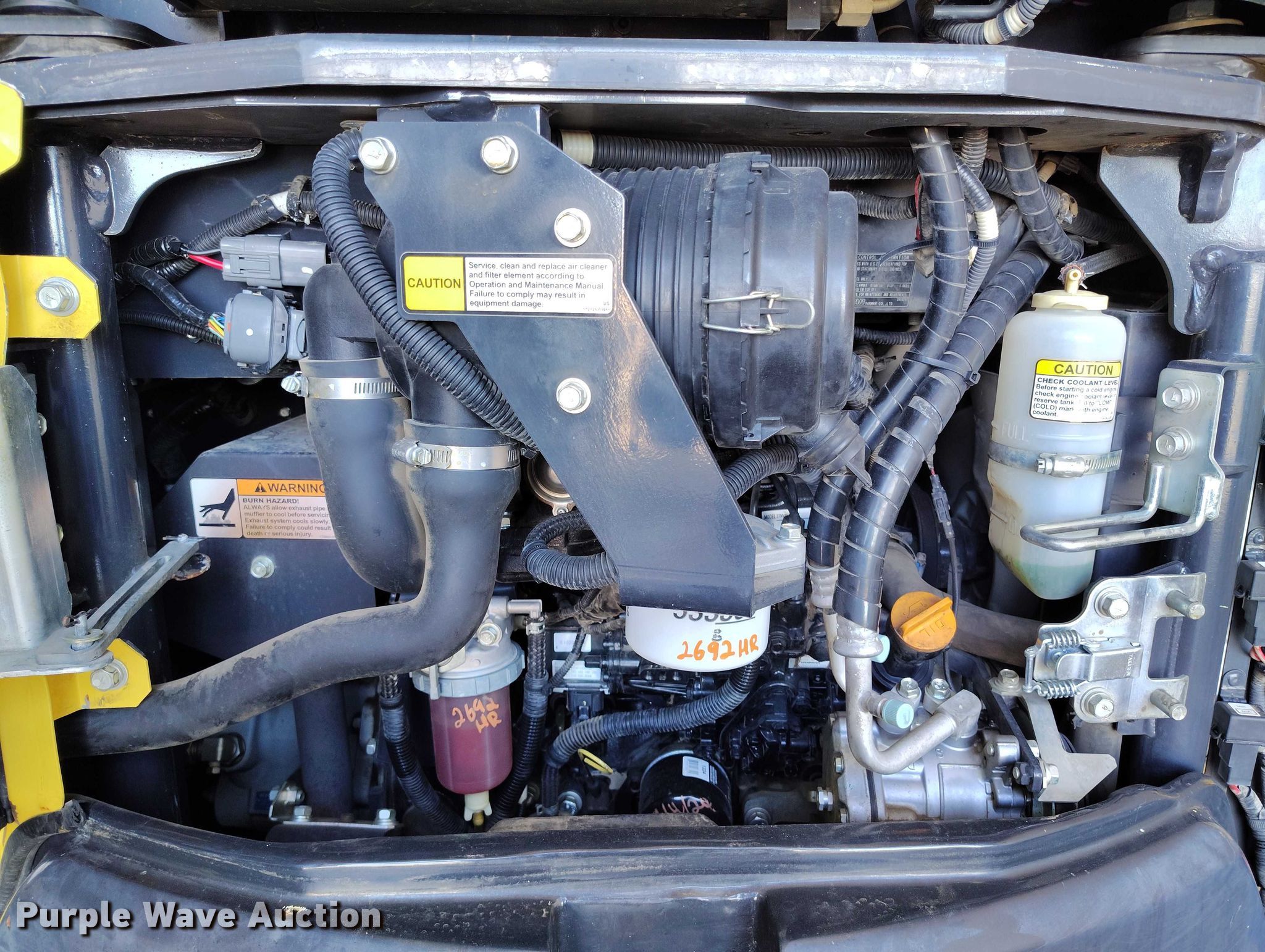Yanmar VIO35-6A mini excavator. Hours: 2,729 on meter, Serial: YMRVIO35VGAJAF094. Engine Yanmar 4HNSAE, Displacement: 1.642L, Cylinders: 3, Fuel type: Diesel. Transmission Hydrostatic, Two speed travel. Operators station Enclosed cab, AC, Heat, Pattern changer. Features Auxiliary hydraulics, Counter weights, Backfill blade Width: 68", Boom Swing, Stick Stick length: 5', Quick coupler: Hydraulic, Bucket Width: 21.5", Teeth: 4. Tracks Width: 12", Rubber. Notes Hydraulic quick connector O ring will be replaced prior to auction, Shackles not included. G4 Construction Equipment LLC. Commerce City, CO 80022