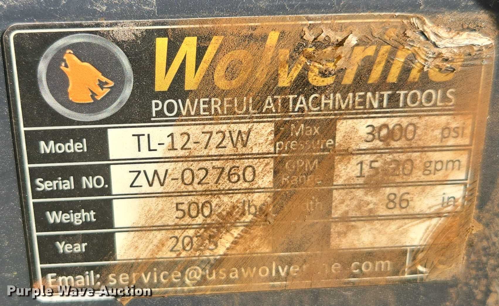 2025 Wolverine TL-12-72W skid steer tiller | Wednesday December 31 Construction Equipment Auction