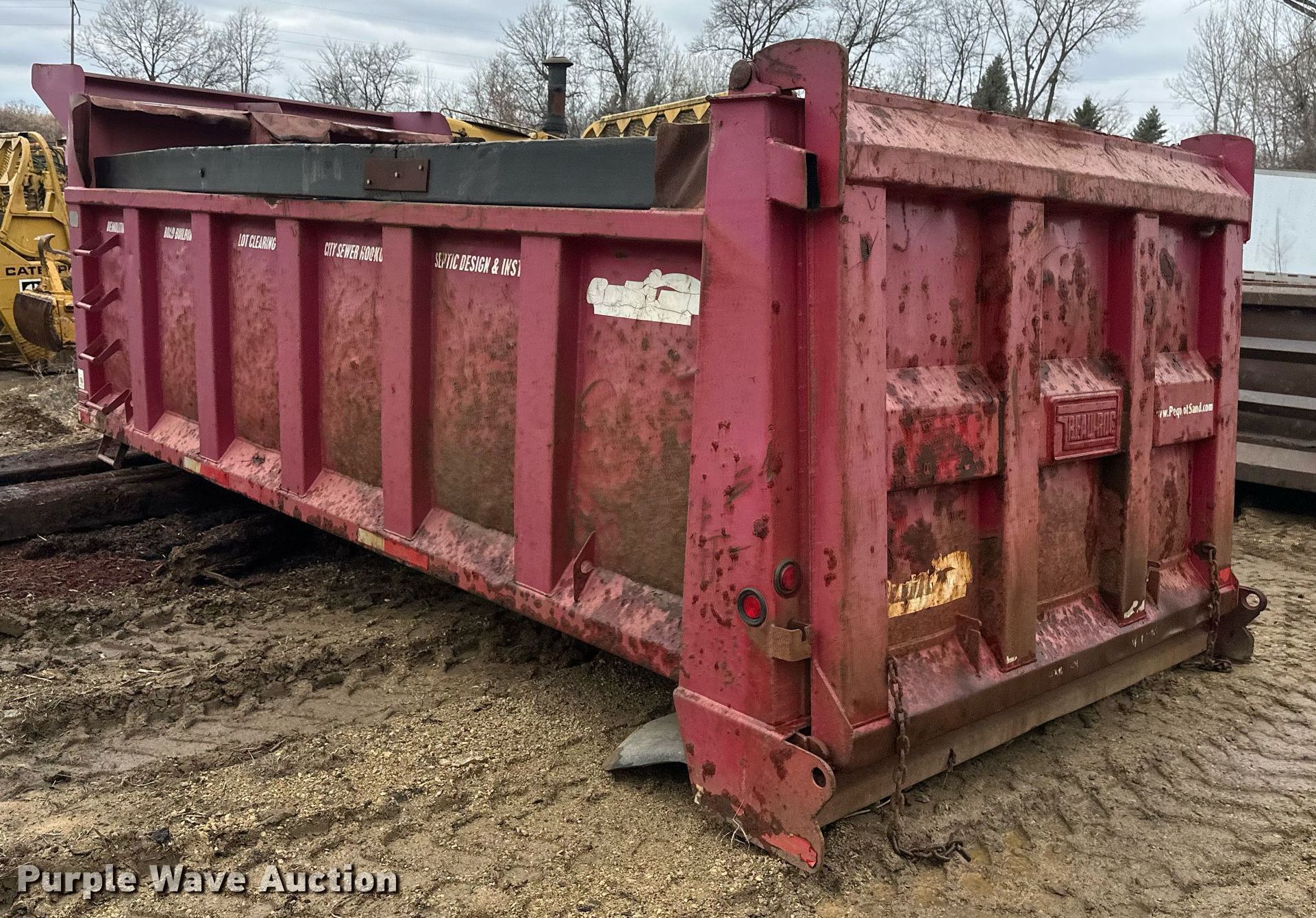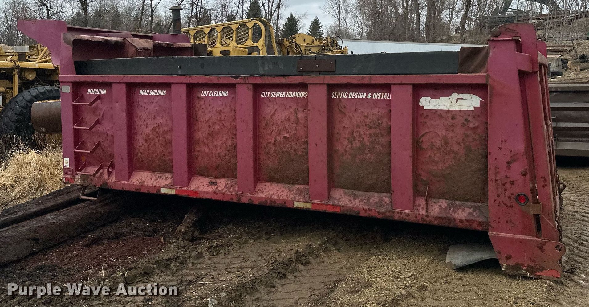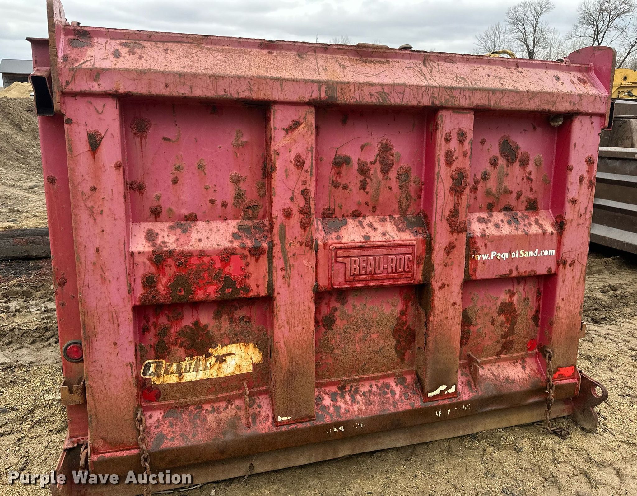 Beau-Roc dump bed. Length: 16' 6", Width: 2', Side height: 48", Side board height: 7.5", Bed type: Steel, Ram: Single, End gate: Air operated. Fitzgerald Excavating & Trucking. Goodhue, MN 55027