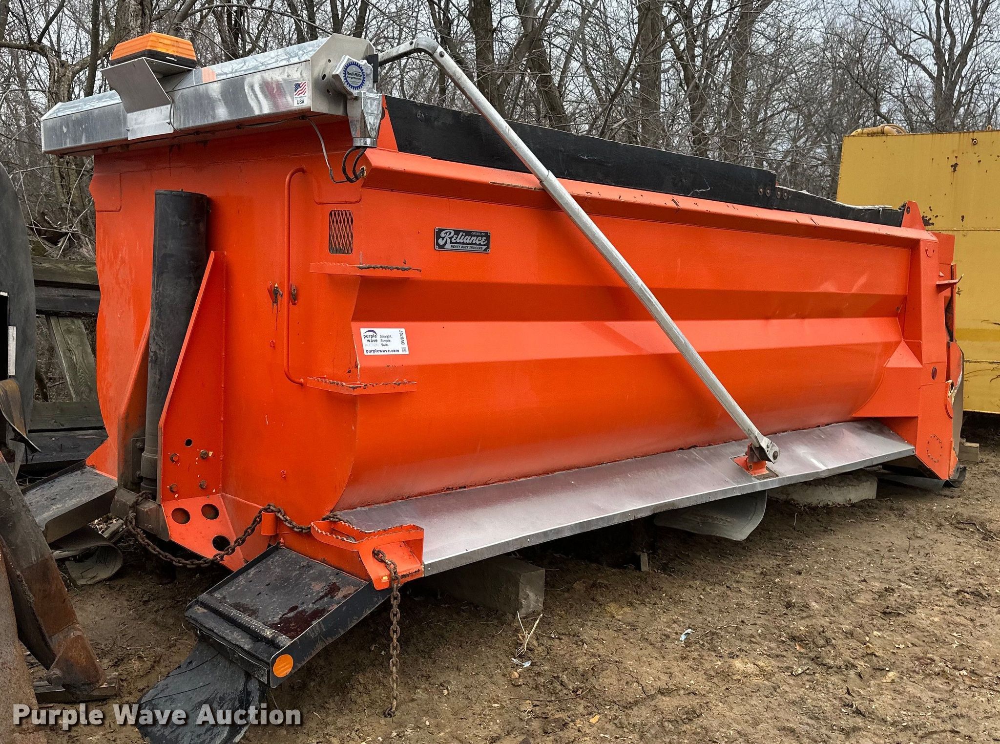 Purple Wave is selling a used Truck Part and Attach. in Minnesota. This item is a Reliance dump bed with the following: Length: 18' 2", Width: 8' 4", Side height: 60", Side board height: 8", Bed type: Steel, Roll tarp, Ram: Single, End gate: Air operated