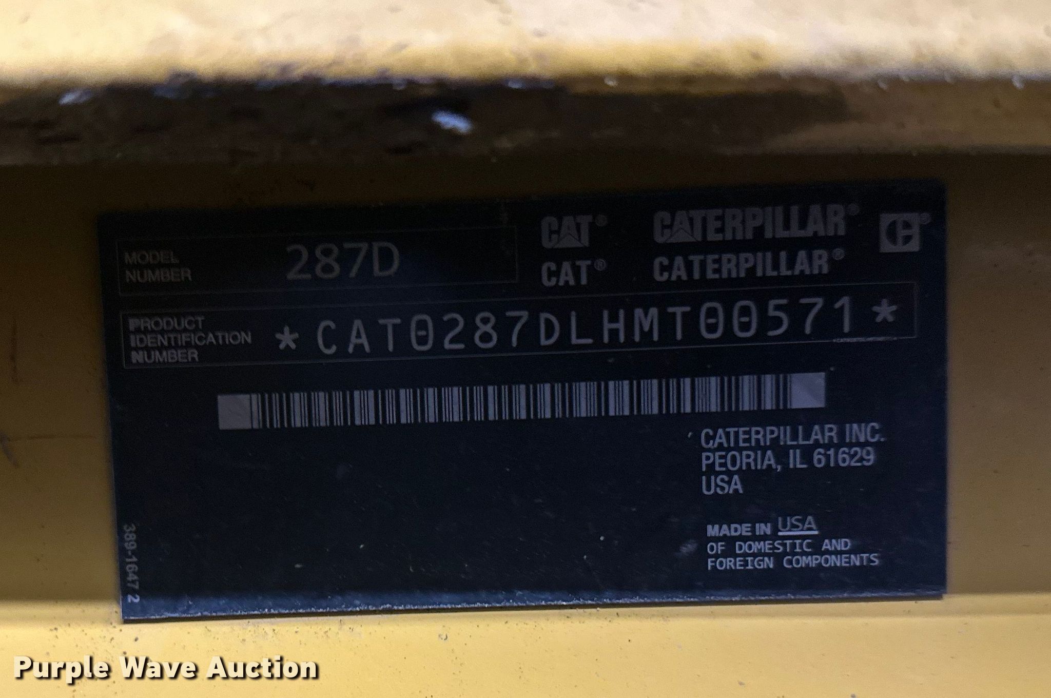 Purple Wave is selling a used Tracked Skid Steer Loader in Minnesota. This item is a 2015 Caterpillar 287D tracked skid steer loader with the following: Hours: 3,612 on meter, Miles or hours may vary, unit still in use, Serial: CAT0287DLHMT00571