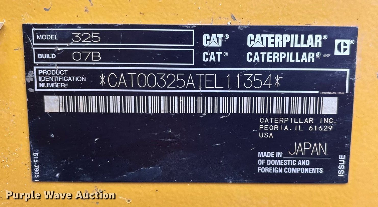 Purple Wave is selling a used Hydraulic Excavator in Missouri. This item is a 2022 Caterpillar 325 excavator with the following: Hours: 2,554 on meter, Miles or hours may vary, unit still in use, Serial: CAT00325ATEL11354