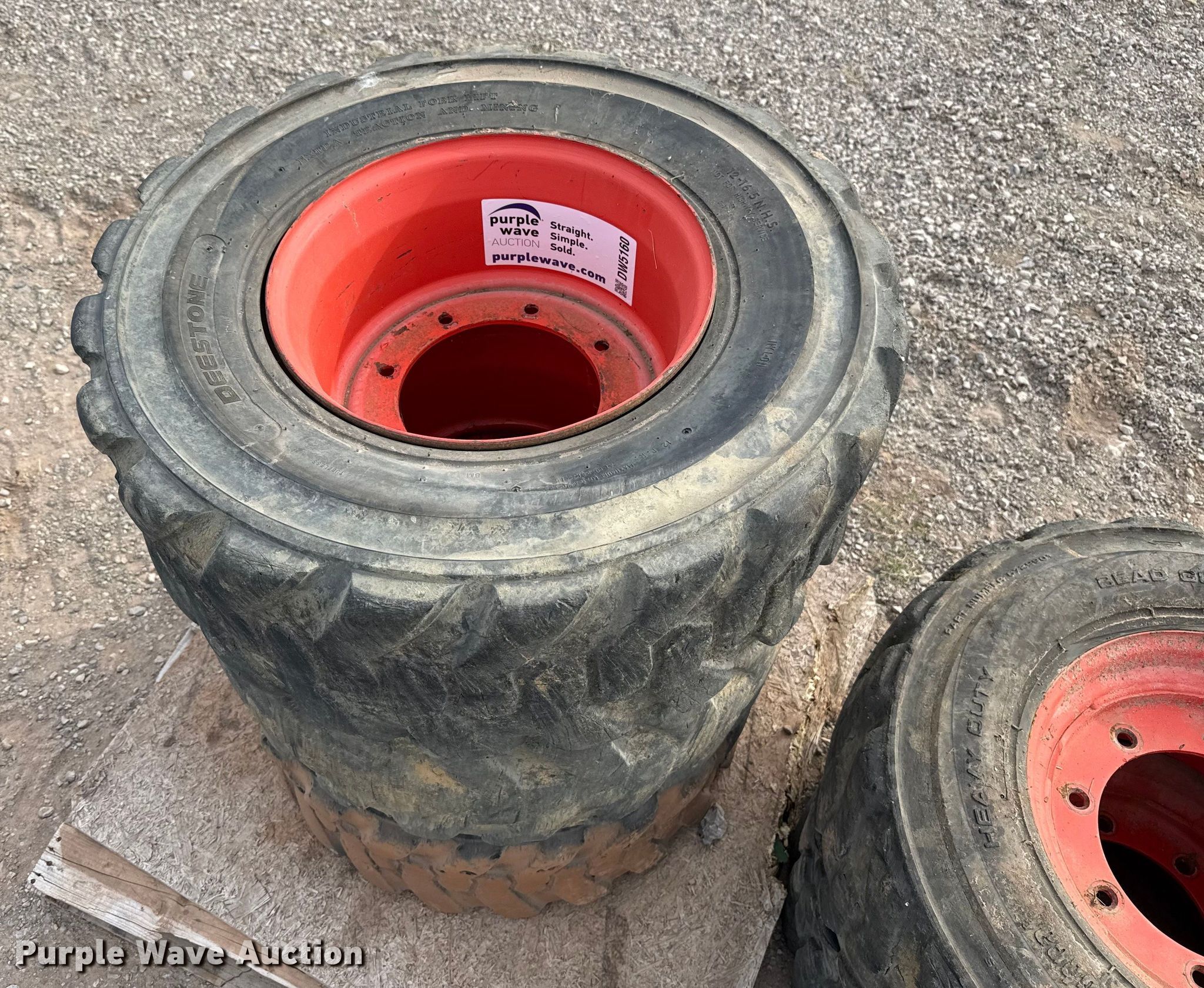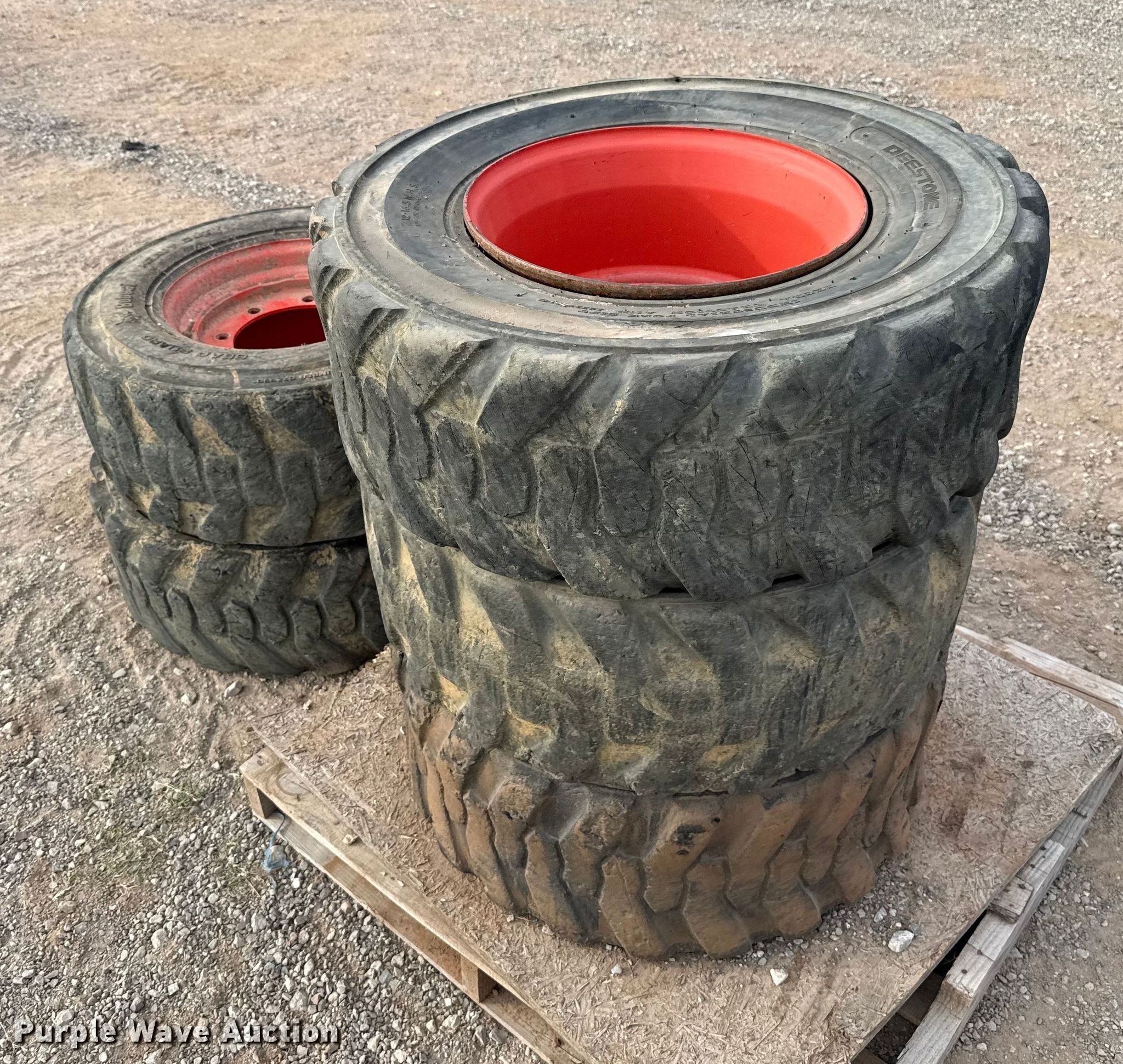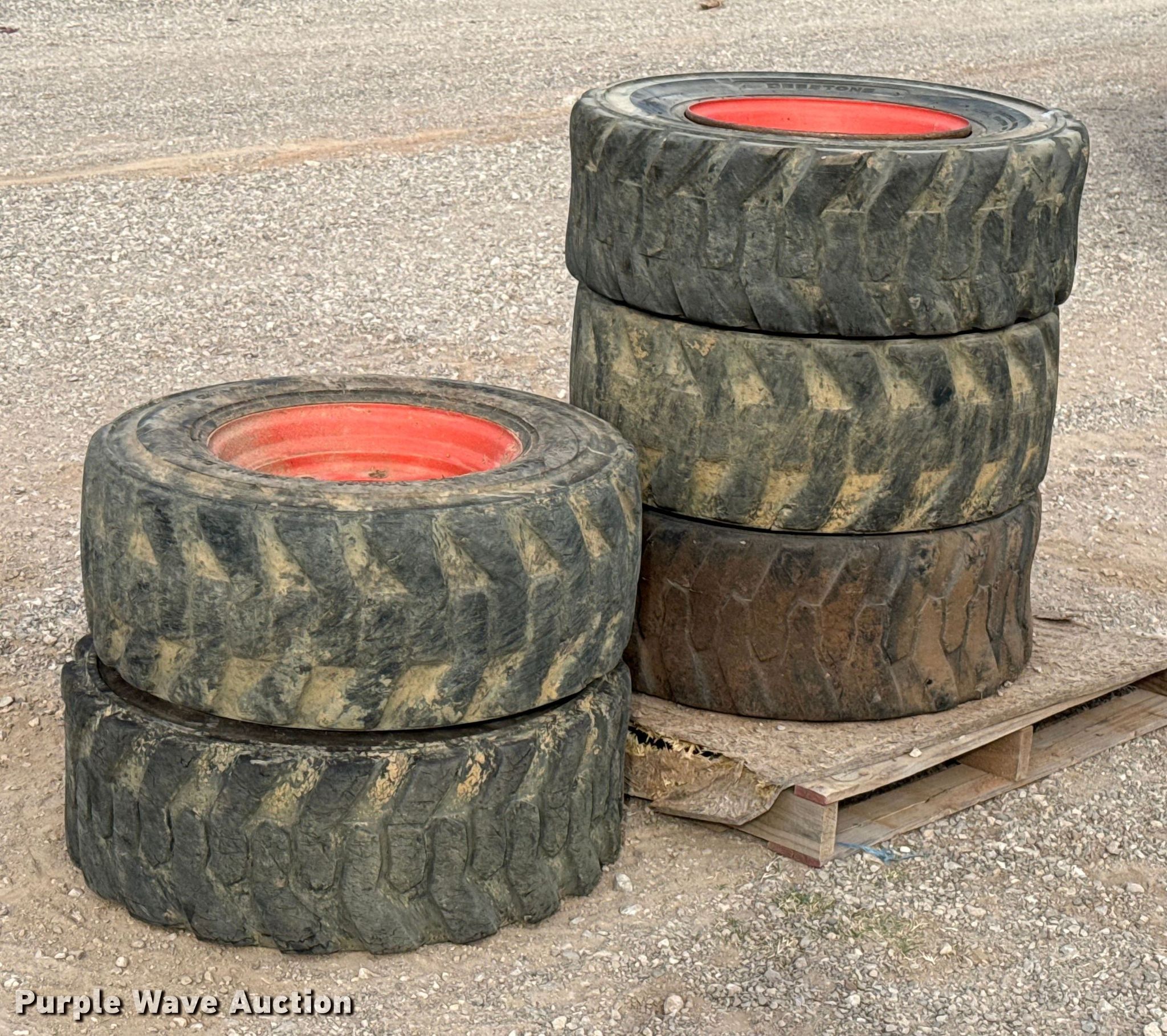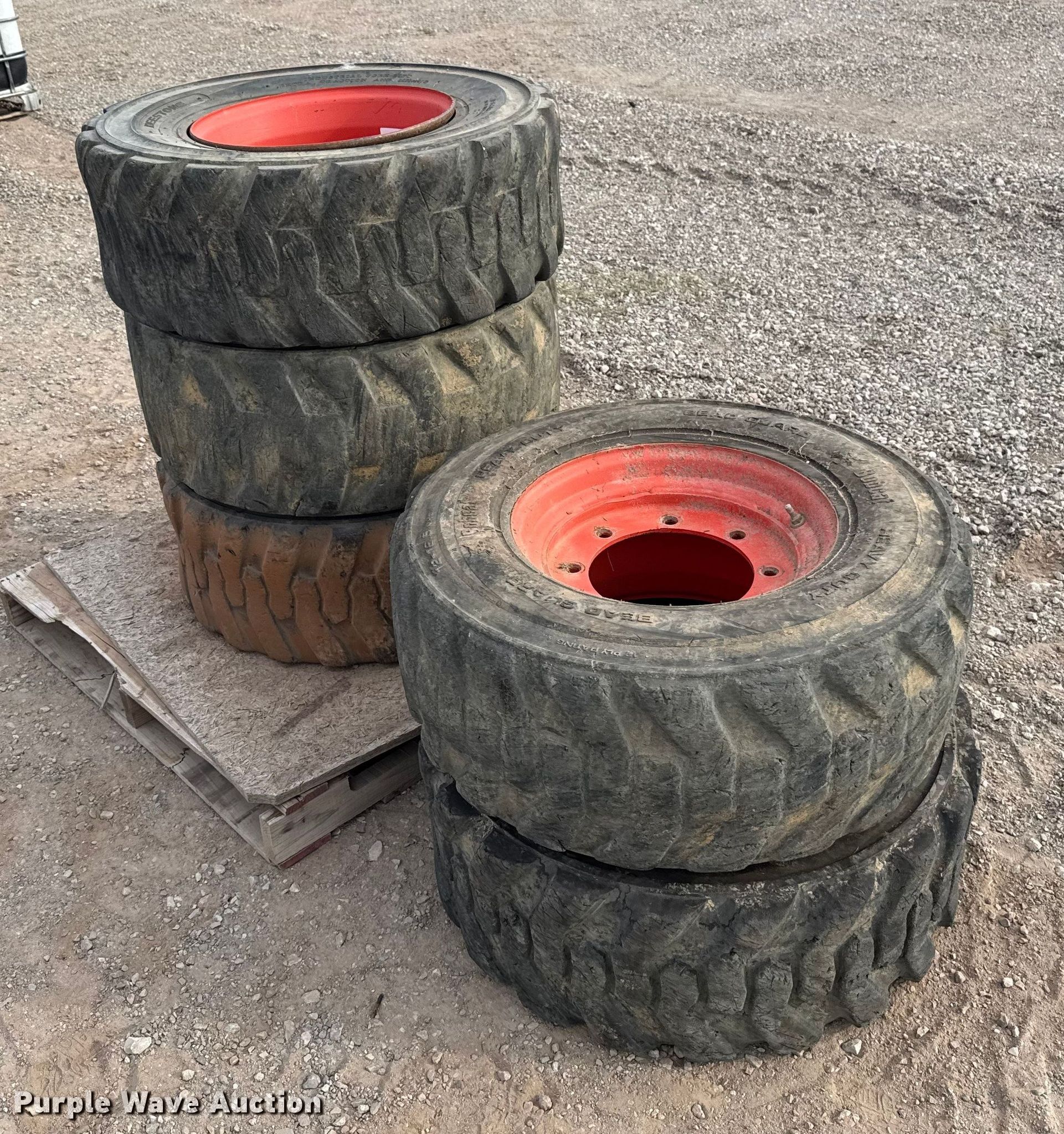 Purple Wave is selling a used Industrial Tires or Tracks in Oklahoma. This item is a (5) Bobcat 12-16.5 tires and wheels with the following: (5) Bobcat 12-16.5 tires and wheels. Duit Holdings, Inc.. 7183 East Waterloo Industrial Road. Edmond, OK 73034