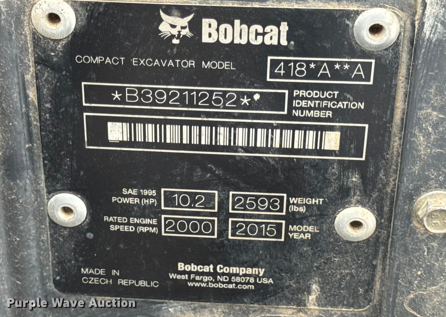 Purple Wave is selling a used Mini Excavator in Missouri. This item is a 2015 Bobcat 418 mini excavator with the following: Hours: 618 on meter, Serial: B39211252