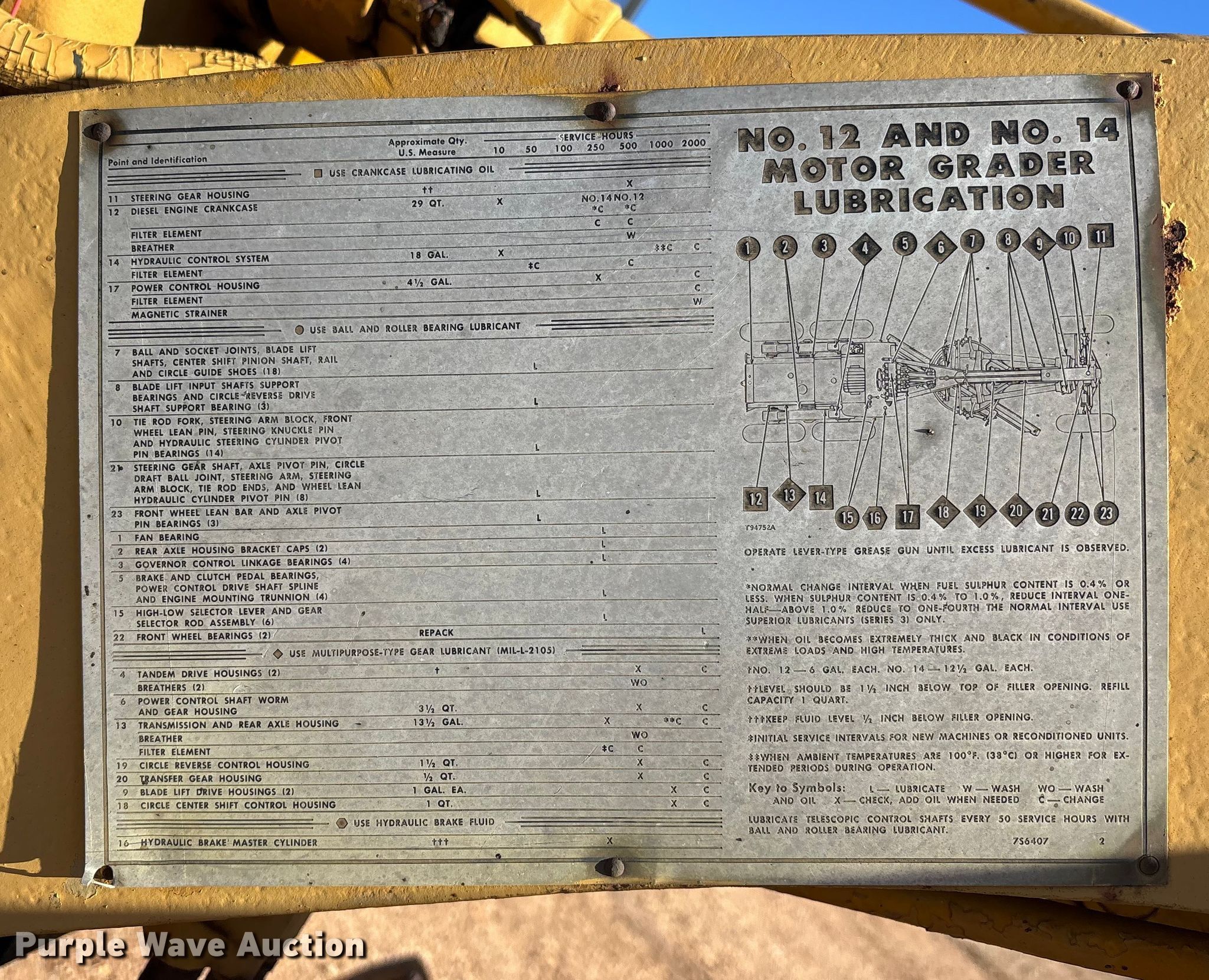 Purple Wave is selling a used Motor Grader in Missouri. This item is a 1969 Caterpillar 12F rigid frame motor grader with the following: Serial: 13K2094