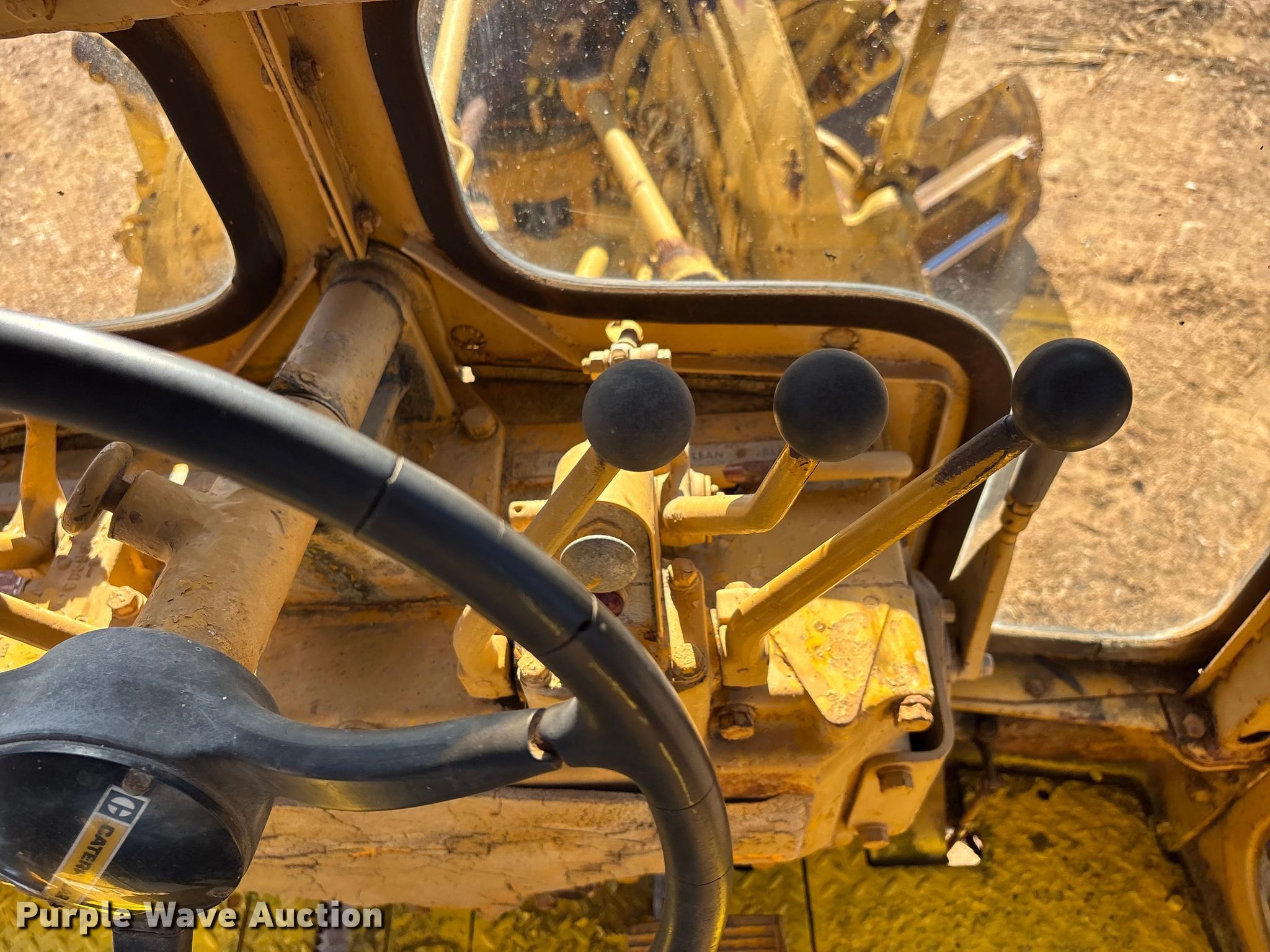 1969 Caterpillar 12F rigid frame motor grader. Serial: 13K2094. Engine Caterpillar, Cylinders: 6, Fuel type: Diesel. Transmission Direct-drive, 6F - 4R. Chassis Differential lock. Operators station Enclosed cab, Hydraulic control valves: 6. Features Moldboard: Side shift, Moldboard total width: 12'. Tires Size: 14.00-24. Notes Glass cracked, Non-operational brakes. Rena Baughman. Greenville, MO 63944