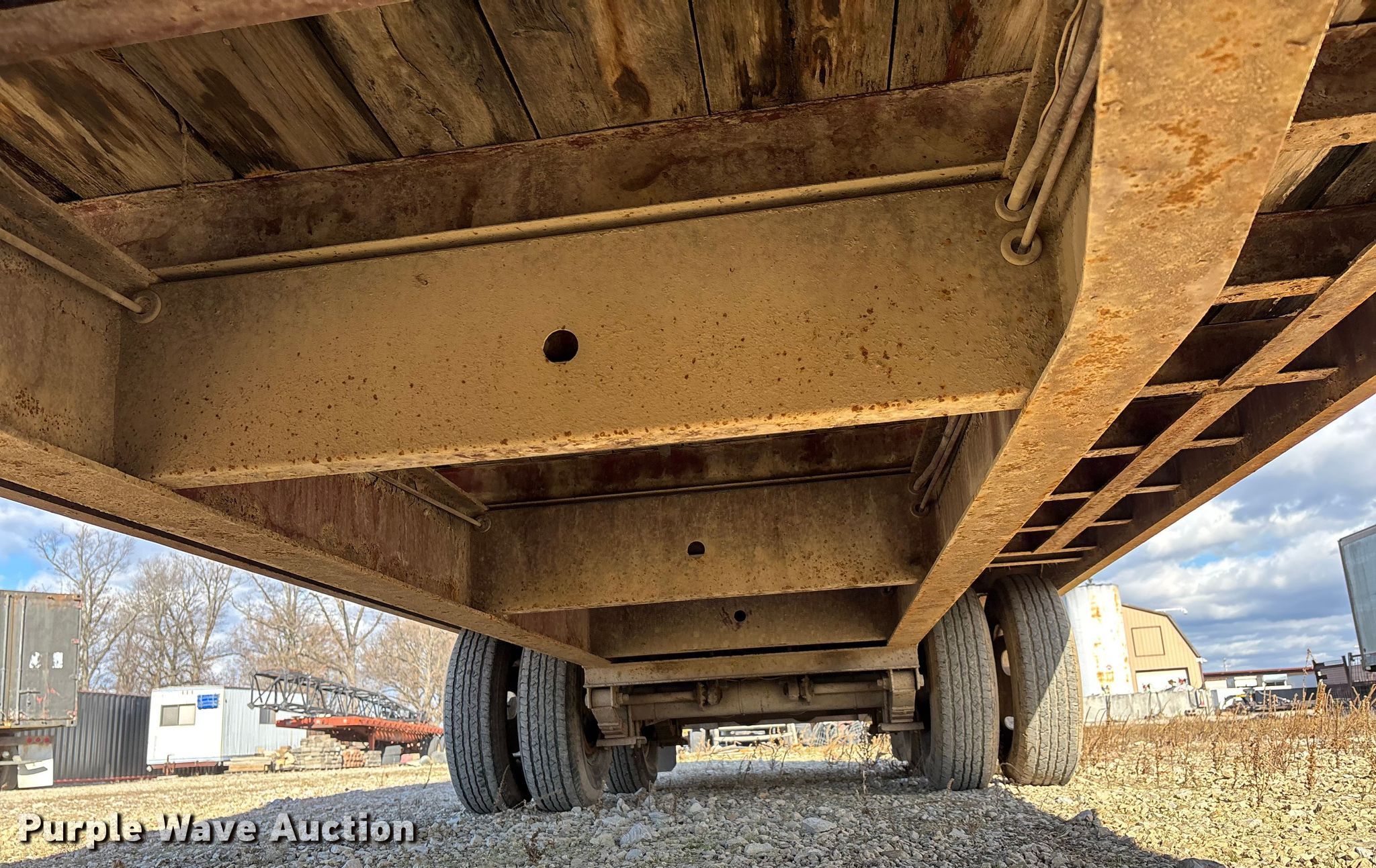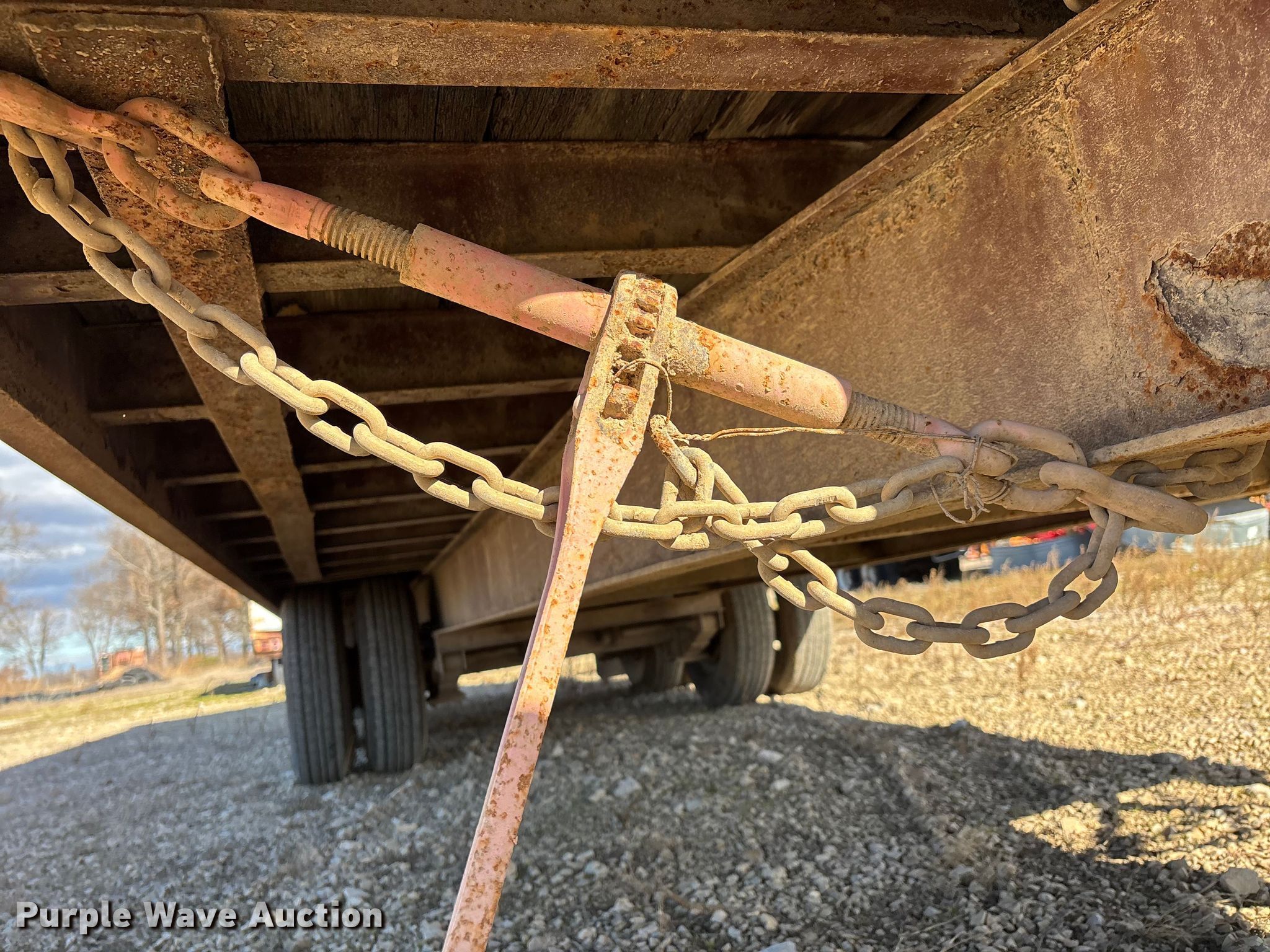1999 Trail King TK20-2400 flatbed trailer. VIN: 1TKC02425XM058802, Unit #: 53. Dimensions Overall Length: 29' 6", Width: 8', Deck Length: 24', Width: 8', Deck height: 35". Features Deck type: Wood, Open top container Dimensions Approx. 20' L x 8' x 9' 6".. Chassis Hitch: Pintle, Landing gear: Single, Suspension: Spring, Brakes: Air, Axles: Tandem, GVWR: 25,900 lbs, GAWR: 10,000 lbs. Tires Steel wheels, Size: 235/85R16. Missouri title. Title distribution may be delayed up to 14 days from verification of funds. Kinder Brothers Excavating. Dexter, MO 63841