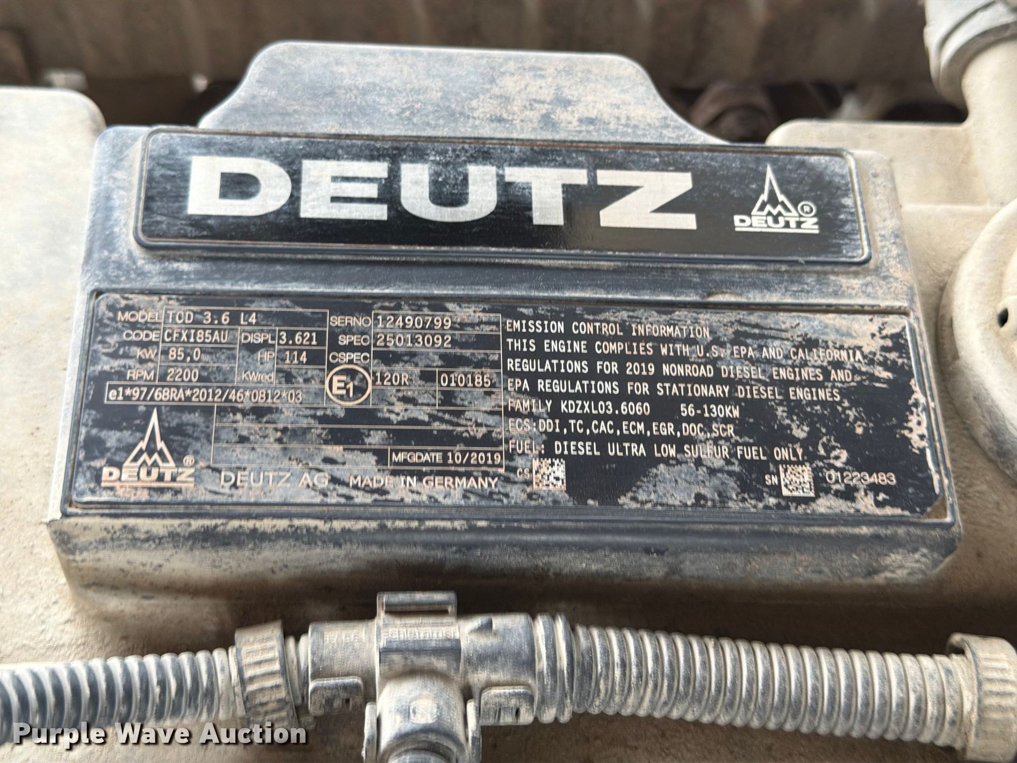 2022 Kaeser M118 air compressor. Hours: 1,696 on meter, VIN: WKA0F2203N8452100, Serial: 1044 - 8452100, Unit #: EQ0136891. Engine Deutz TCD 3.6 L4, Serial: 12490799, Displacement: 3.621L, Cylinders: 4, Fuel type: Diesel, HP: 114, kW: 82. Features Air compressor Kaeser, CFM: 405, PSI: 145. Trailer 14' L x 72" W, Ball hitch size: 2", Suspension: Torsion, Brakes: Hydraulic, Axles: Single, Tire size: 215/75R14, GVWR: 4,462 lbs, GAWR: 4,850 lbs. This is worksite support equipment and will not come with a title. Transfer of ownership documentation will be a bill of sale. ASCO Equipment. San Antonio, TX 78220