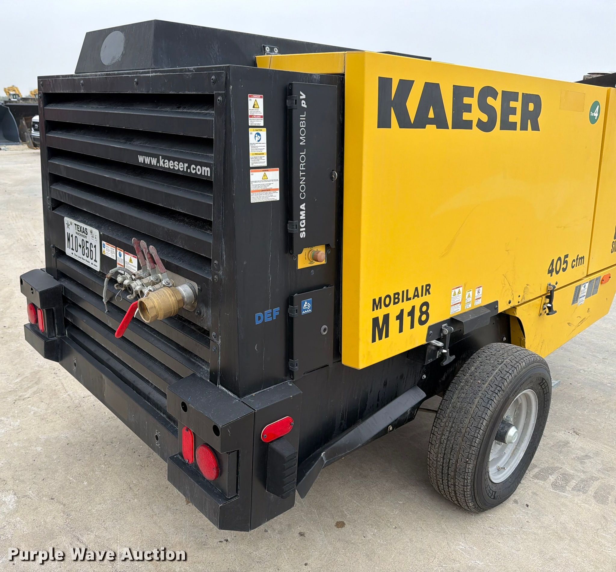 Purple Wave is selling a used Air Compressor in Texas. This item is a 2022 Kaeser M118 air compressor with the following: Hours: 1,831 on meter, VIN: WKA0F2203N8479305, Serial: 1059 - 8479305, Unit #: EQ0136888