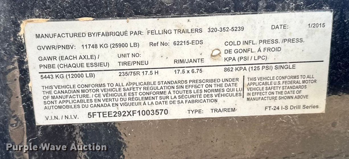 2015 Vermeer D20X22III directional boring unit. Hours: 2,593 on meter, Serial: 1VRA170V5F1000214. Engine Deutz TD 2.9 L4, Displacement: 2.9L, Cylinders: 4, Fuel type: Diesel. Features Water pump, Drill bit width: 4", Drill stems On drill: 41, Additional: 12, Drill stem length: 123" Diameter: 2", Auto rod loader, Rear hydraulic stabilizers, Hydraulic stake down, Locator Receiver, Fluid mix system Vermeer MX125, Serial: 1VRX030U8FF003768, Mix system capacity: 400 gallons, Engine Honda.. Tracks Width: 10", Rubber. Trailer 2015 Felling FT-24 IS Drill series, VIN: 5FTEE292XF1003570, Overall length: 30', Overall width: 102", GVWR: 25,900 lbs, Hitch: Pintle, Additional rod storage, Axles: Tandem, Suspension: Spring, Brakes: Electric, Tire size: 235/75R17.5. Iowa title. Title distribution may be delayed up to 14 days from verification of funds. Rugger Underground Construction Retirement. Lisbon, IA 52253