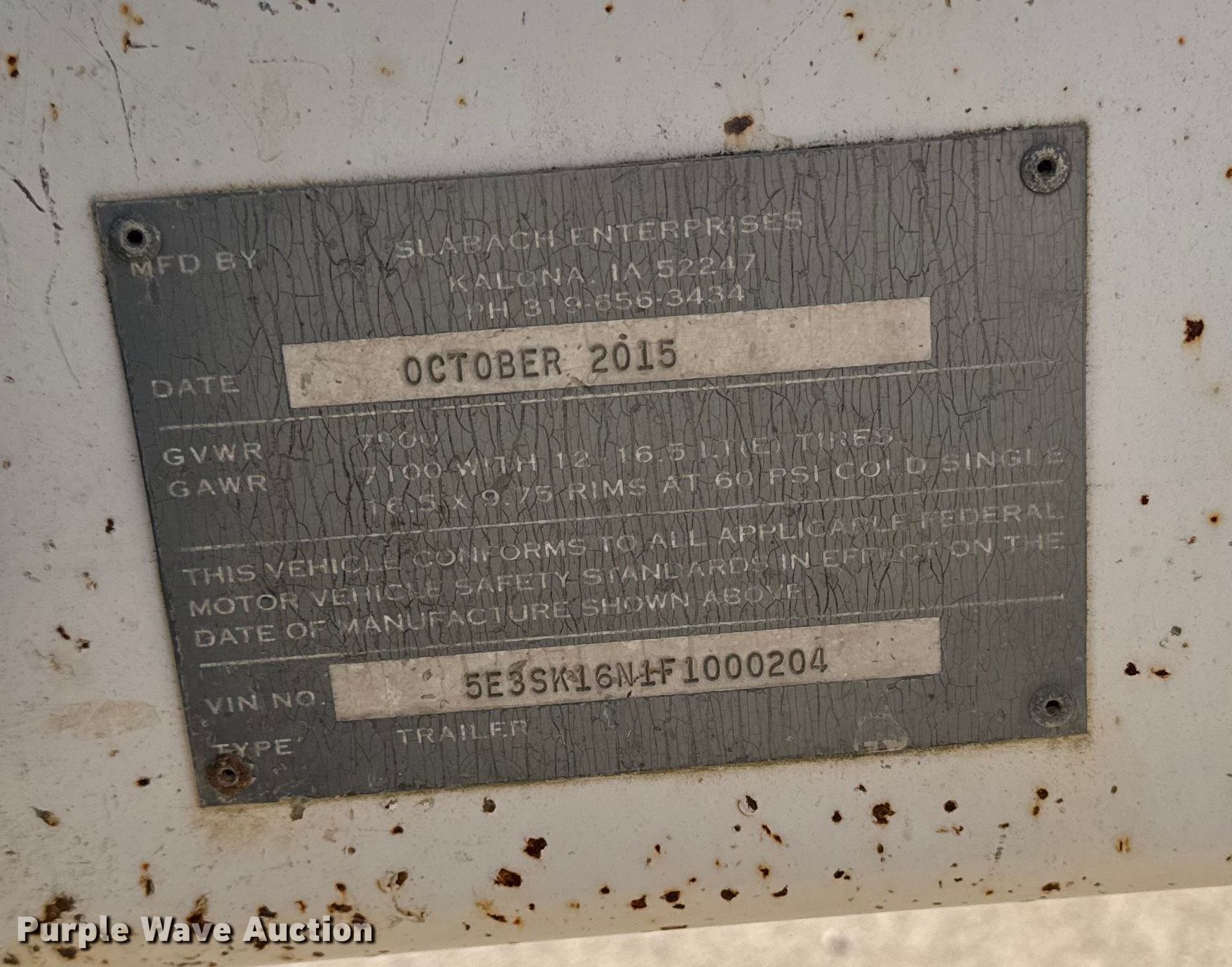 Purple Wave is selling a used Reel Trailer in Iowa. This item is a 2015 Slabach I-60 reel trailer with the following: VIN: 5E3SK16N1F1000204