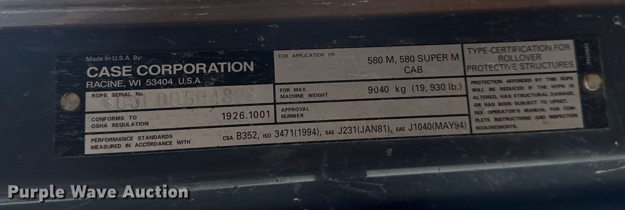 2001 Case 580 Super M backhoe. Hours: 5,664 on meter, Serial: JJG0279125. Engine Case 4.T-390, Displacement: 3.9L, Cylinders: 4, Fuel type: Diesel. Transmission Shuttle shift, 4F - 4R. Chassis Four wheel drive. Operators station Enclosed cab, Heat, Backhoe controls: Four stick. Features Loader Bucket Bucket leveler, Width: 83", Cutting edge: Bolt-on, Backhoe Extendable stick, Bucket Width: 29", Teeth: 6, Bucket Width: 29". Tires Front: 12-16.5, Rear: 19.5-24. Notes Rear glass issues, Drivers door glass missing, Warning indicator: Warning light on cluster. Wes' Plumbing & Heating, Inc.. Bemidji, MN 56601