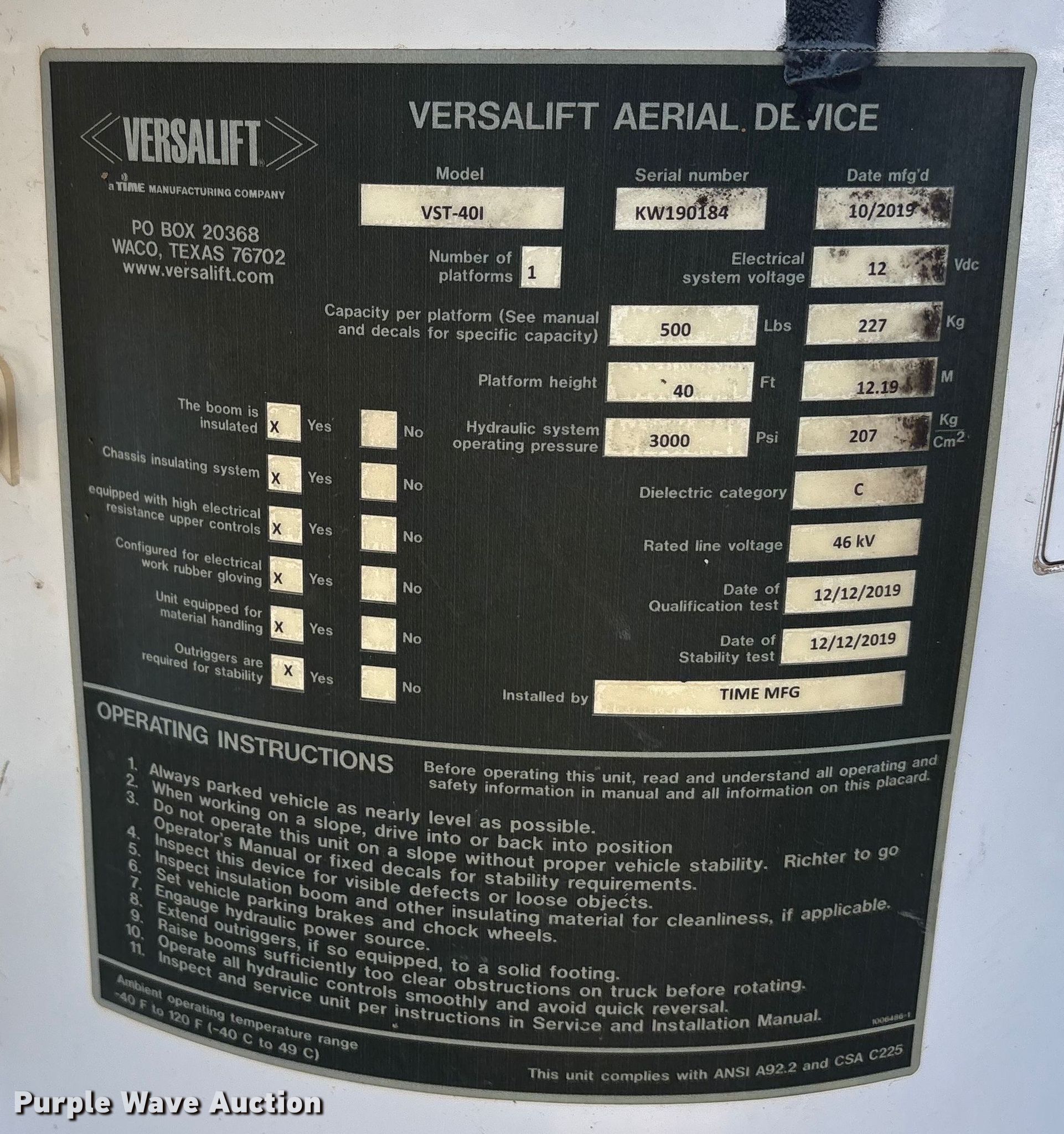 - 2019 Versalift VST-40I