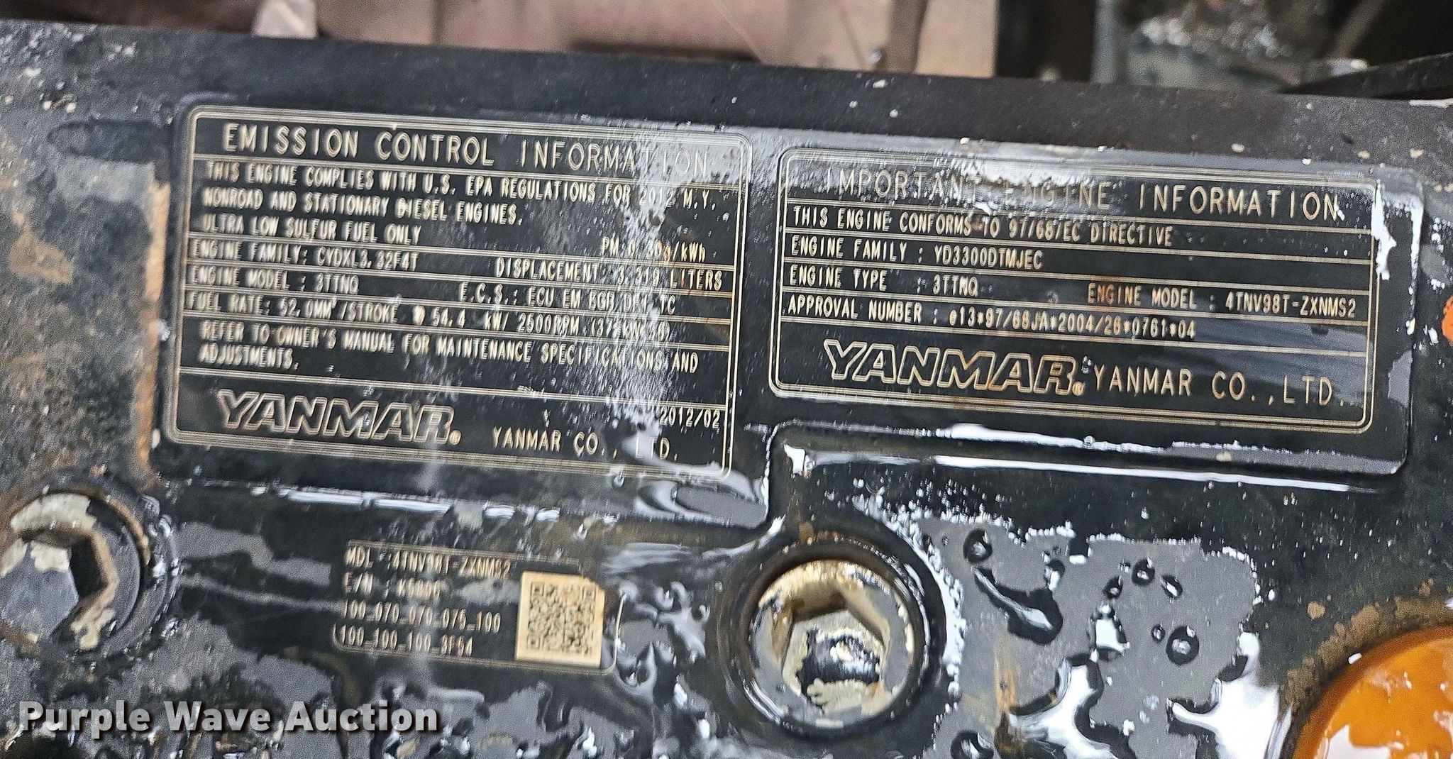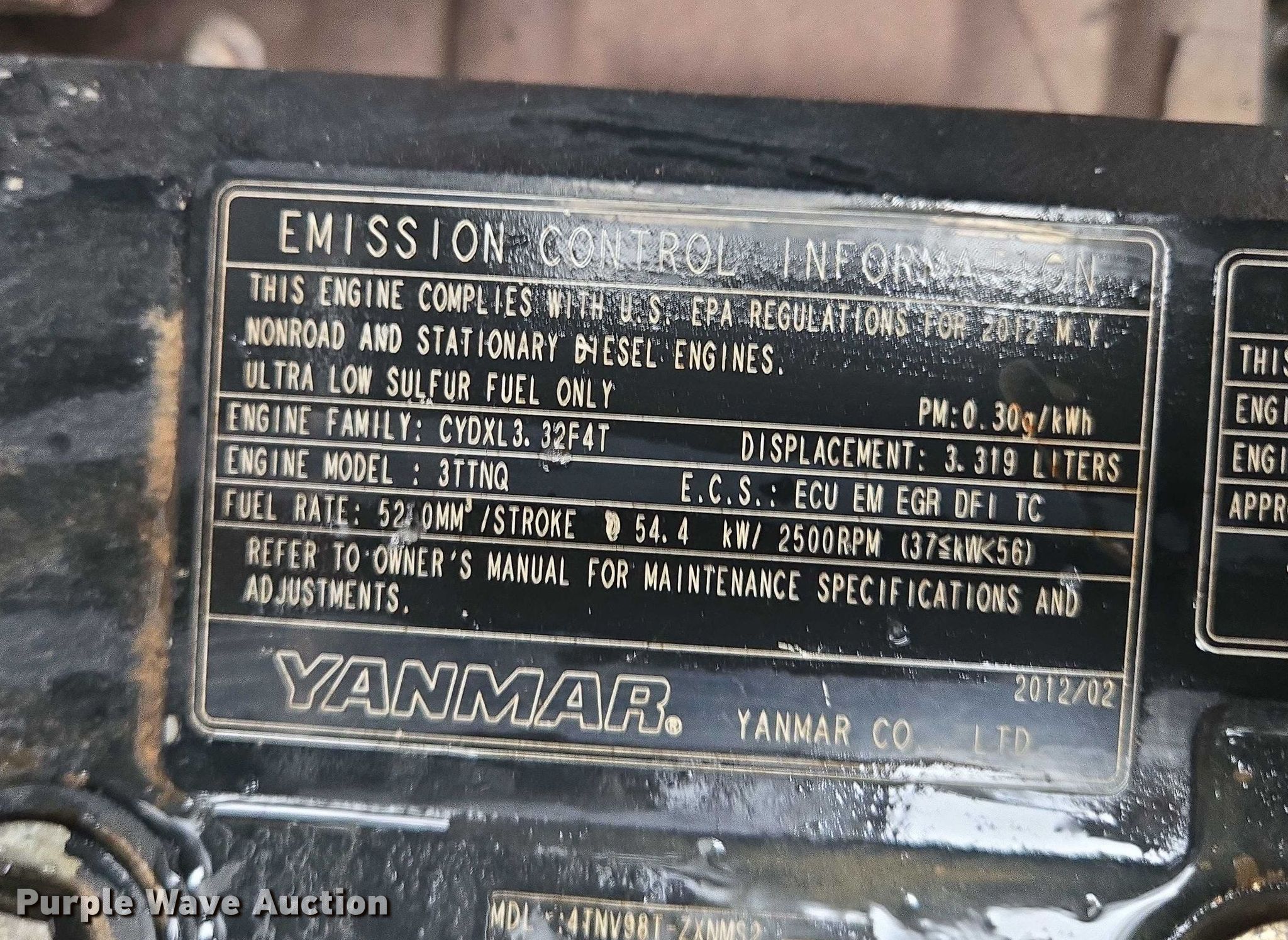 2012 Mustang 2076 skid steer loader. Hours: 4,500 on meter, Serial: MMC02076A00006690. Engine Yanmar, Cylinders: 4, Fuel type: Diesel. Transmission Hydrostatic. Operators station Enclosed cab, Heat, Bucket control: Hand. Features Auxiliary hydraulics, Auxiliary electrical outlet, Quick coupler: Hydraulic, Counter weights, Bucket Width: 74", Cutting edge: Bolt-on. Tires Size: 12-16.5. Menning Excavating Inc.. Mitchell, SD 57301