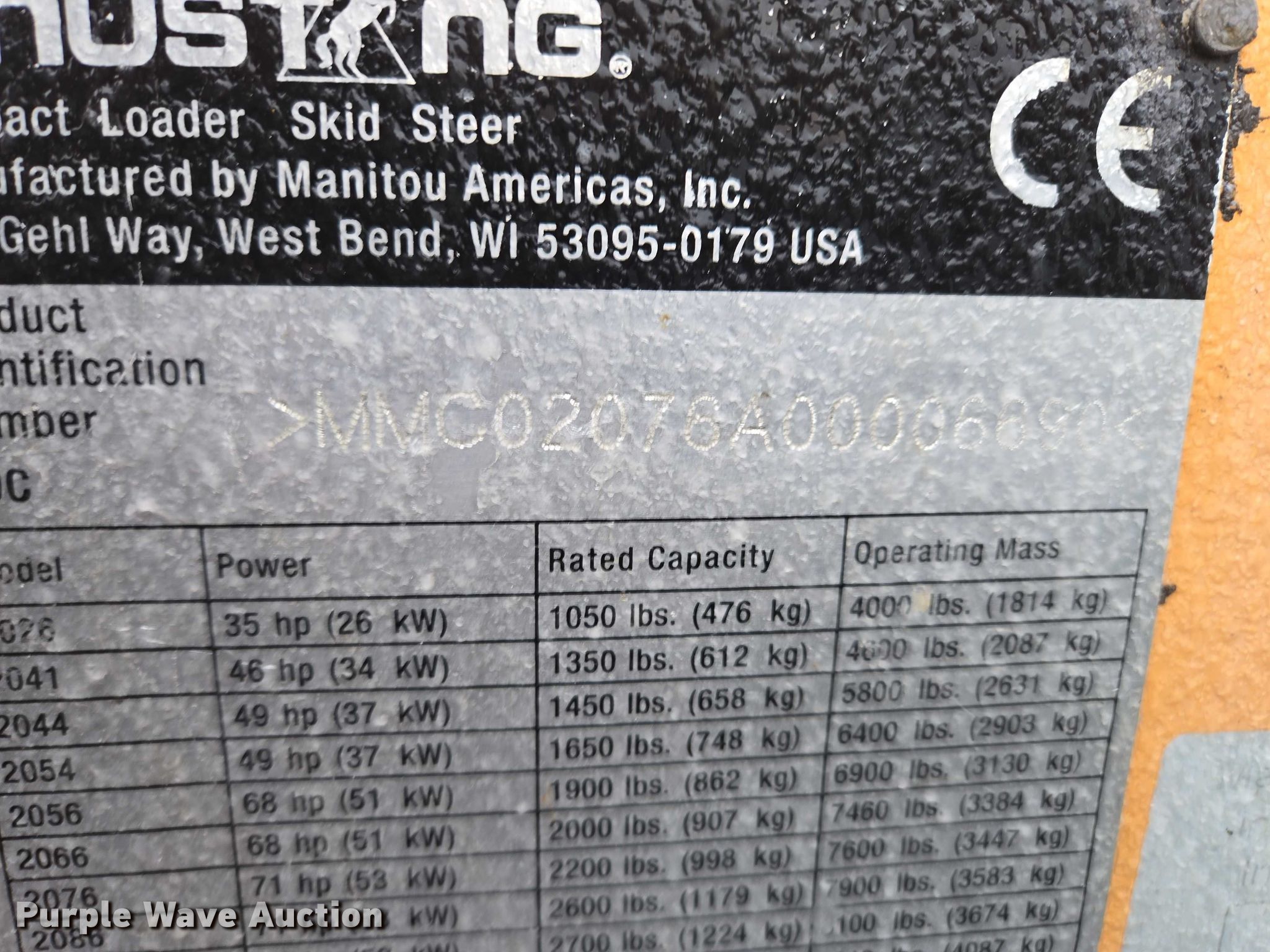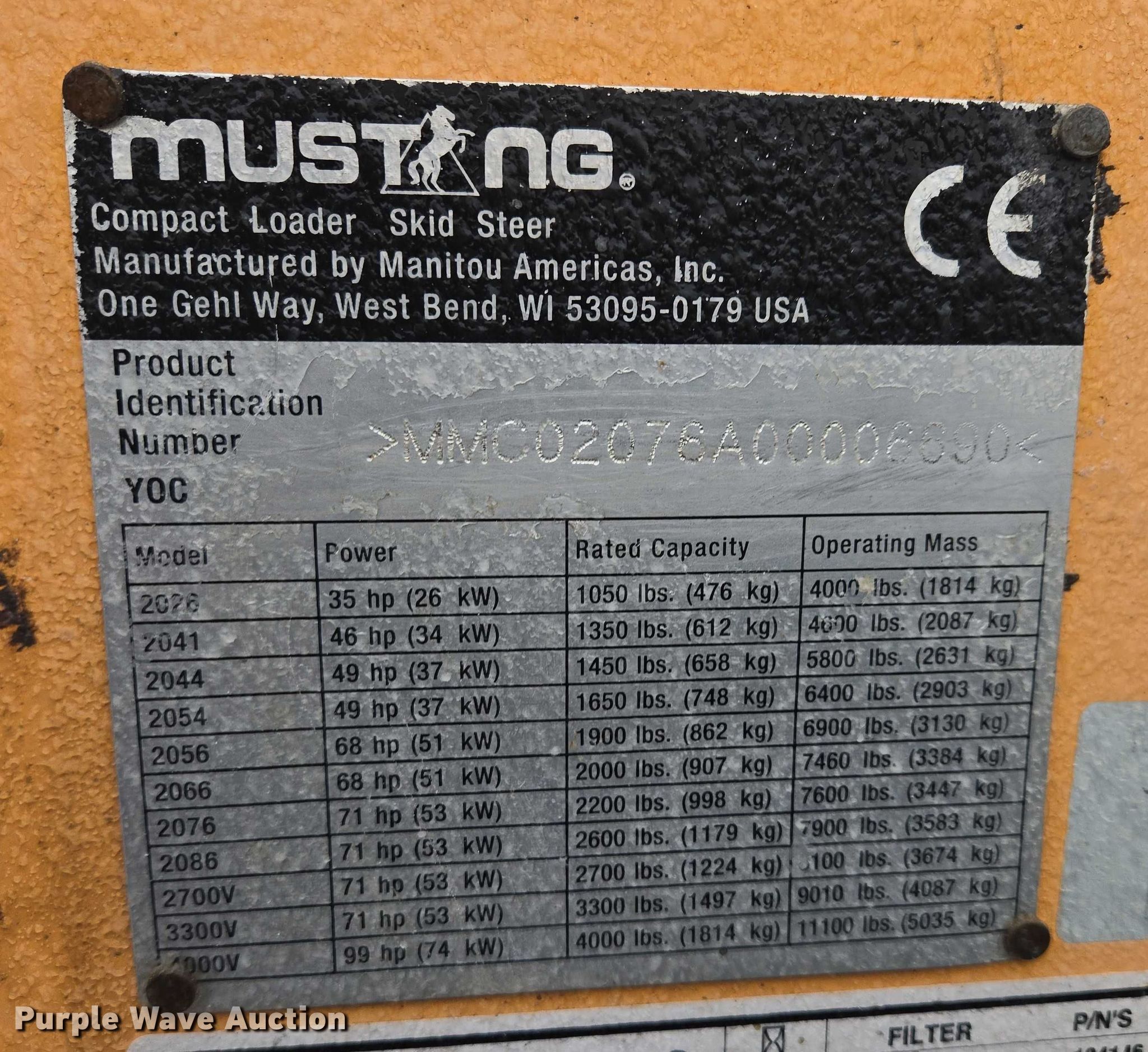 Purple Wave is selling a used Skid Steer Loader in South Dakota. This item is a 2012 Mustang 2076 skid steer loader with the following: Hours: 4,500 on meter, Serial: MMC02076A00006690