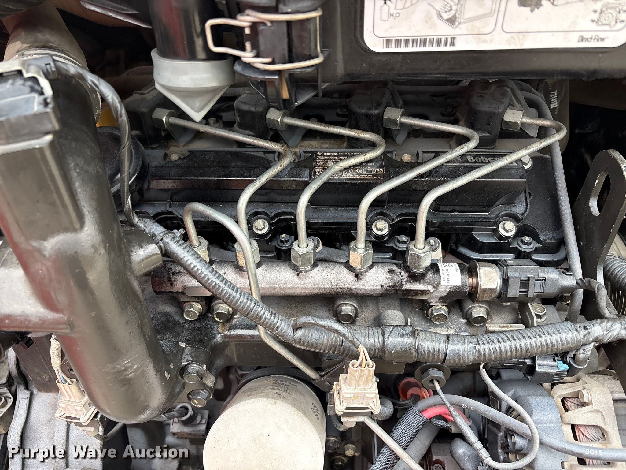 2015 Bobcat T590 Track Skid steer Loader. Hours: 5,014 on meter, Serial: ALJU18494. Engine Bobcat FDICL02.4LEA, Displacement: 2.4L, Cylinders: 4, Fuel type: Diesel. Transmission Hydrostatic. Operators station Bucket control: Hand, Pattern changer. Features Auxiliary hydraulics, Quick coupler: Manual, Bucket Width: 66", Cutting edge: Bolt-on. Tracks Width: 12". Marshall Brothers Enterprises, Inc.. Livermore, CA 94550