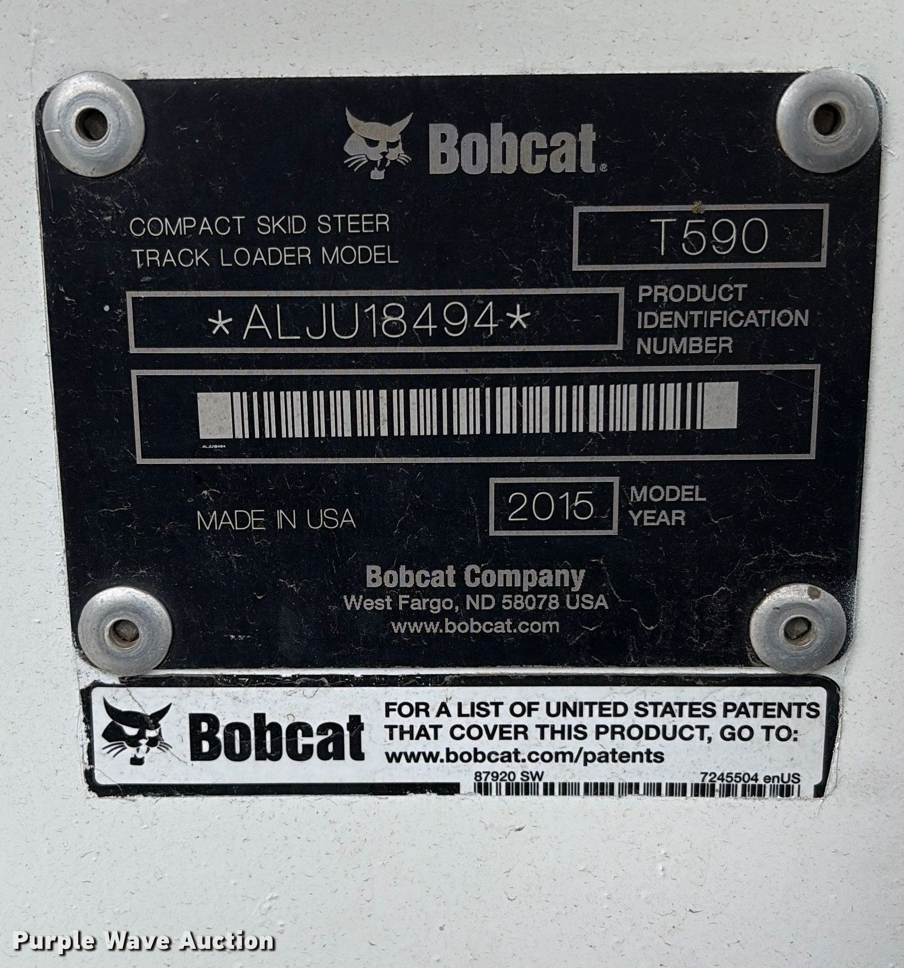Purple Wave is selling a used Tracked Skid Steer Loader in California. This item is a 2015 Bobcat T590 Track Skid steer Loader with the following: Hours: 5,014 on meter, Serial: ALJU18494