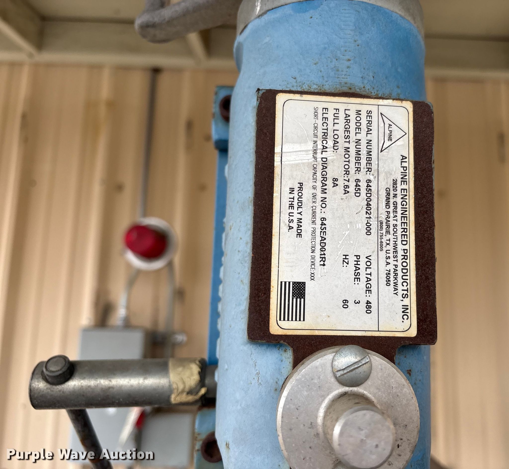Purple Wave is selling a used Tools in California. This item is a Alpine Engineering Produces 645D saw with the following: Serial: 645D04021-000