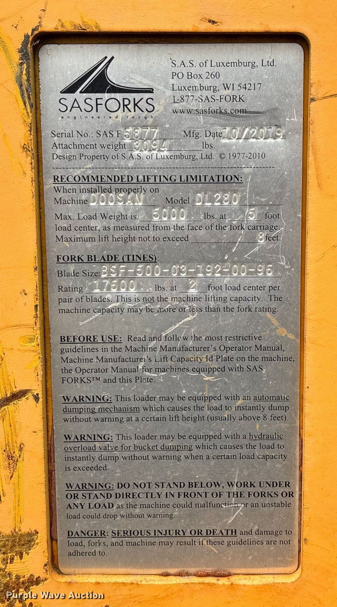 Purple Wave is selling a used Wheel Loader in Missouri. This item is a 2018 Doosan DL280-5 wheel loader with the following: Miles: 6,233 on meter, Hours: 2,537 on meter, Miles or hours may vary, unit still in use, Serial: DWGCWLDAAJ1010052