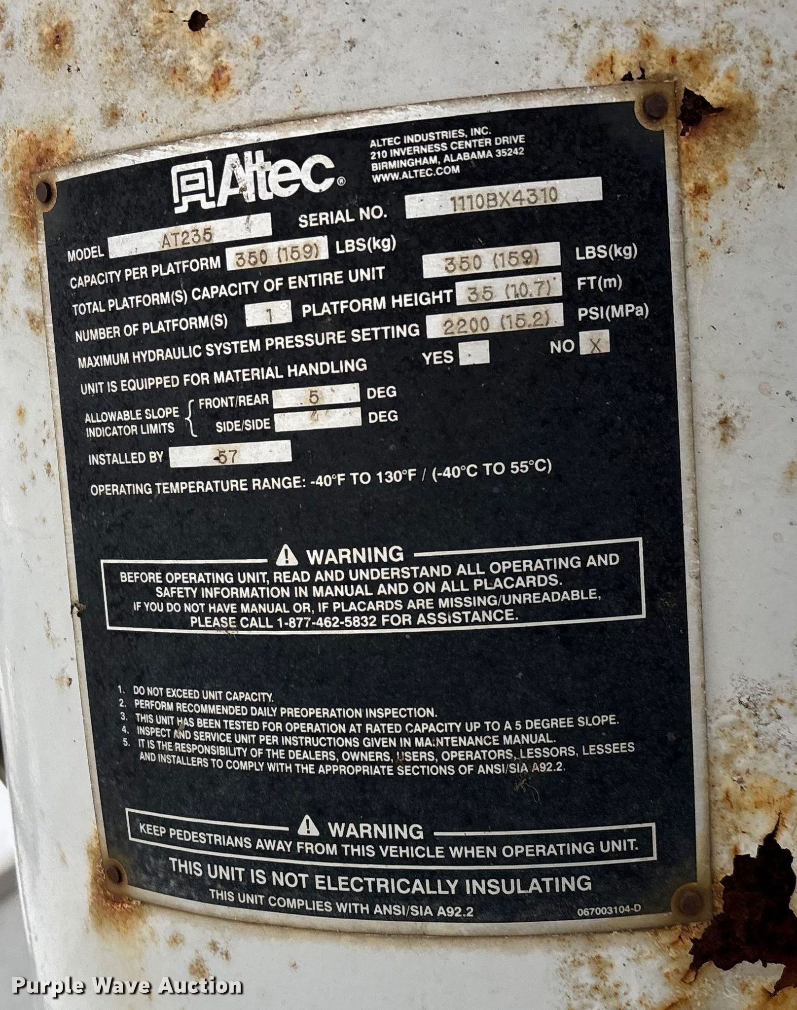 - Maximum lift height: 35'