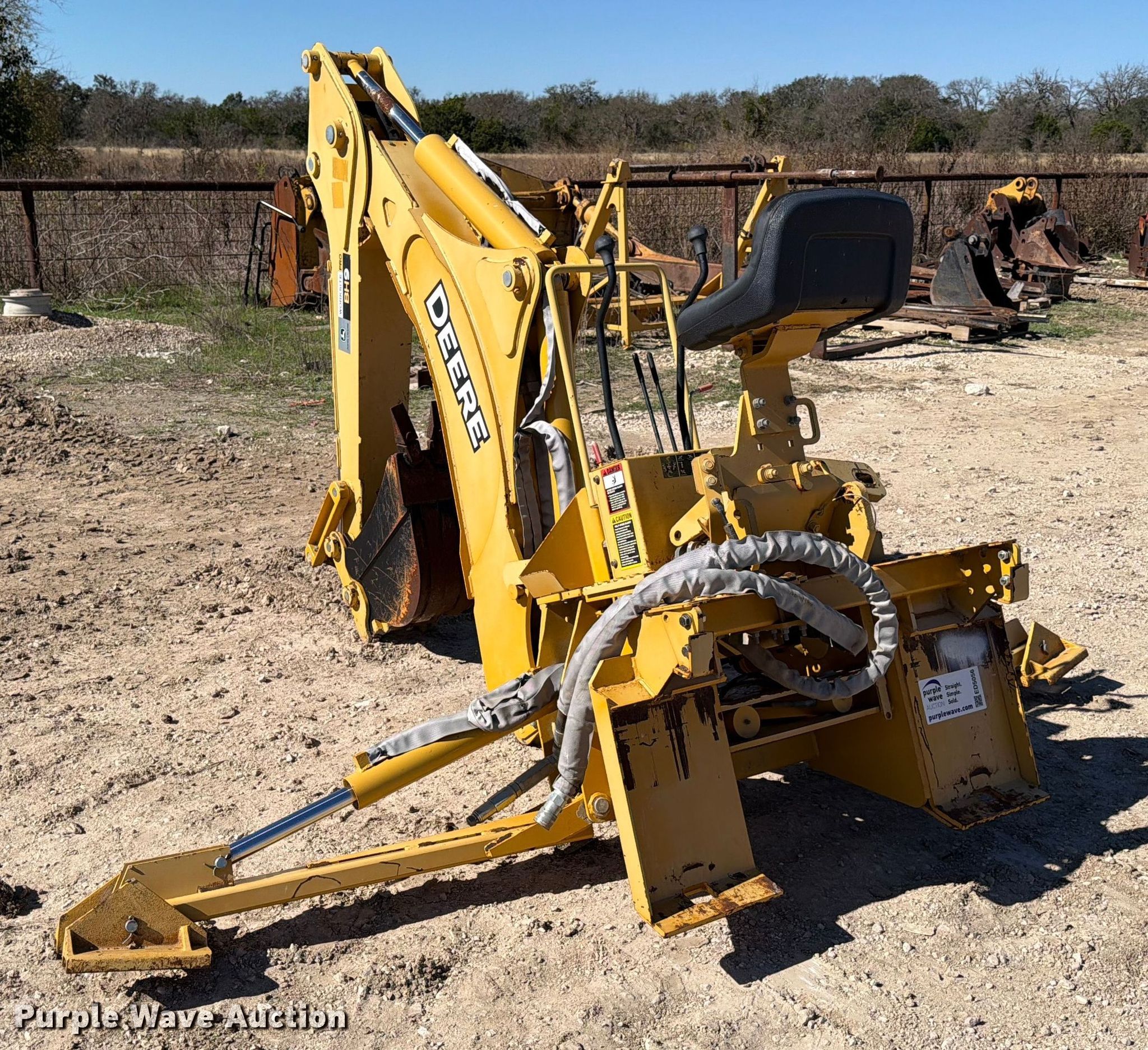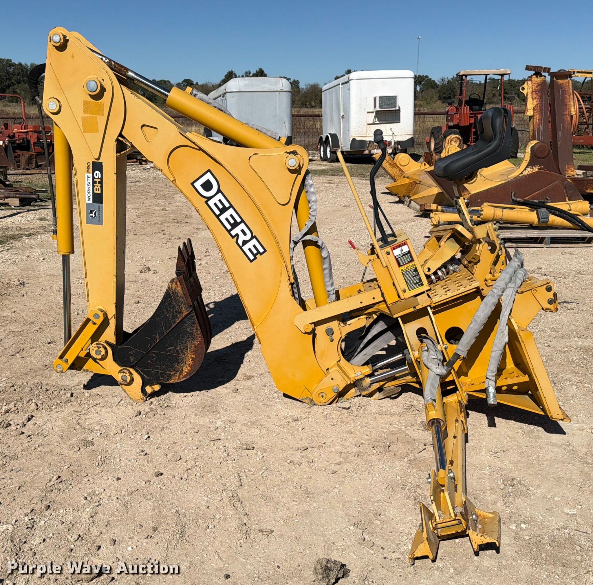 Purple Wave is selling a used Skid Steer Attach. in Texas. This item is a John Deere BH09 skid steer backhoe with the following: Serial: 1T0BH09XVC0000119, Width: 12", Teeth: Bolt-on, Controls: Wobble stick / two stick, Quick coupler: Manual