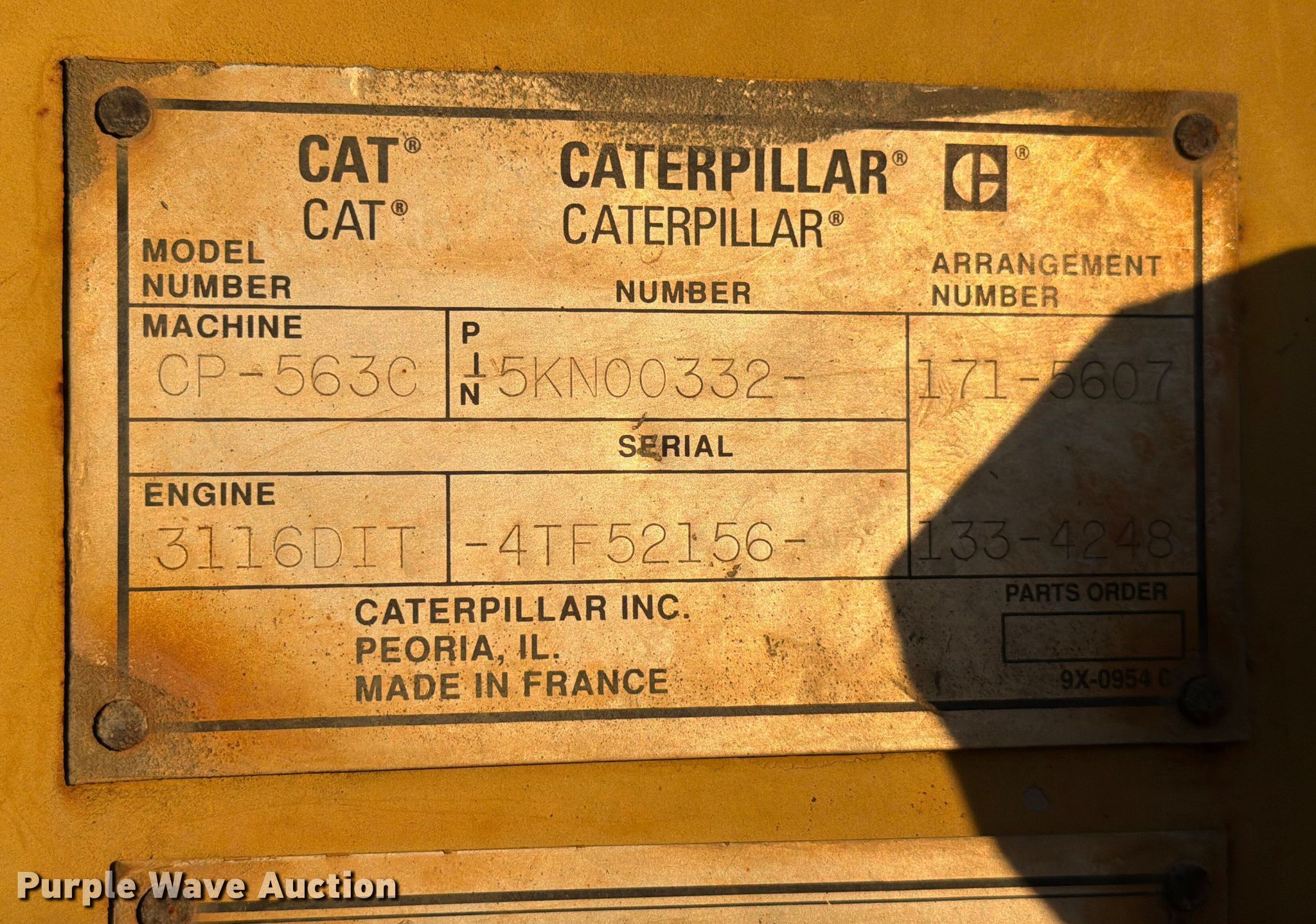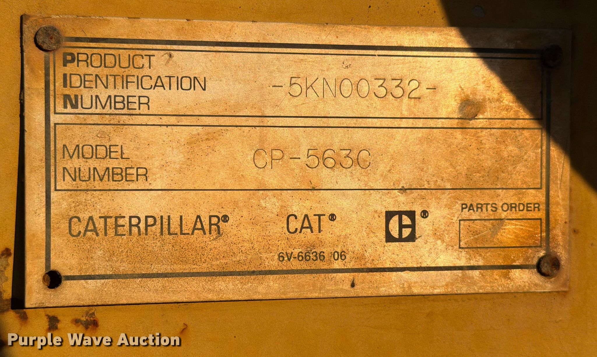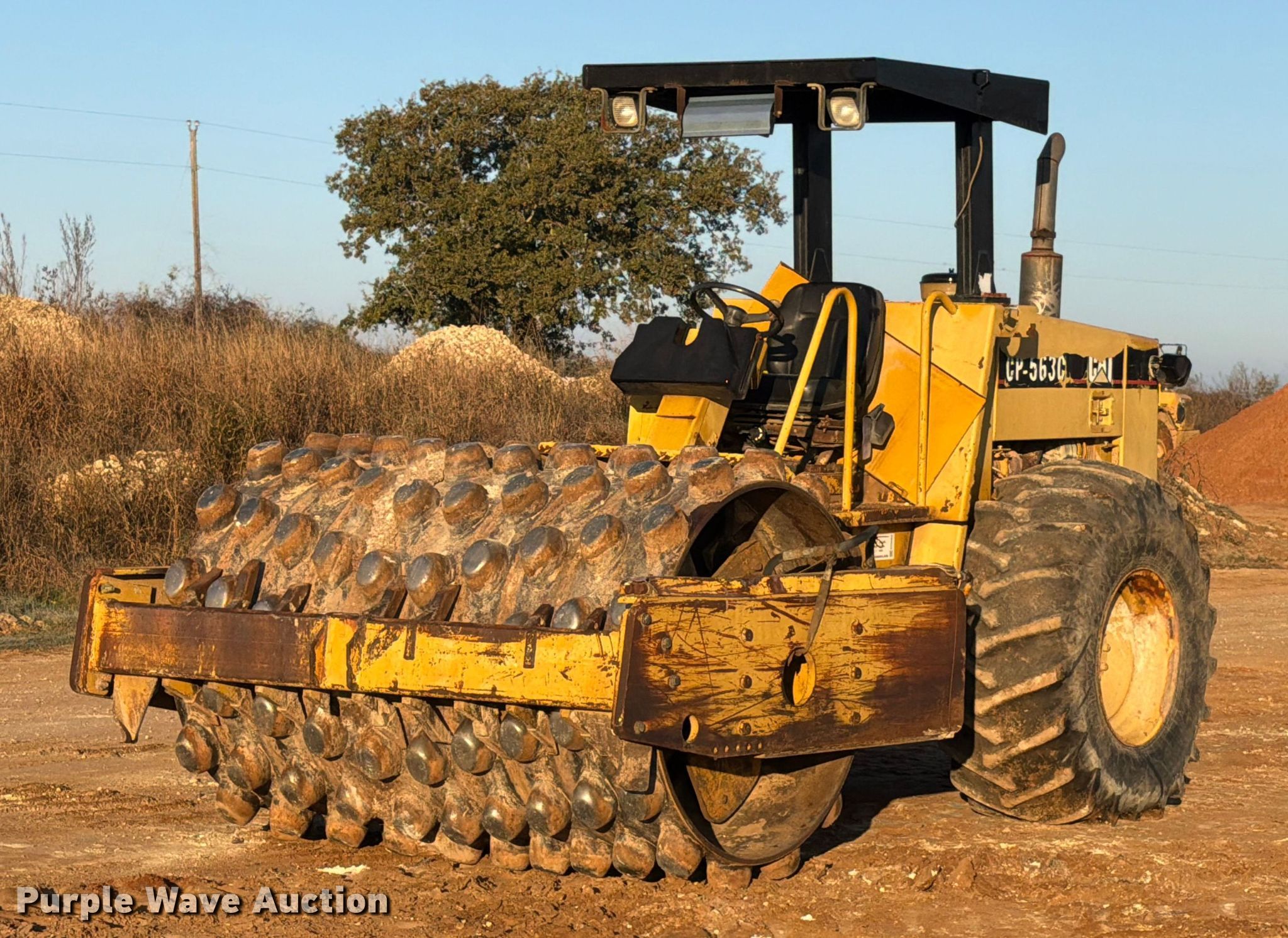 Purple Wave is selling a used Single Drum Roller Compactor in Texas. This item is a 1999 Caterpillar CP-563C single drum vibratory roller with the following: Hours: 7,713 on meter, Serial: 5KN00332