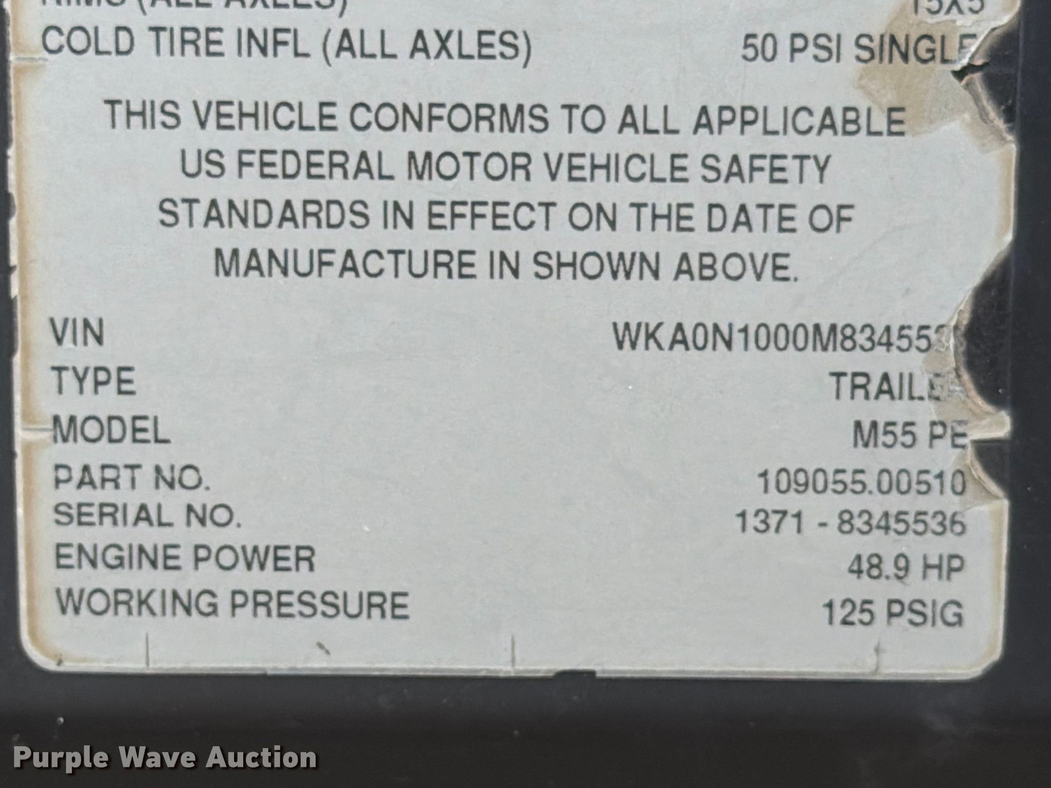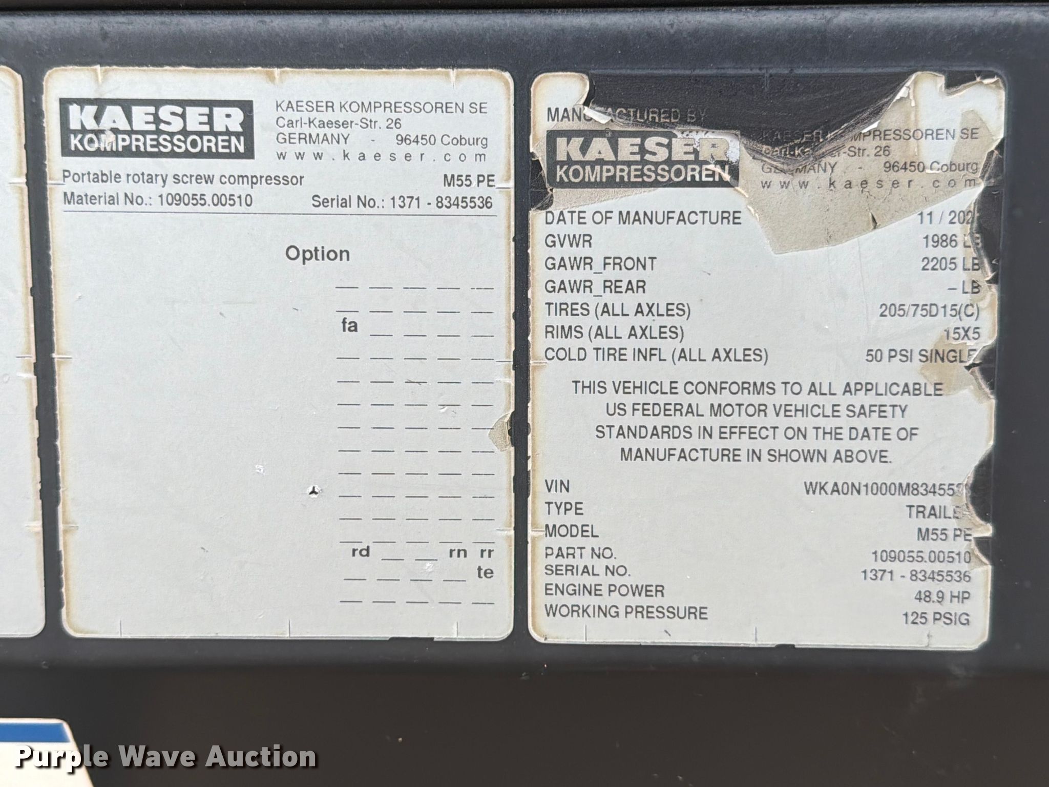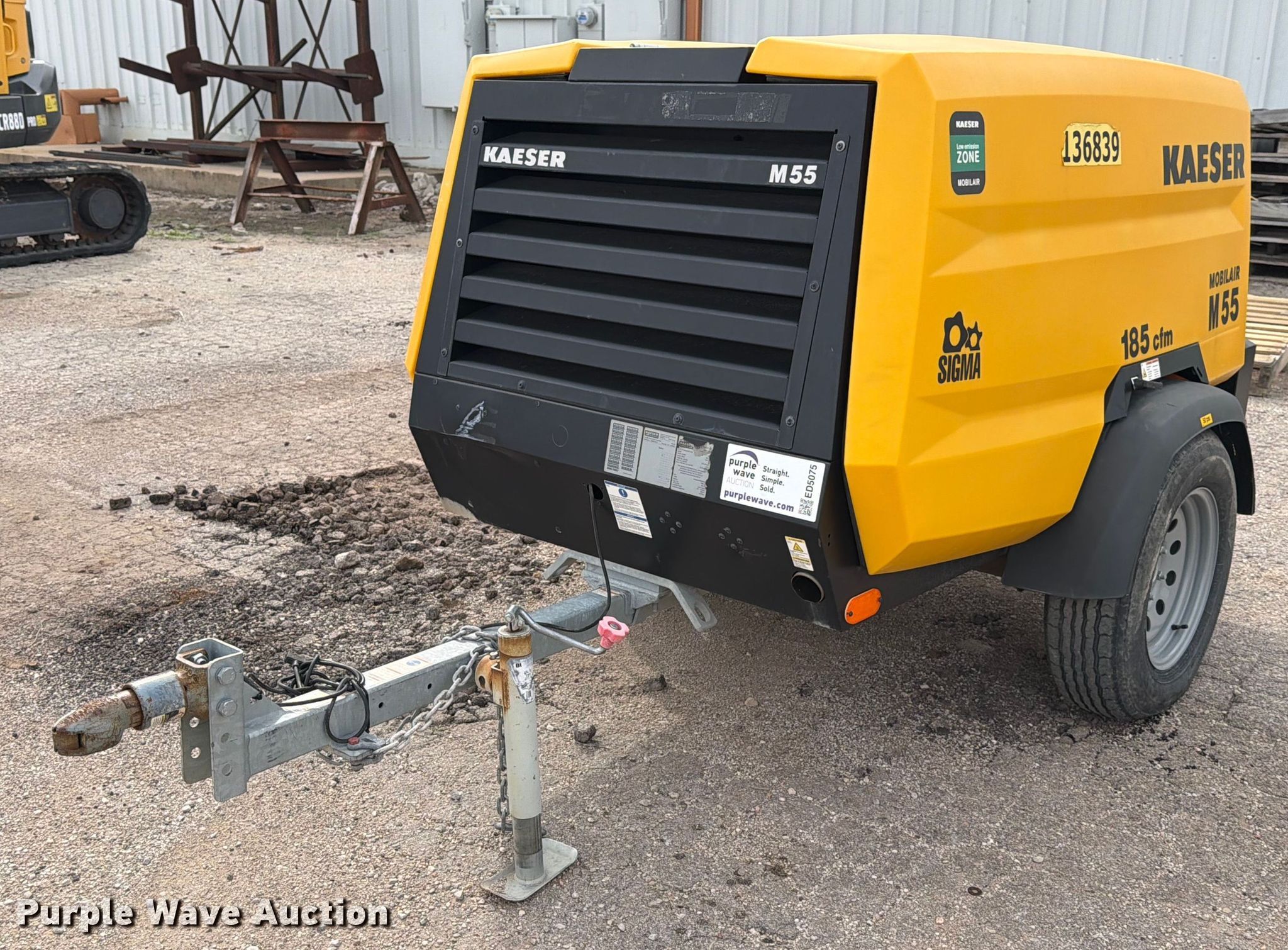 Purple Wave is selling a used Air Compressor in Texas. This item is a 2022 Kaeser M55 air compressor with the following: Hours: 161 on meter, VIN: WKA0N1000M8345536, Serial: 1371 - 8345536, Unit #: EQ0136839