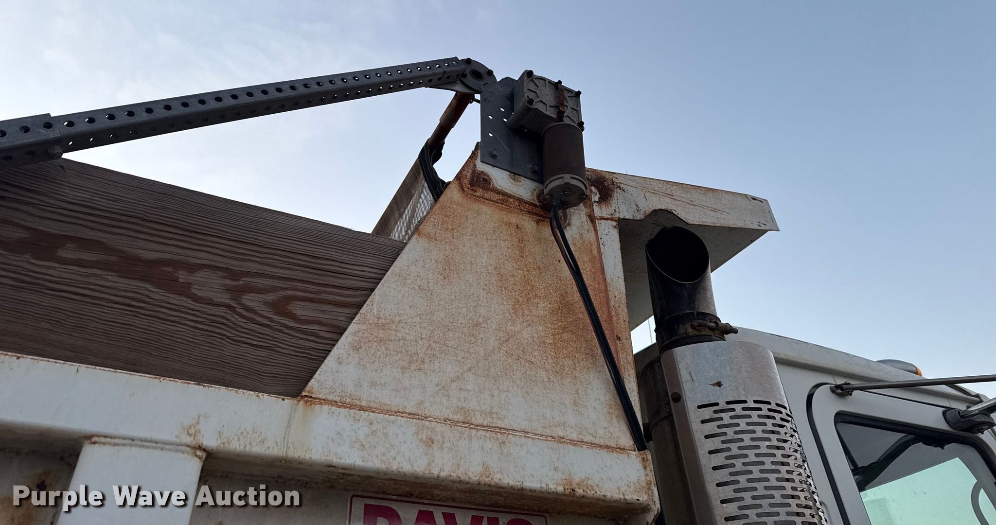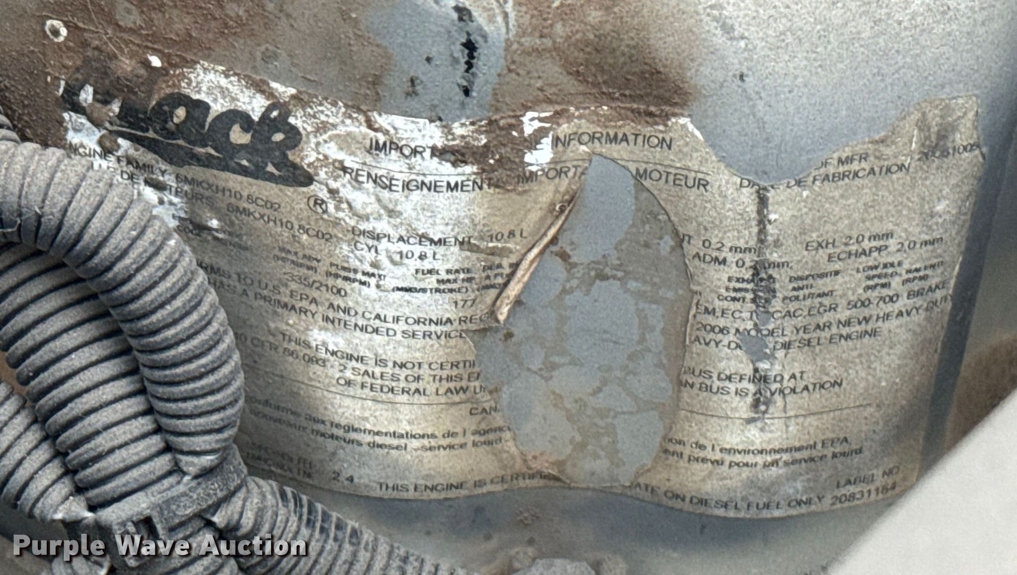 2007 Mack CTP713 dump truck. Miles: 126,872 on odometer, Hours: 8,137 on meter, VIN: 1M2AT04CX7M004653, Unit #: 203587. Engine Mack MP7, Displacement: 10.8L, Cylinders: 6, Fuel type: Diesel, Engine brake. Transmission Eaton Fuller, Manual, Speed: 9. Chassis Axles: Tandem, Differential lock: Inter-axle, Suspension: Spring over walking beam, Brakes: Air, PTO, GVWR: 71,200 lbs. Interior AC, Heat, Heated mirrors, Cruise control. Features Bed Dump bed, Davis, Length: 16' 10", Width: 98", Side height: 39", Side board height: 12", Bed type: Steel, Roll tarp, Ram: Single, End gate: Air operated. Tires Front: 425/65R22.5, Rear: 11R22.5. Notes Dash warning indicator: Electrical fault, Jump start required during on-site data collection, Rear passenger tires and wheels missing. Oklahoma title. Title distribution may be delayed up to 30 days from verification of funds. Dolese Bros. Co. - Open Inspection Monday, December 29th. 5600 West Reno Avenue. Oklahoma City, OK 73127