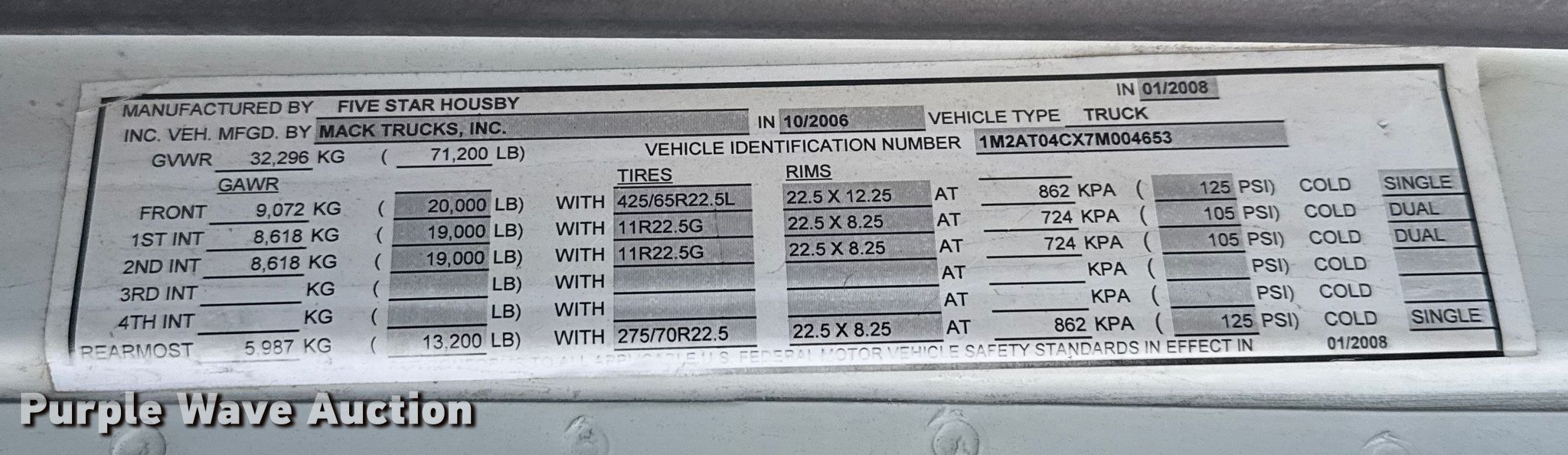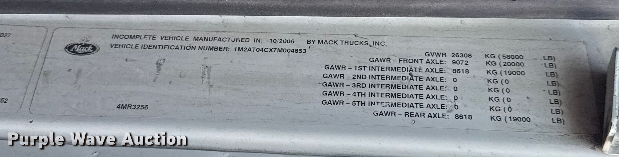 Take a look at this used 2007 Mack CTP713 dump truck being sold on December 31st, 2025 in the Wednesday December 31 Construction Equipment Auction made by Mack. Take a look at all of the item information below or take a look at similar auctions for Construction Trucks.