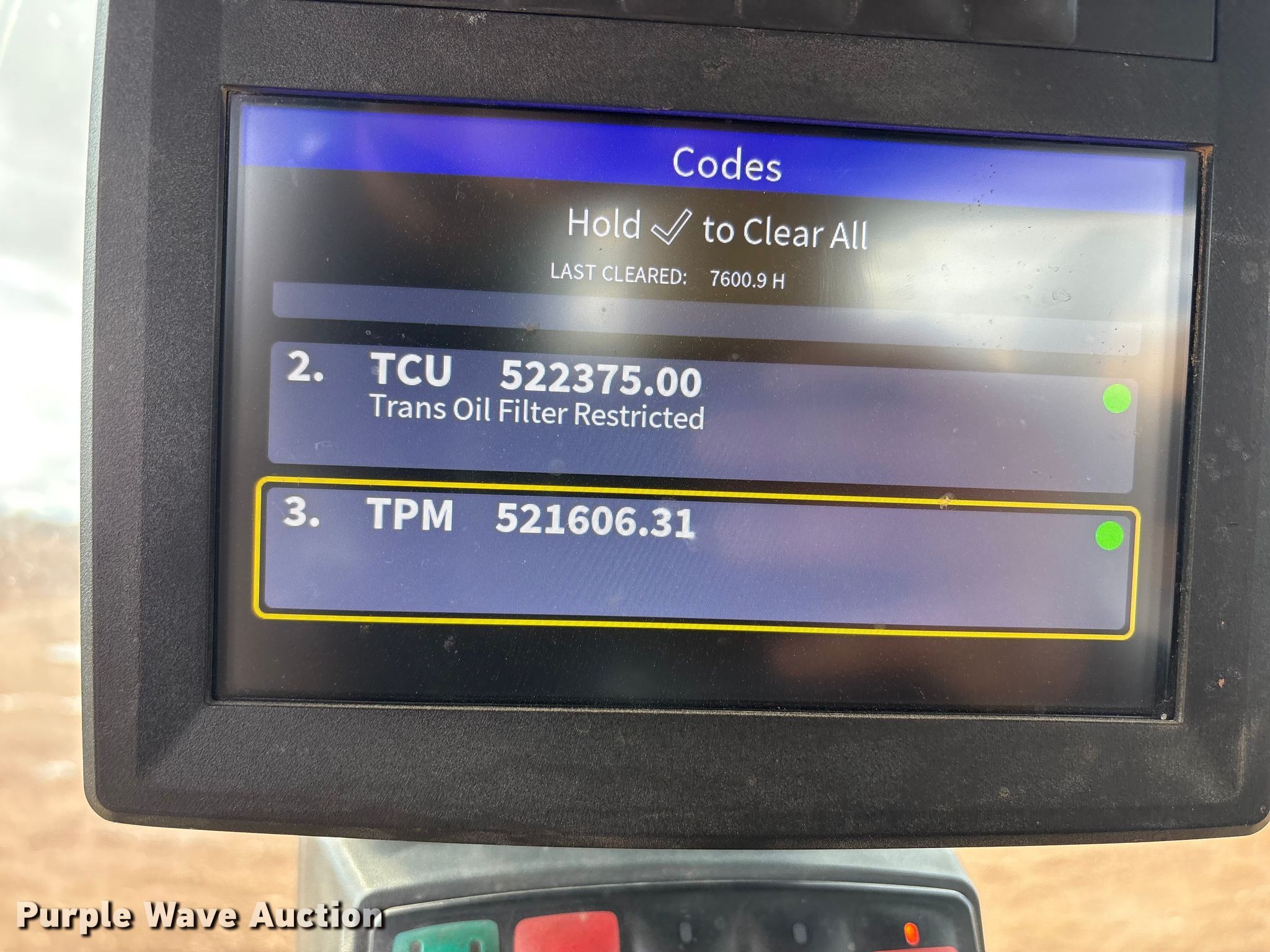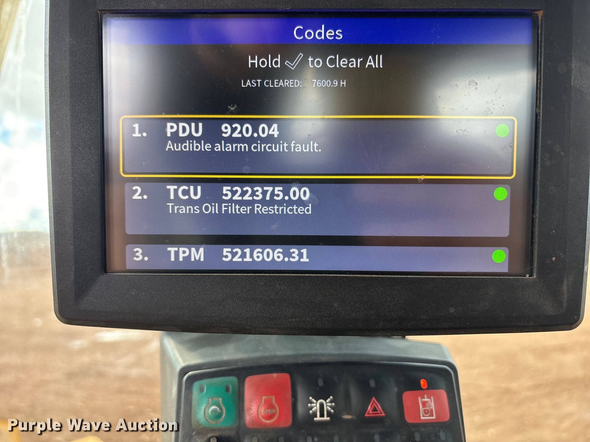 - Warning indicator: Error codes: PDU 920.04, TCU 522375.00, TPM 521606.31