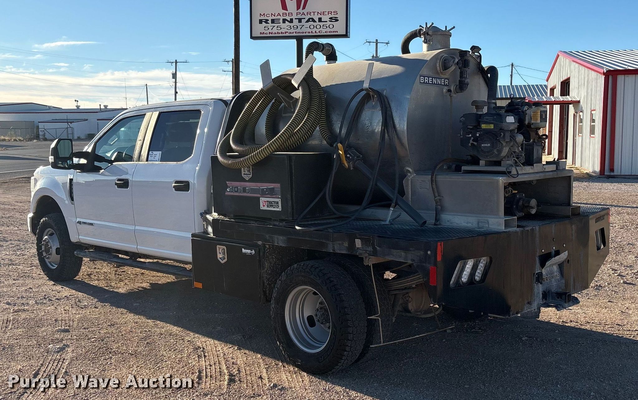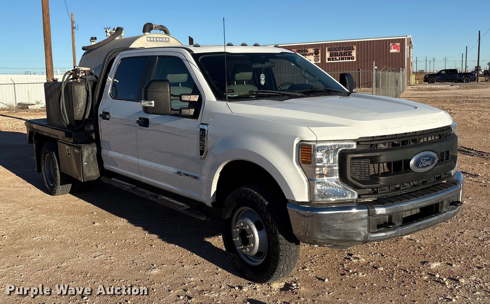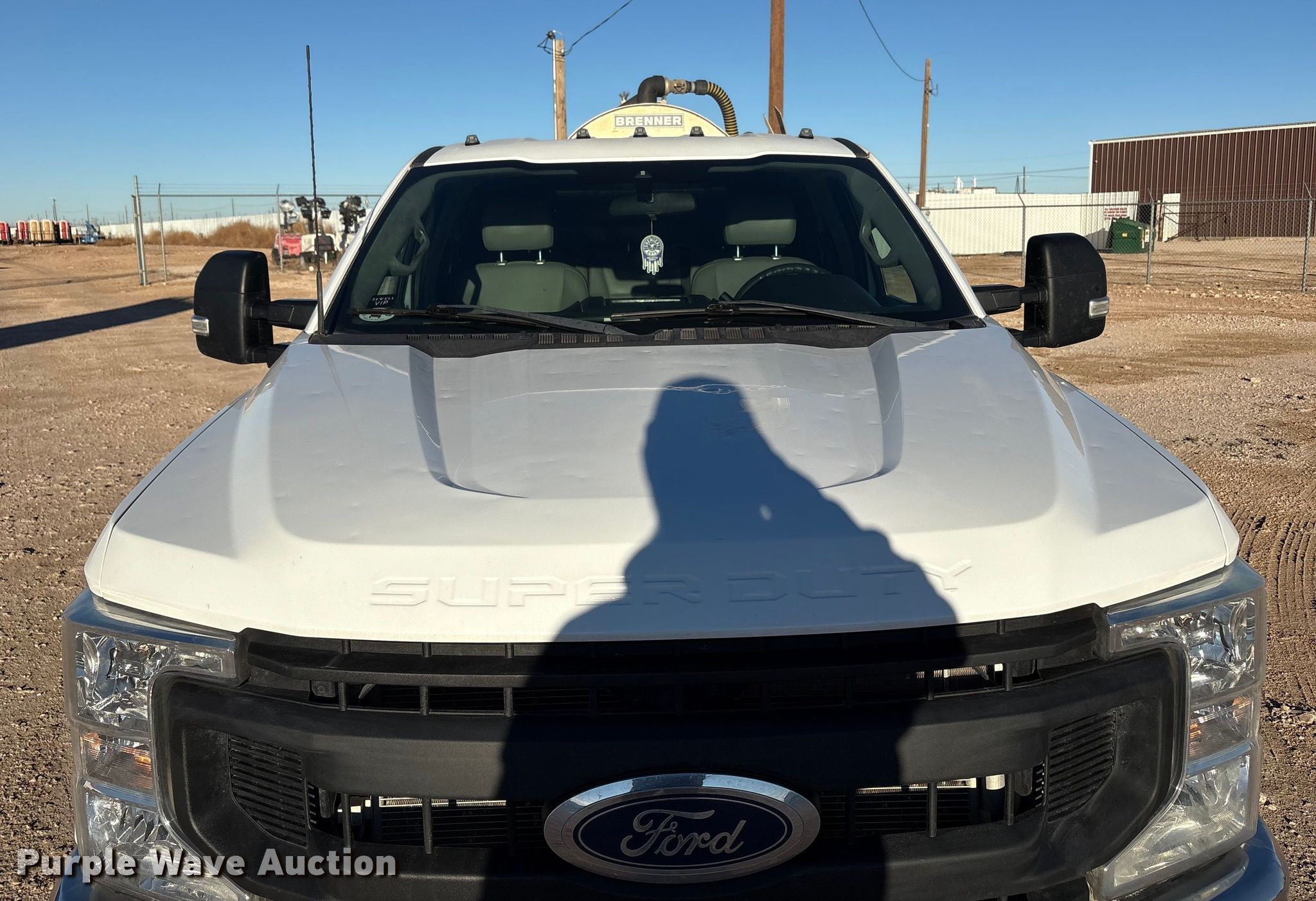 2022 Ford F350 Super Duty flatbed pickup truck. Miles: 139,730 on odometer, Hours: 5,089 on meter, VIN: 1FT8W3DT2NEF64041. Engine Displacement: 6.7L, Cylinders: 8, Fuel type: Diesel. Transmission Automatic, Four wheel drive. Interior AC, Heat, Heated mirrors, Power windows, Power locks, Cruise control, Backup camera, Auxiliary controls, Brake controller. Features Bed Flatbed, Crownline RRDH102, Length: 8' 6", Width: 8', Brenner Tank Serial: M5913, Capacity: 300 gallons. Tires Size: 245/75R17. Notes Hail damage. New Mexico title. Title distribution may be delayed up to 14 days from verification of funds. McNabb Partners. Hobbs, NM 88240