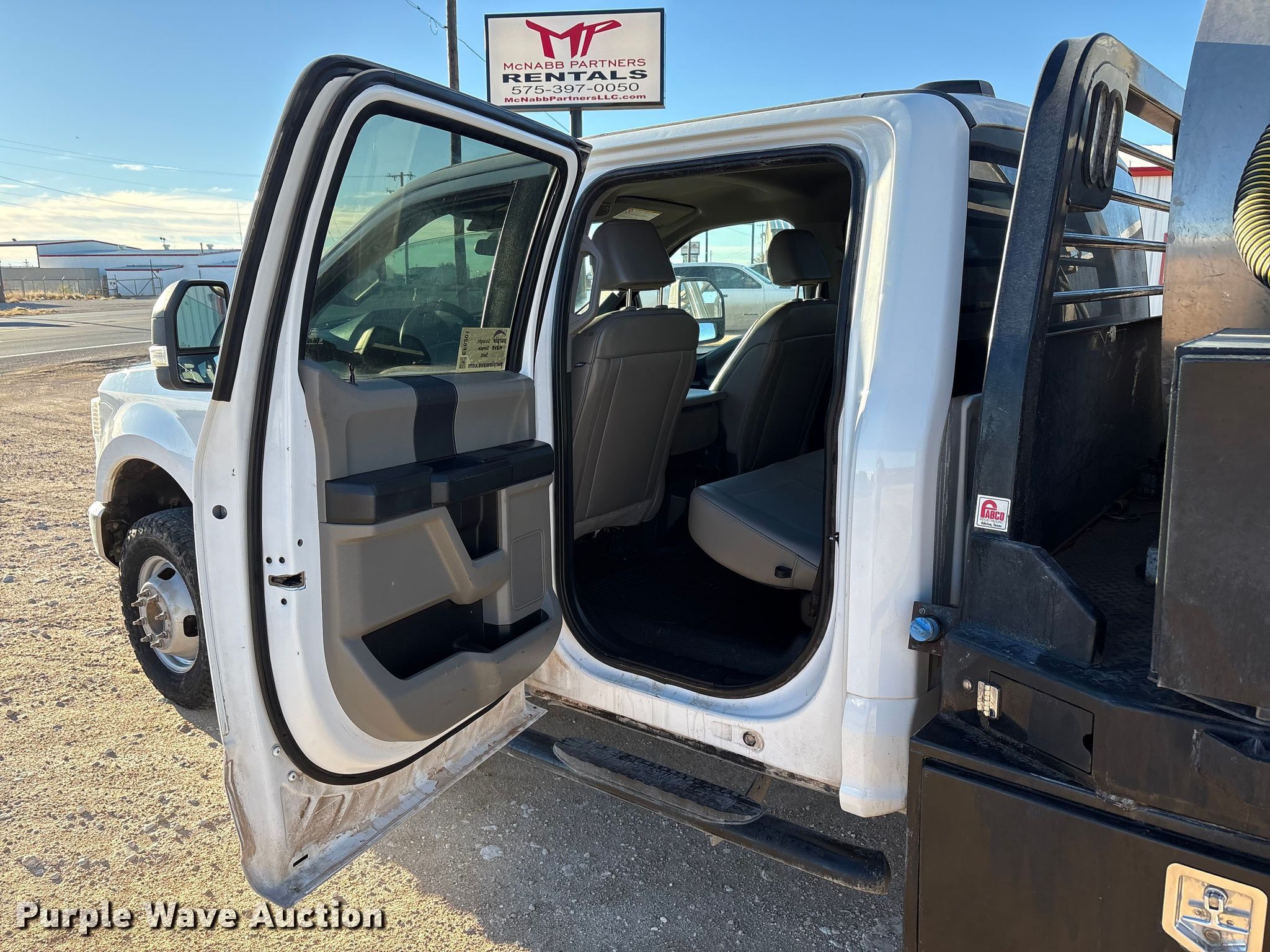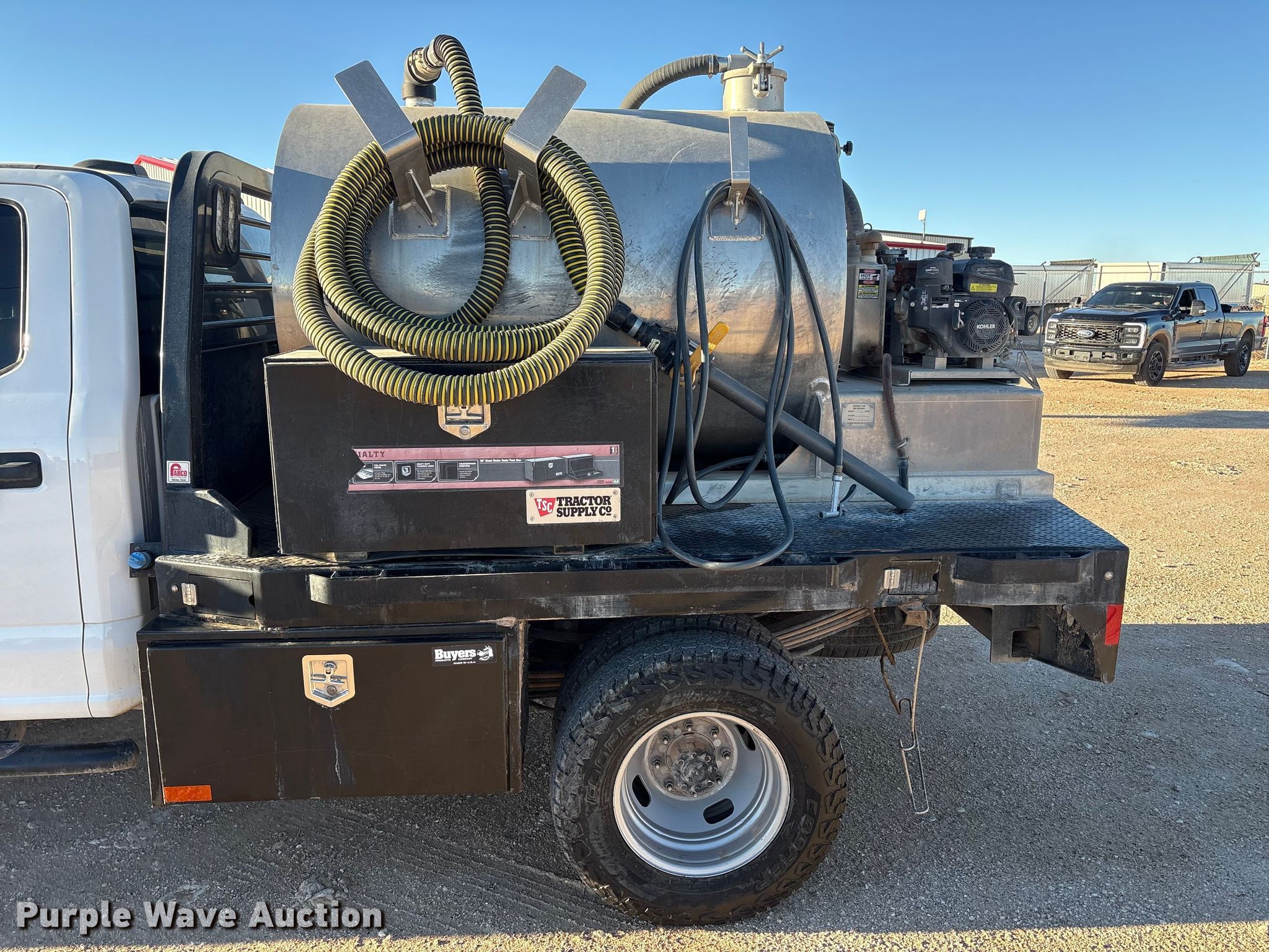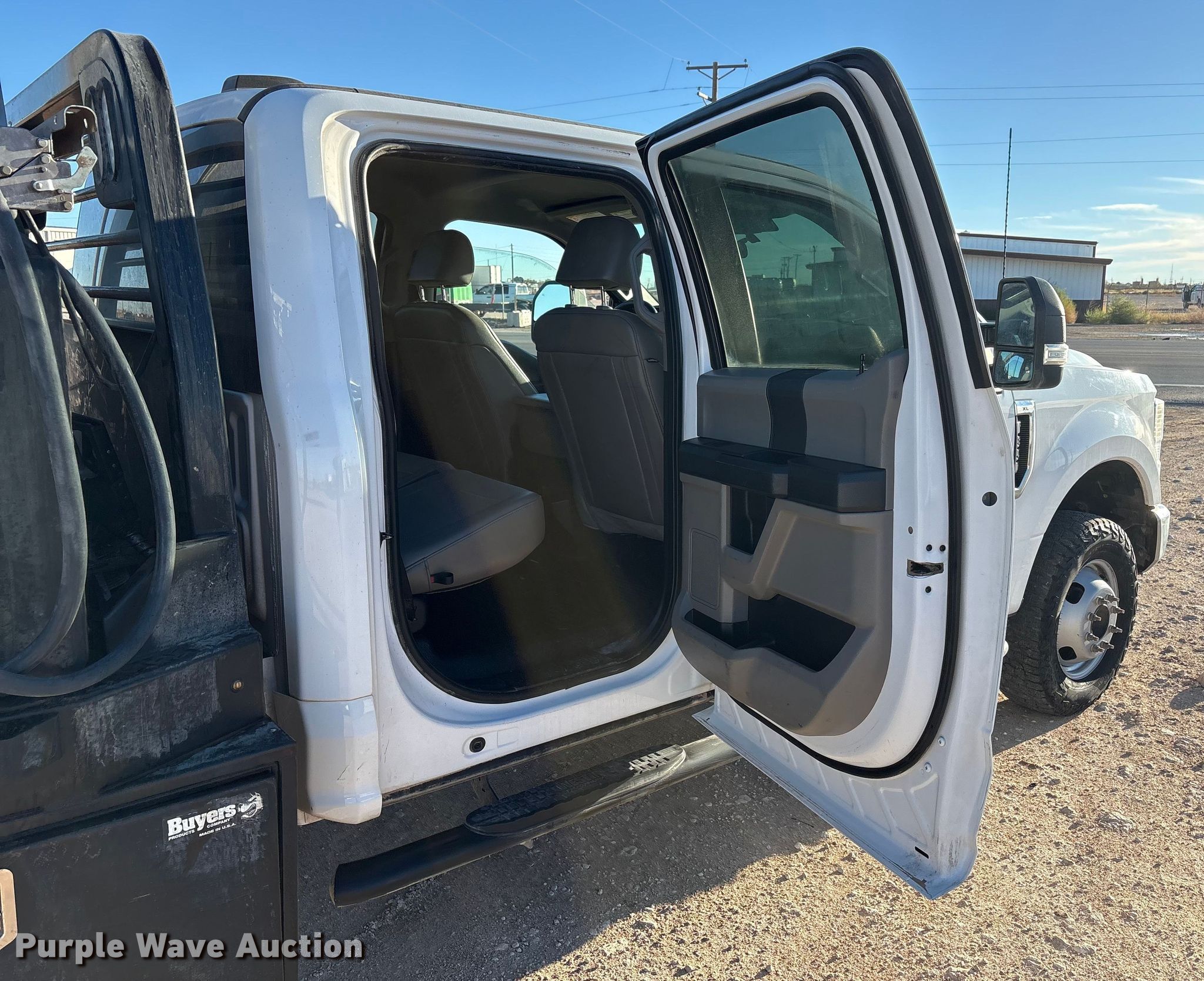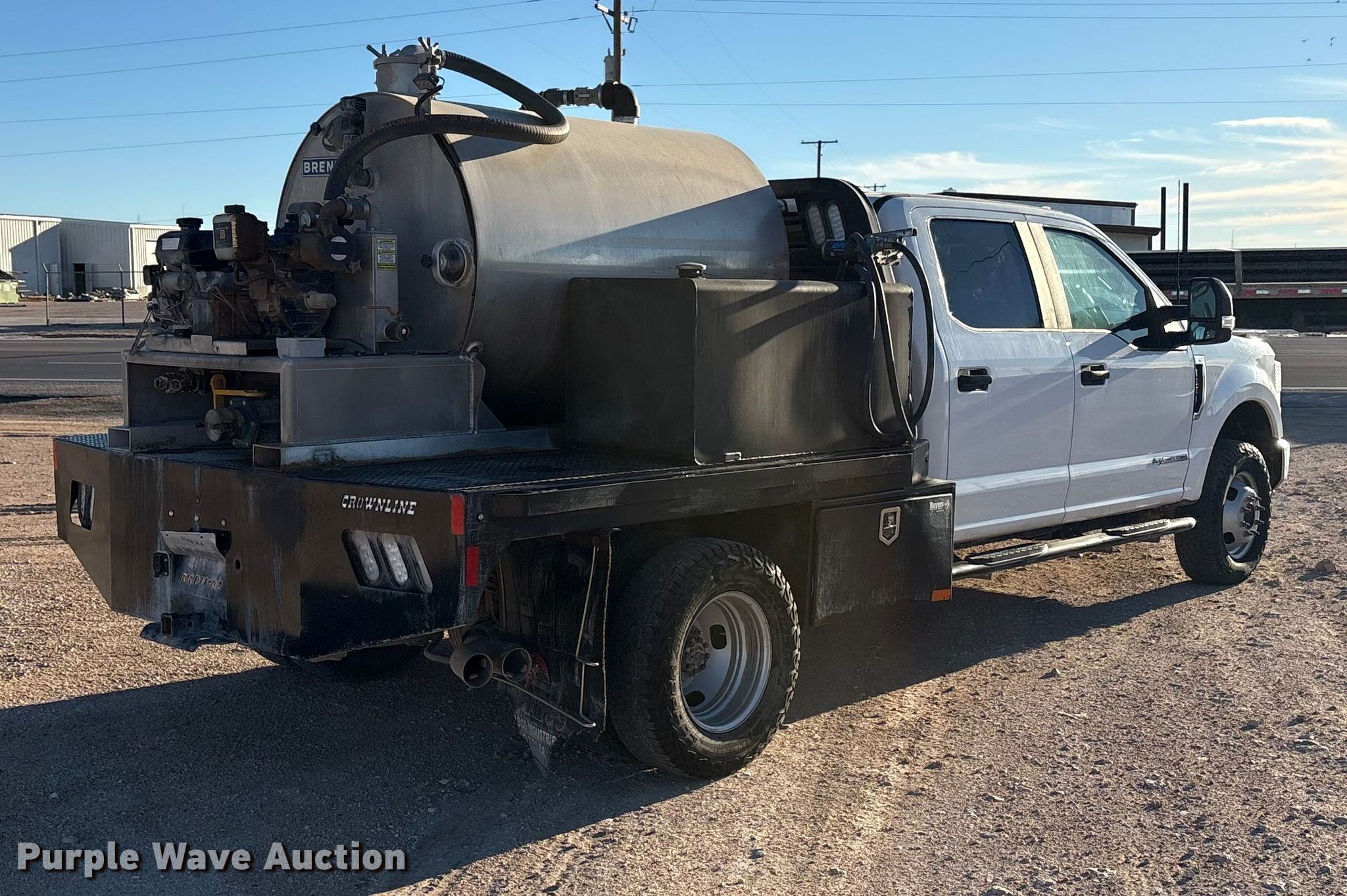 2022 Ford F350 Super Duty flatbed pickup truck. Miles: 139,730 on odometer, Hours: 5,089 on meter, VIN: 1FT8W3DT2NEF64041. Engine Displacement: 6.7L, Cylinders: 8, Fuel type: Diesel. Transmission Automatic, Four wheel drive. Interior AC, Heat, Heated mirrors, Power windows, Power locks, Cruise control, Backup camera, Auxiliary controls, Brake controller. Features Bed Flatbed, Crownline RRDH102, Length: 8' 6", Width: 8', Brenner Tank Serial: M5913, Capacity: 300 gallons. Tires Size: 245/75R17. Notes Hail damage. New Mexico title. Title distribution may be delayed up to 14 days from verification of funds. McNabb Partners. Hobbs, NM 88240