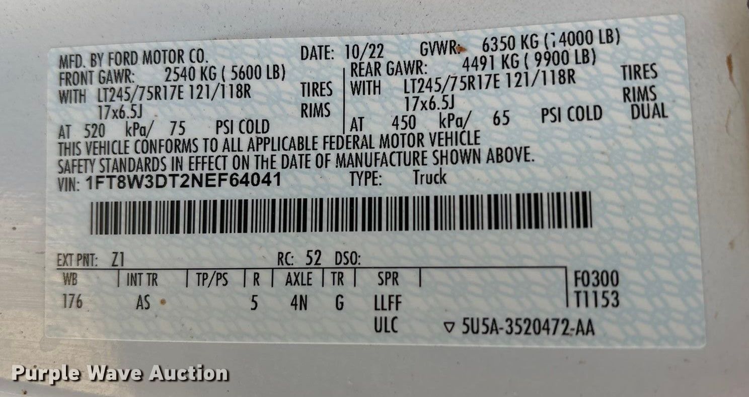 Purple Wave is selling a used 3/4 or 1 Ton Pickup or Van in New Mexico. This item is a 2022 Ford F350 Super Duty flatbed pickup truck with the following: Miles: 139,730 on odometer, Hours: 5,089 on meter, VIN: 1FT8W3DT2NEF64041