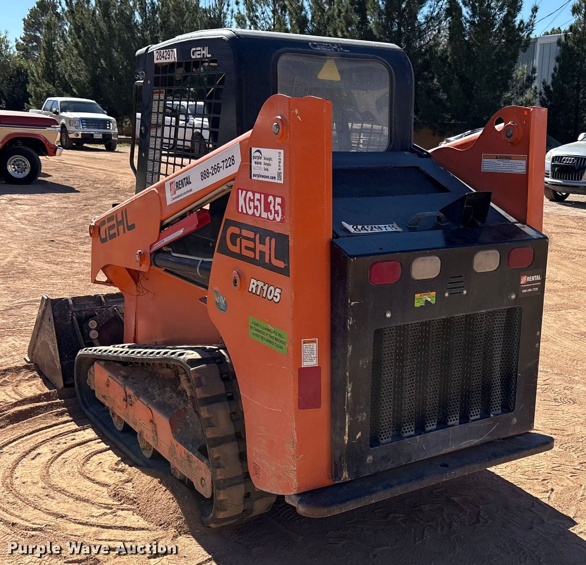 Purple Wave is selling a used Tracked Skid Steer Loader in New Mexico. This item is a 2019 Gehl RT105 tracked skid steer loader with the following: Hours: 883 on meter, Serial: GHLRT105D0D701333